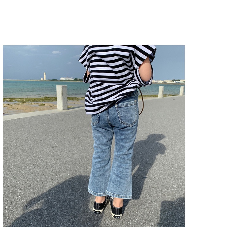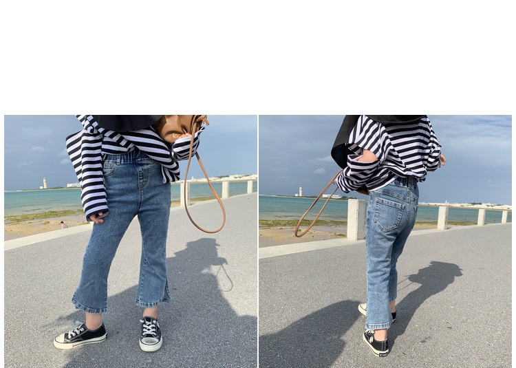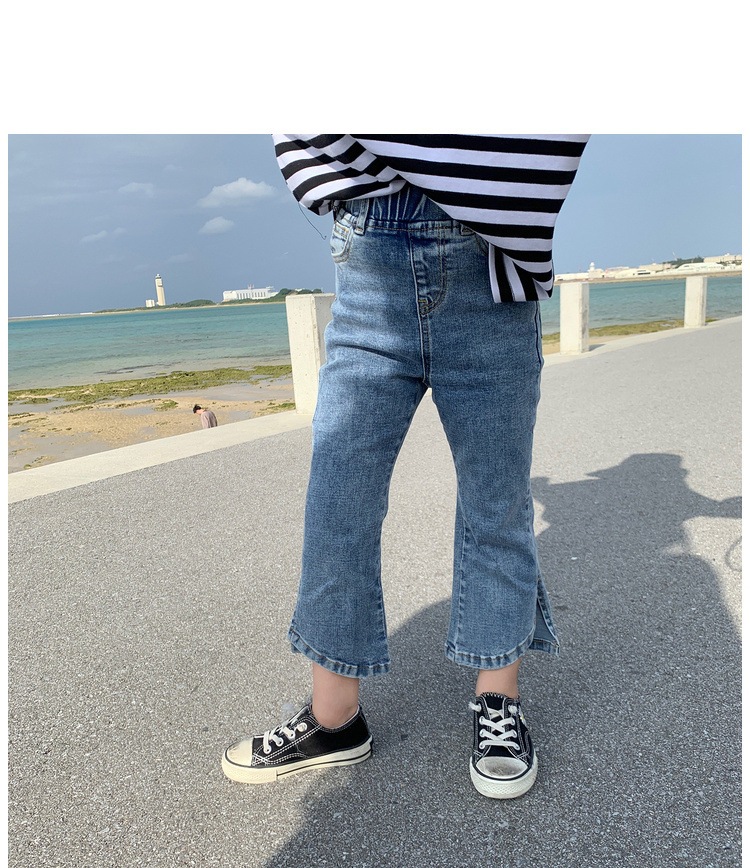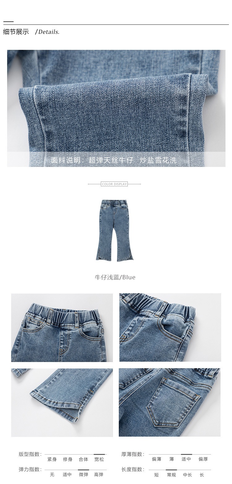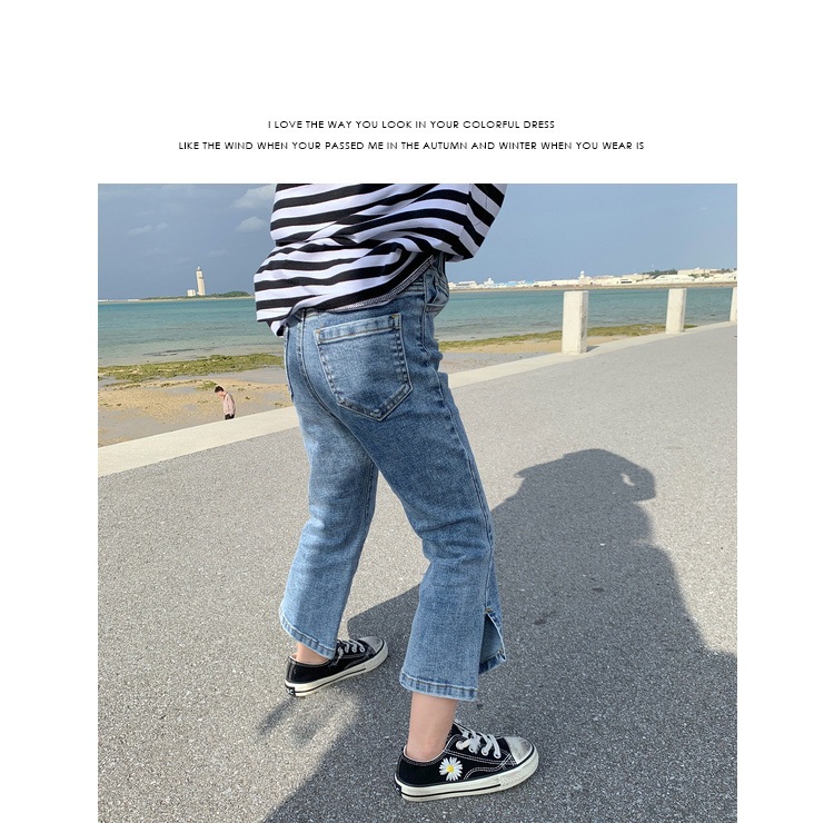 여자 라이트 컬러 슬림 스트레치 청바지 2025 봄, 가을 새 여자 아기 바지 한국 스타일 사이드 슬릿 플레어 바지스토어 가기