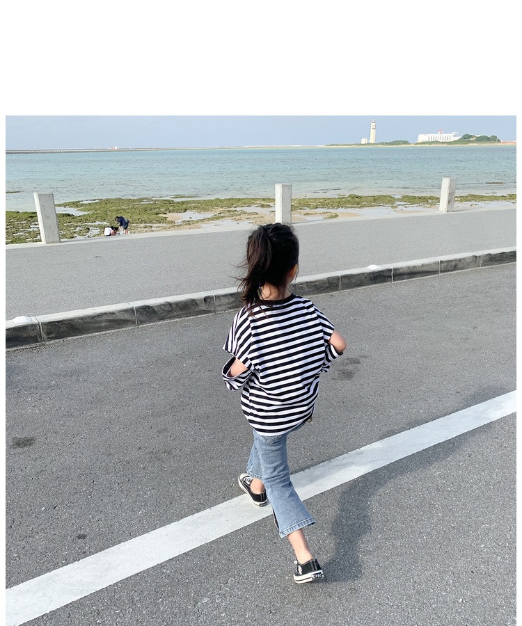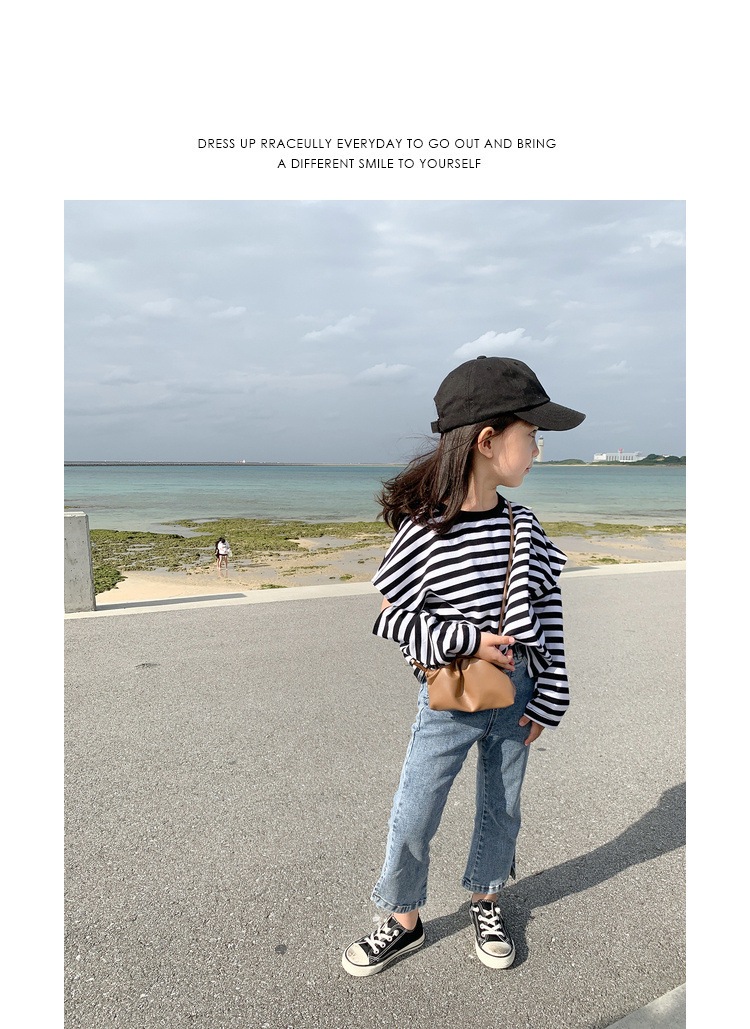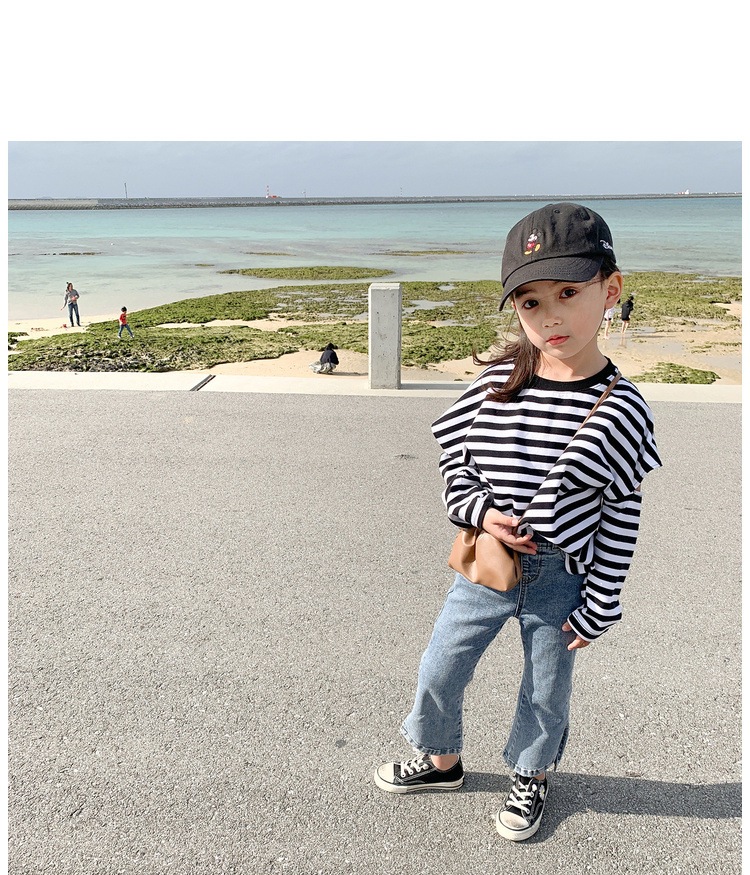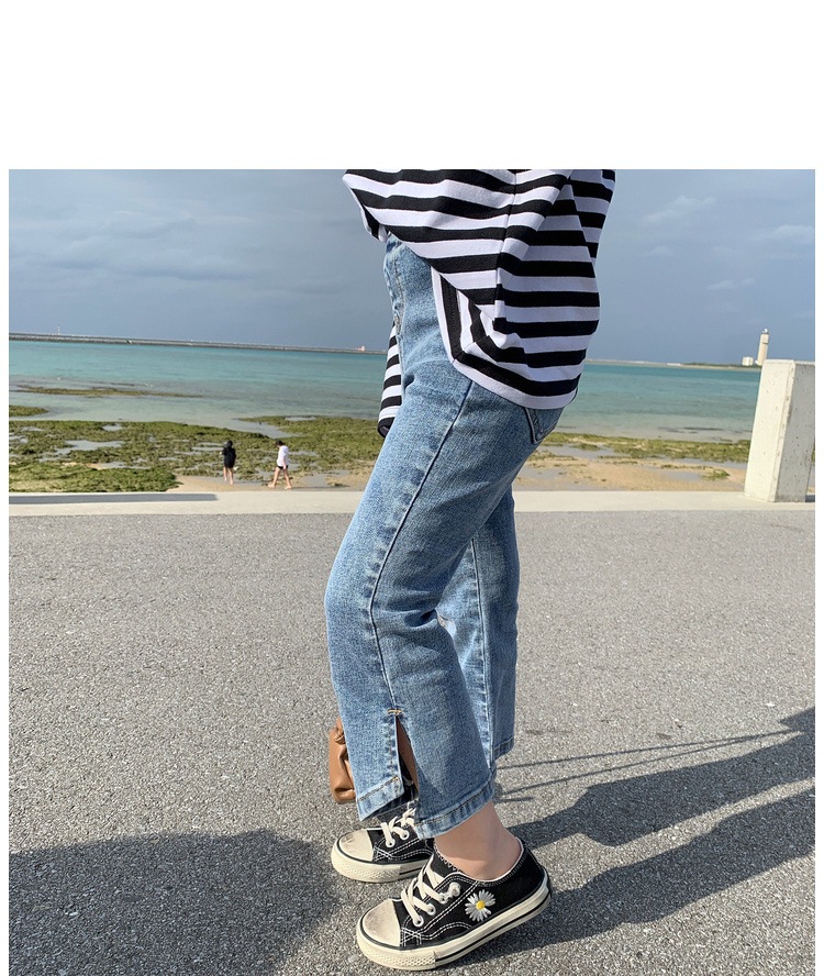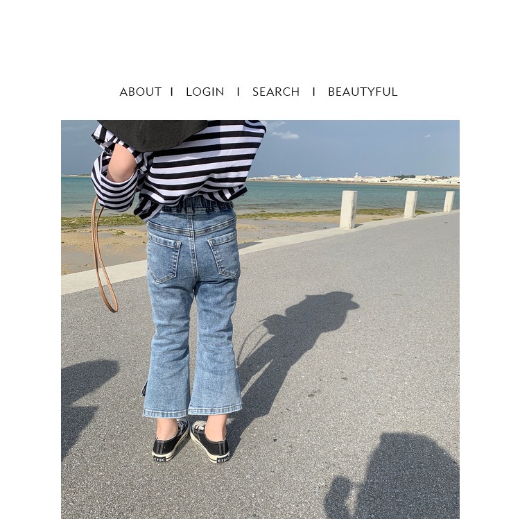 여자 라이트 컬러 슬림 스트레치 청바지 2025 봄, 가을 새 여자 아기 바지 한국 스타일 사이드 슬릿 플레어 바지스토어 가기
