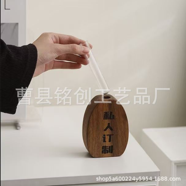 호두나무 원목 꽃꽂이, 창의적인 디퓨저, 꽃꽂이, 심플한 유리 식물 꽃꽂이, 물병스토어 가기