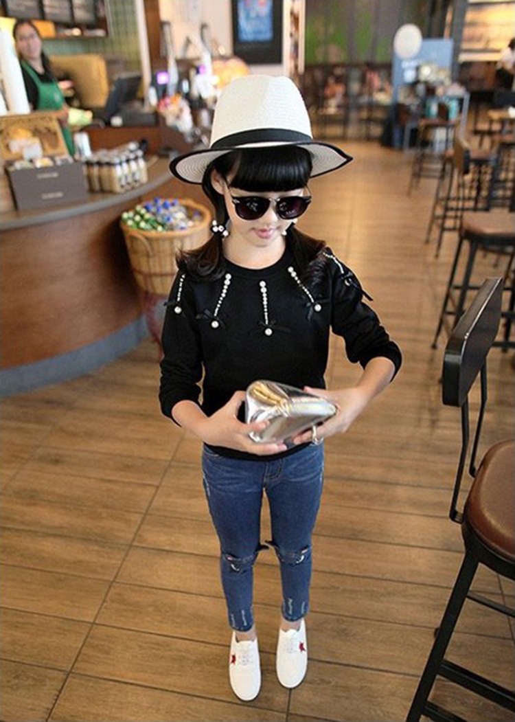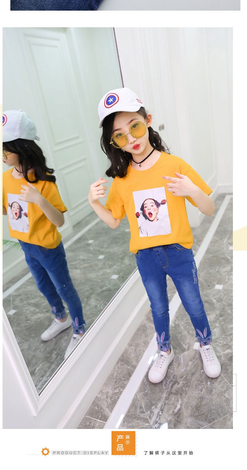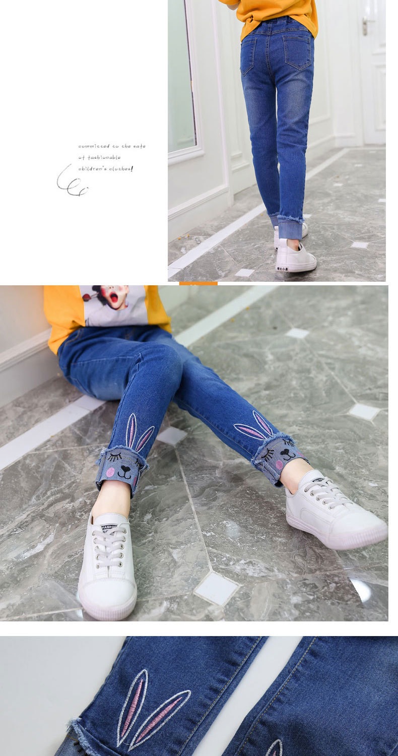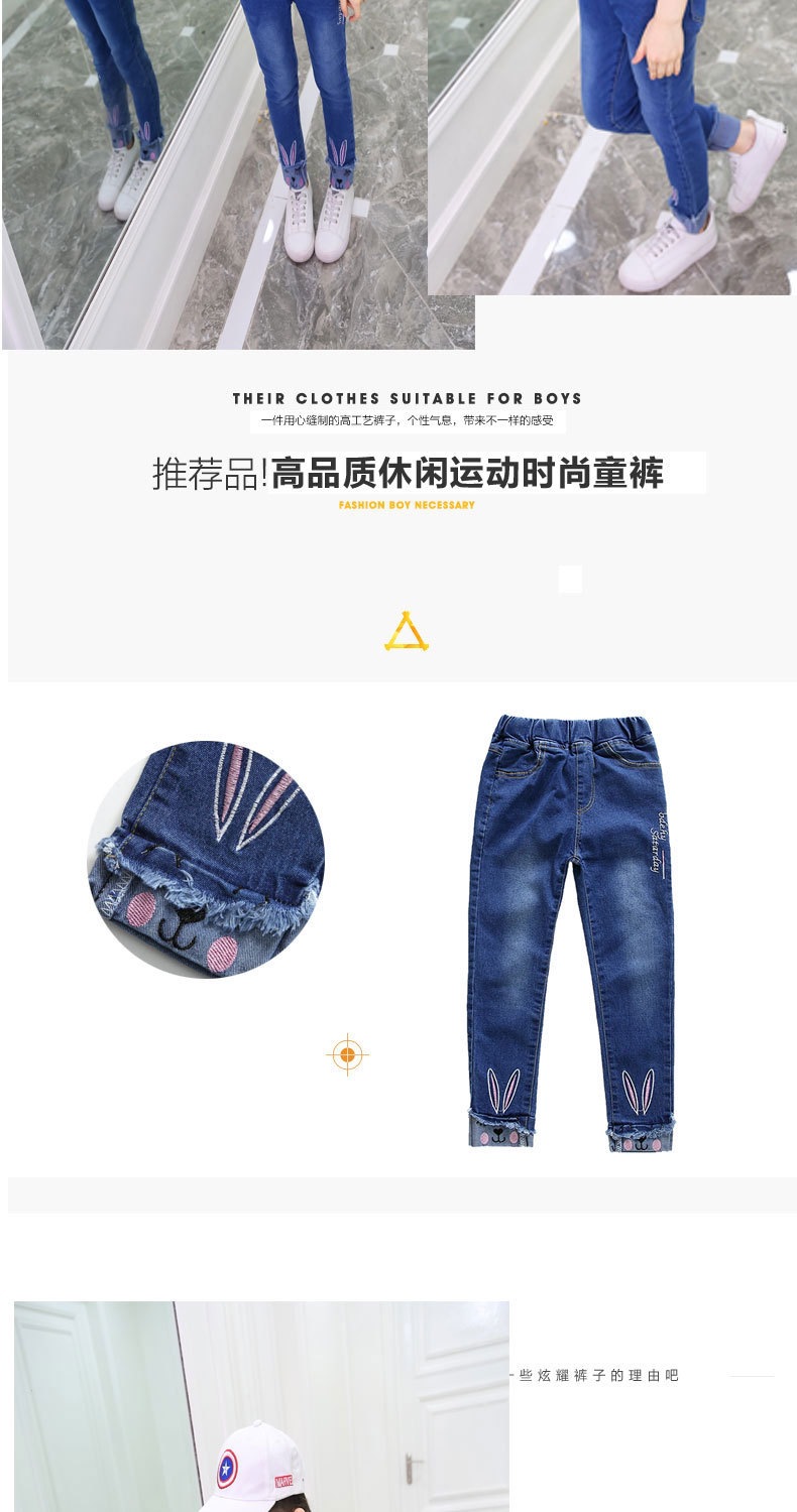 아동복 봄, 가을 어린이 바지 한국 스타일 소녀 청바지 아기 바지 바닥 아동 바지 중대형 아동용 스트레치스토어 가기
