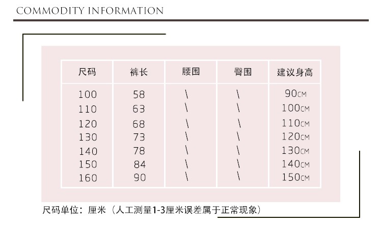 清仓款高弹尺码表