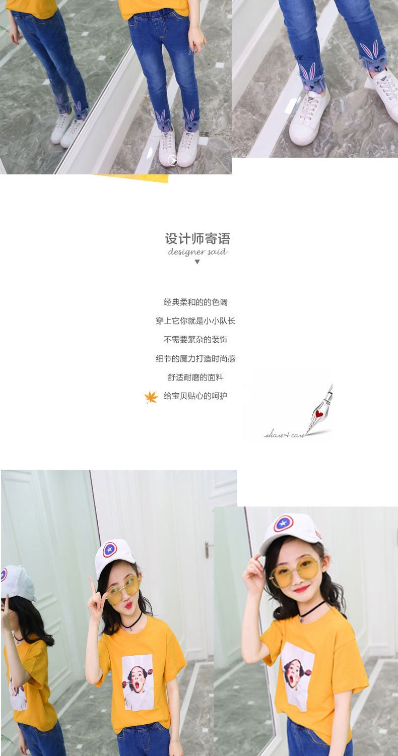 아동복 봄, 가을 어린이 바지 한국 스타일 소녀 청바지 아기 바지 바닥 아동 바지 중대형 아동용 스트레치