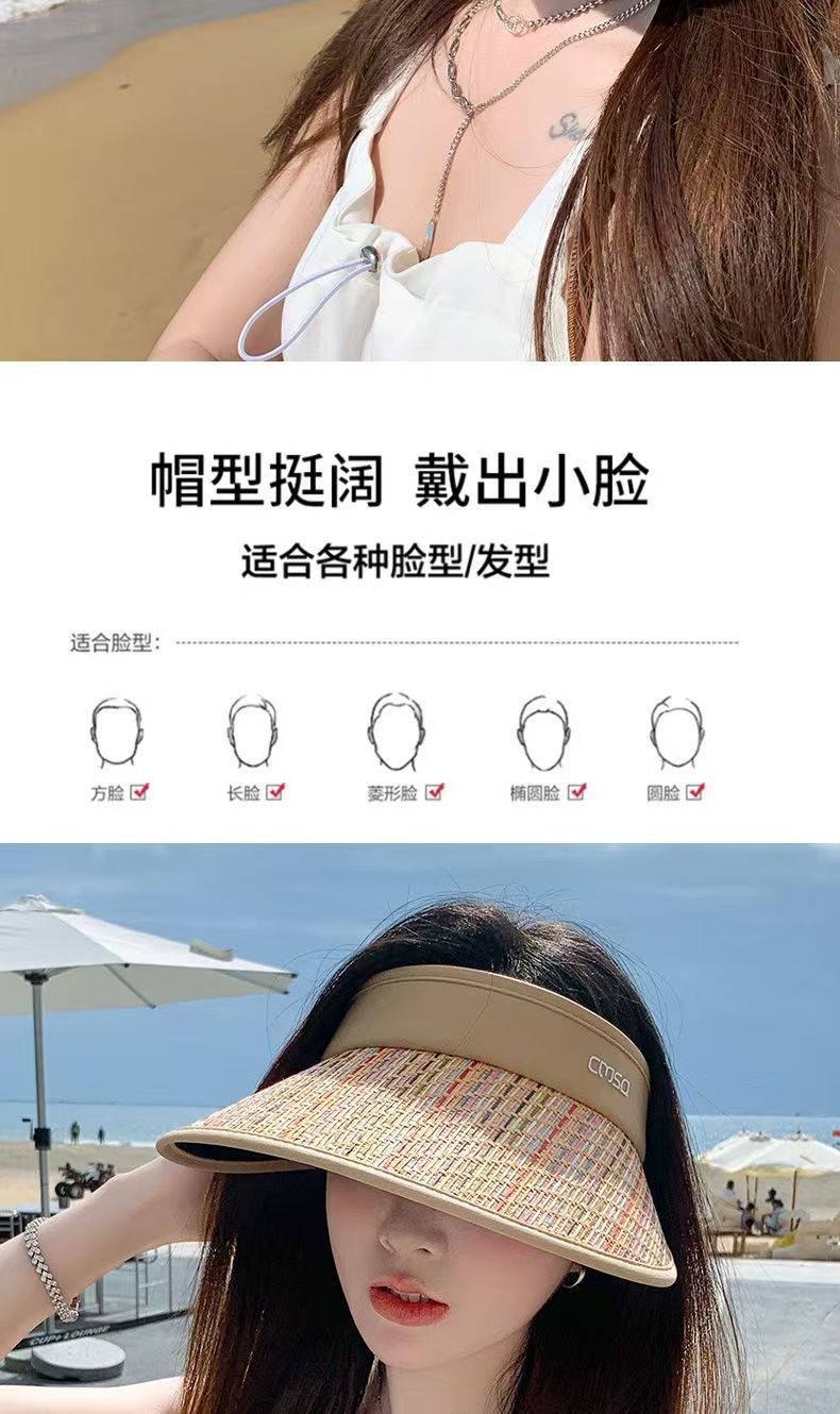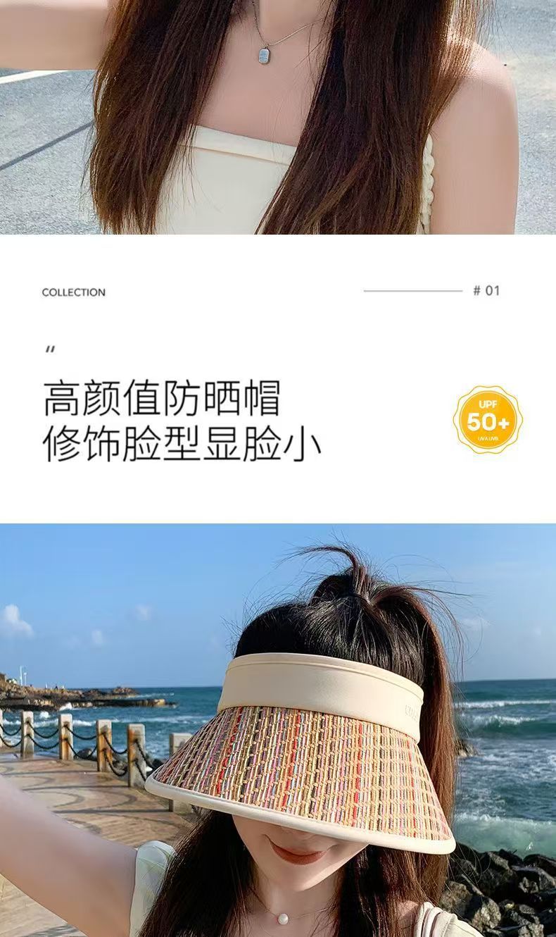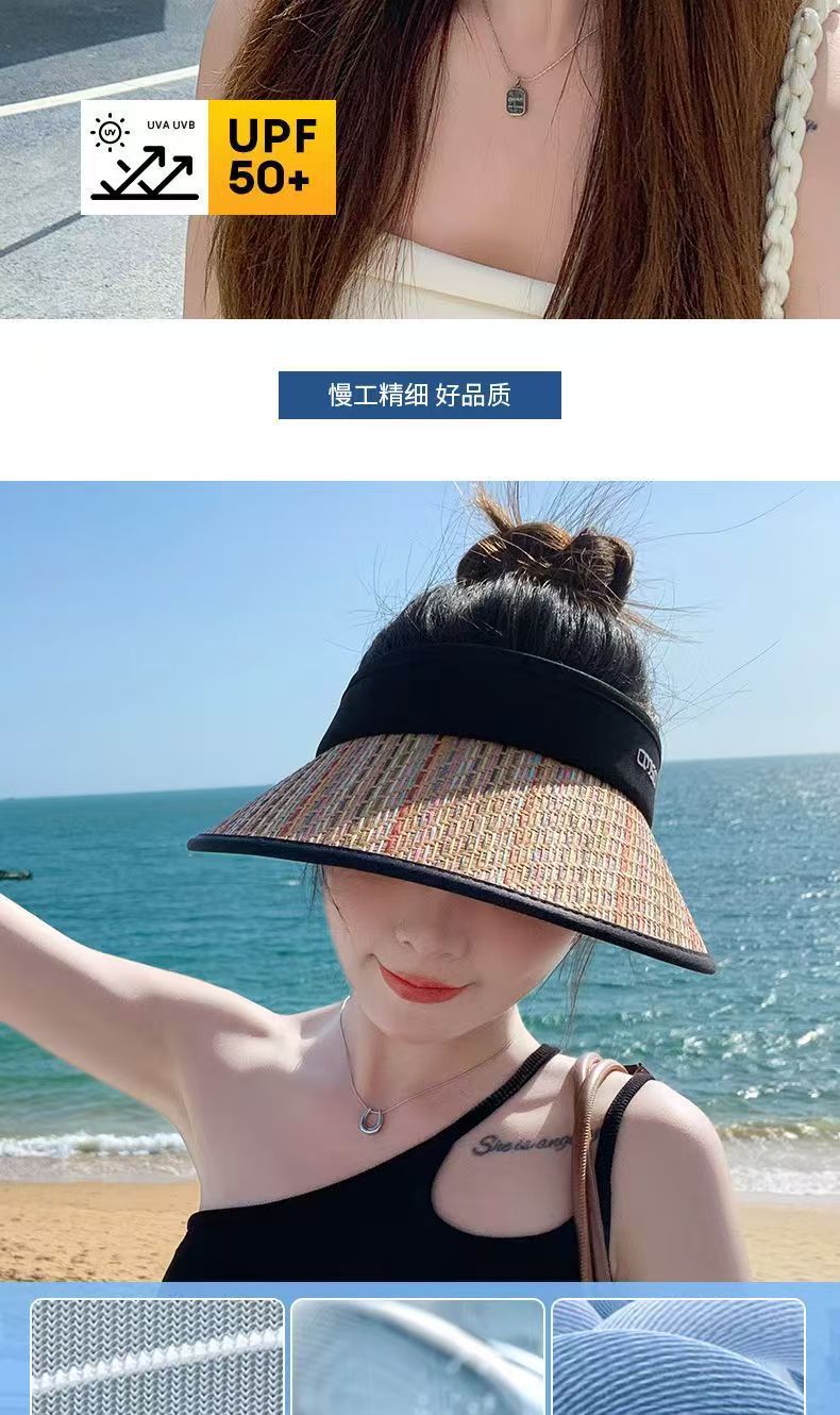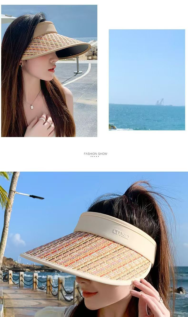 빈 탑 UV 선 스크린 모자 여성의 여름 안티-UV 빅 브림 비치 햇빛 밀짚 모자 야외 태양 모자스토어 가기
