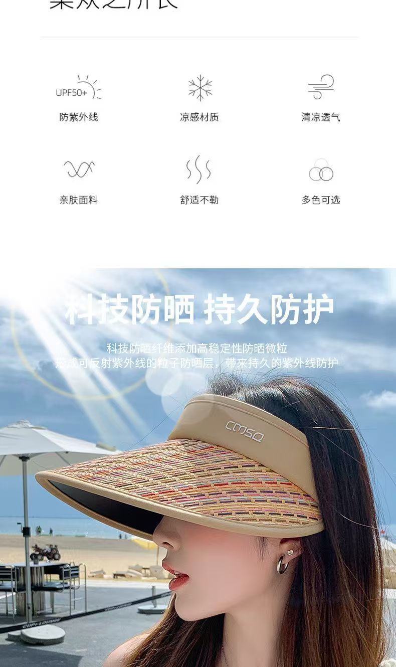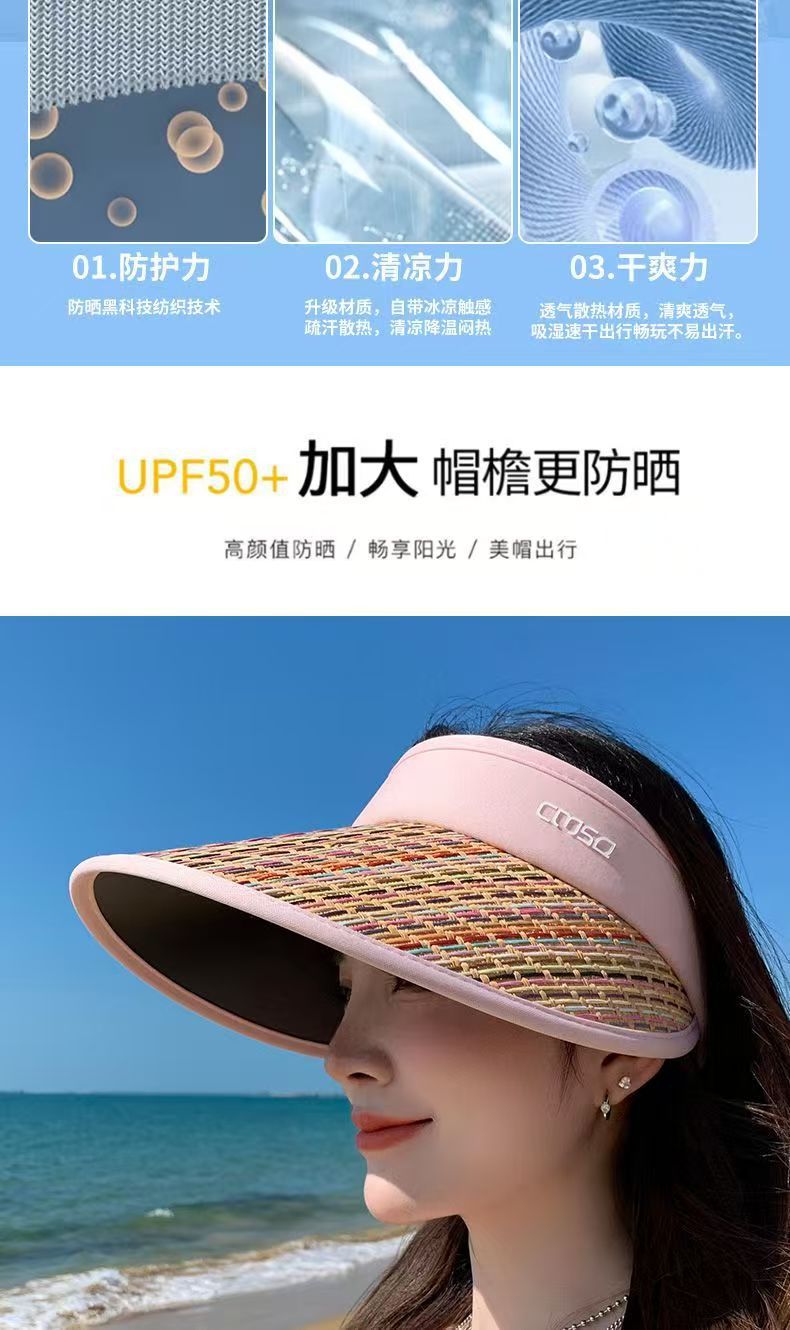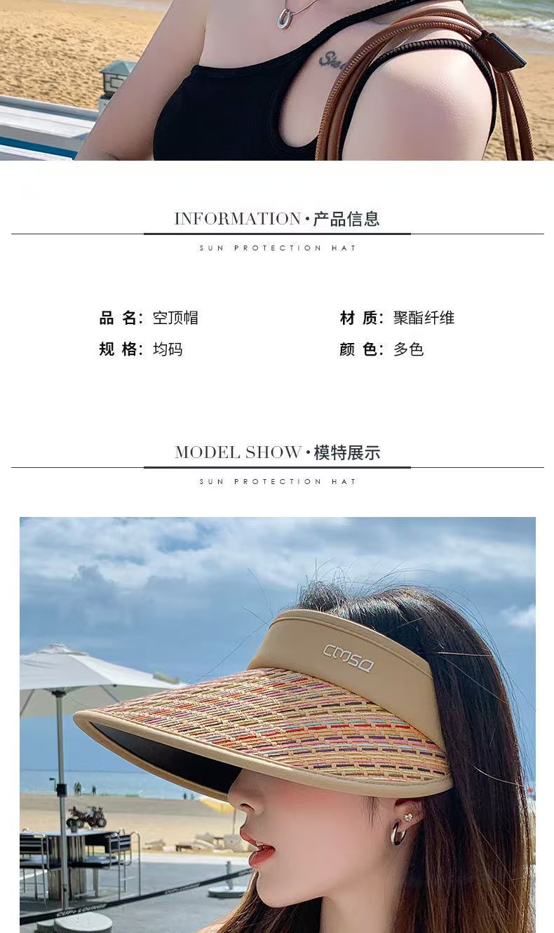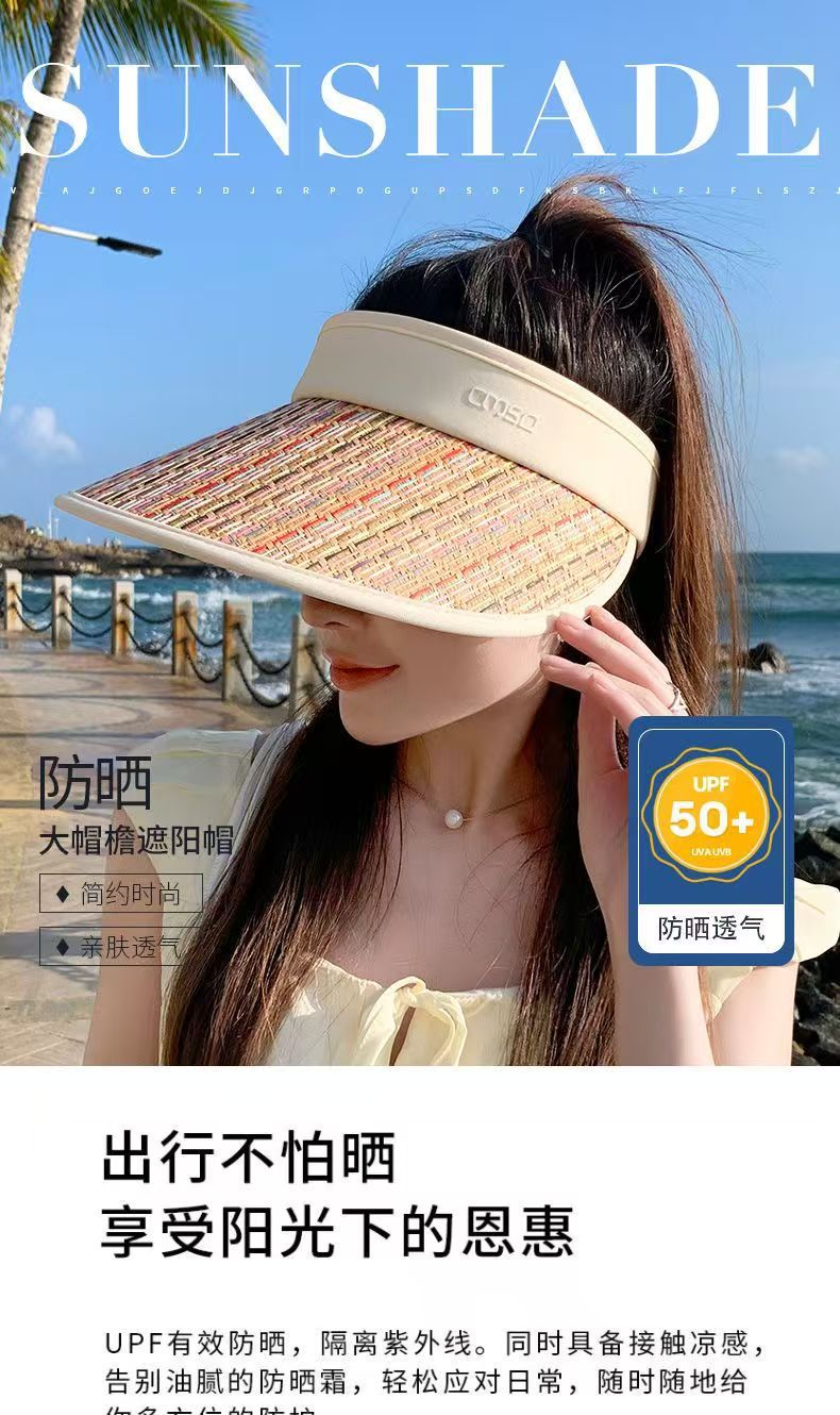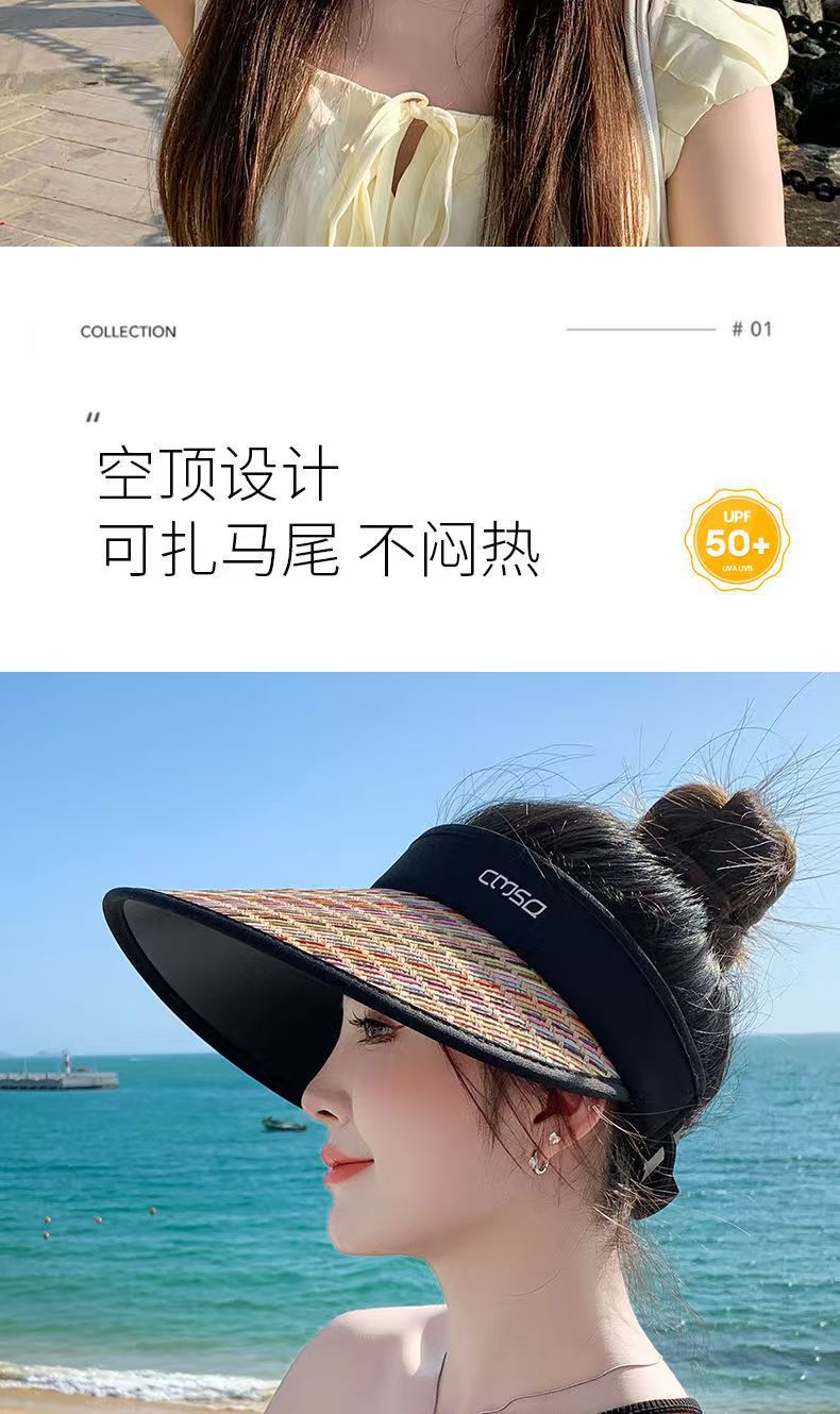 빈 탑 UV 선 스크린 모자 여성의 여름 안티-UV 빅 브림 비치 햇빛 밀짚 모자 야외 태양 모자스토어 가기