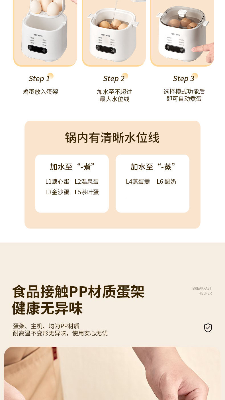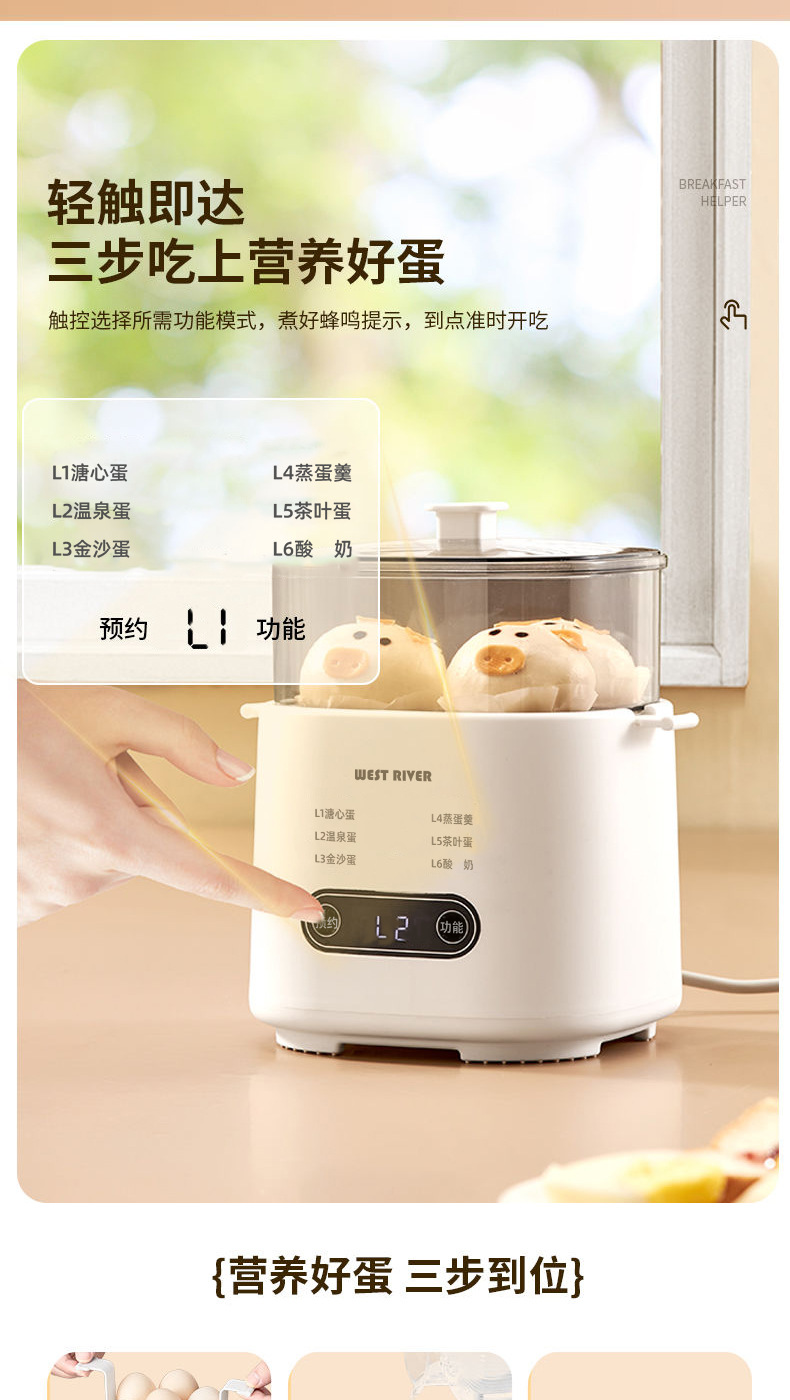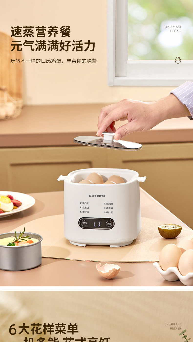 국경 간 지능형 계란찜기 아침 식사 기계 반숙 계란 온천 계란 다기능 가정용 미니 계란 삶는 기계 도매