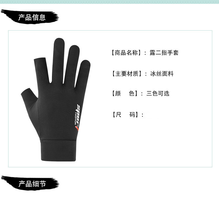 태양 보호 장갑 남자 여름 얼음 실크 얇은 스타일 누출 두 손가락 낚시 미끄럼 방지 테이크 아웃 라이더 사이클링 장갑 여자