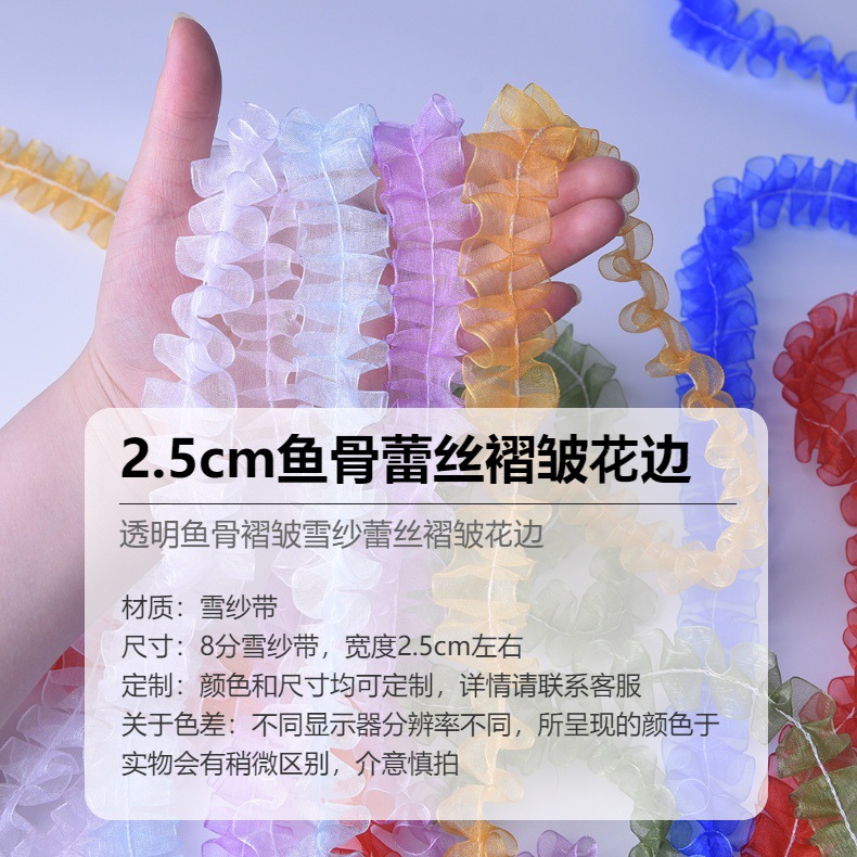 2.5cm 레이스 어본 레이스 수제 DIY 투명 스노우 원사 주름 레이스 사진 프레임은 팬 스커트 장식에 도움이됩니다.