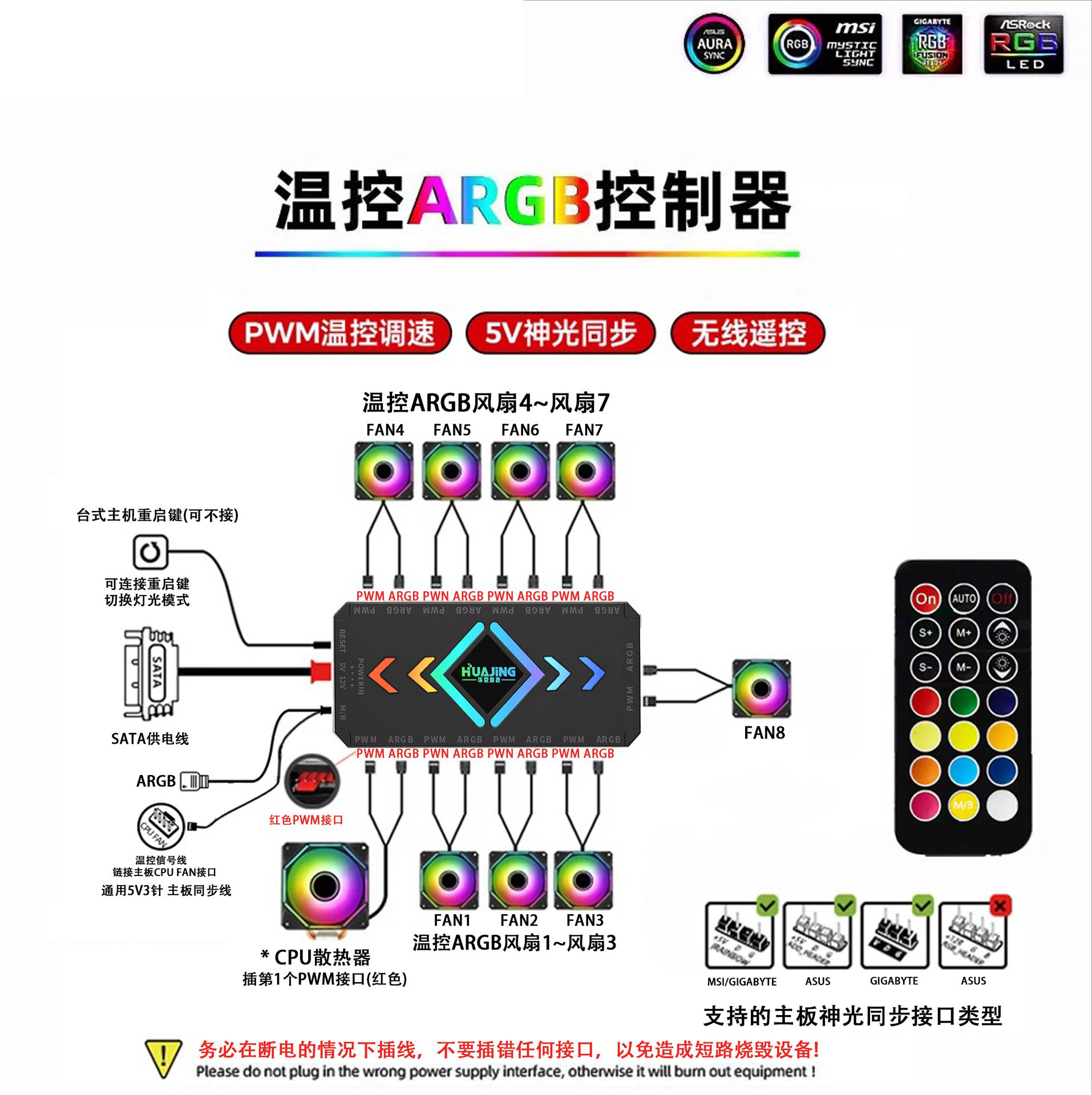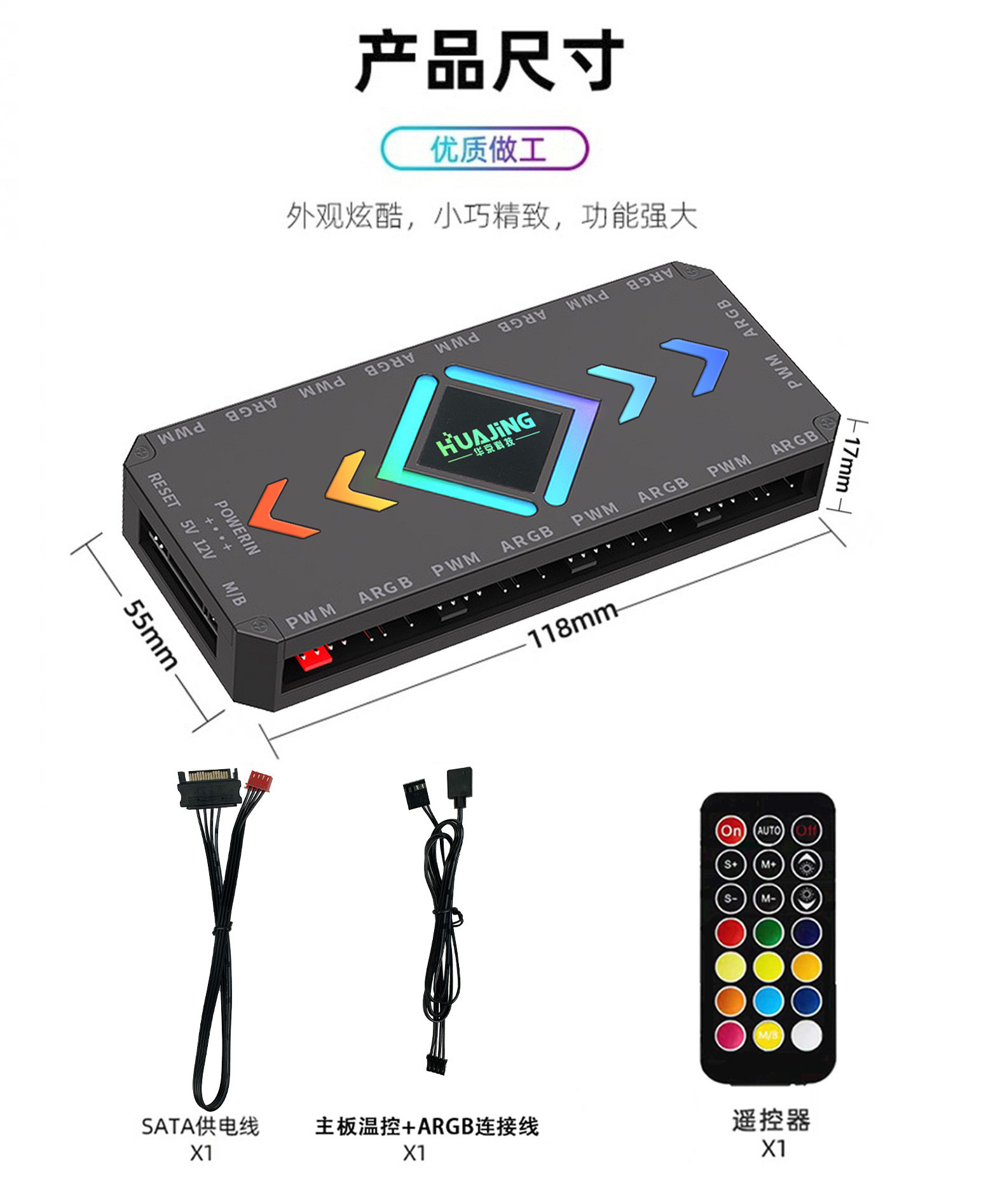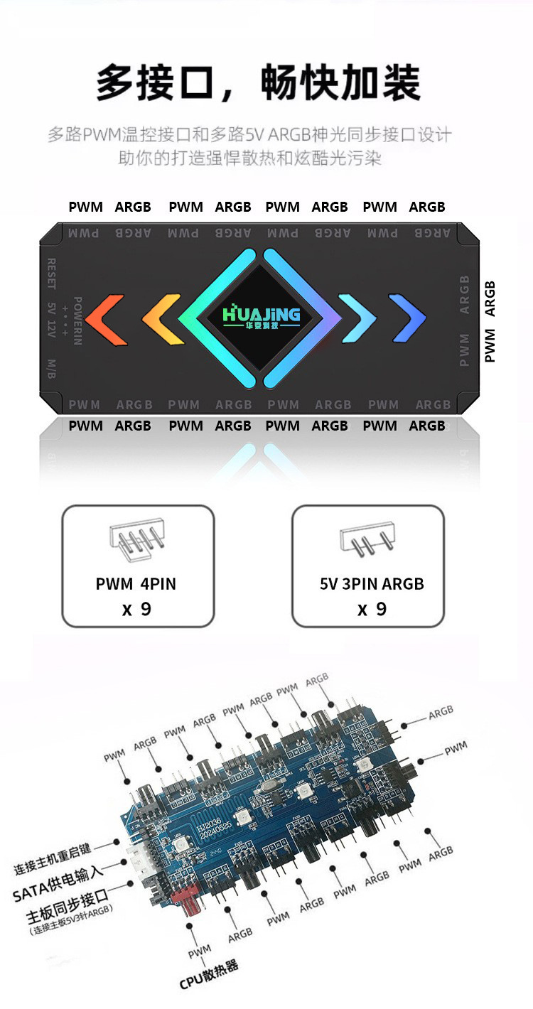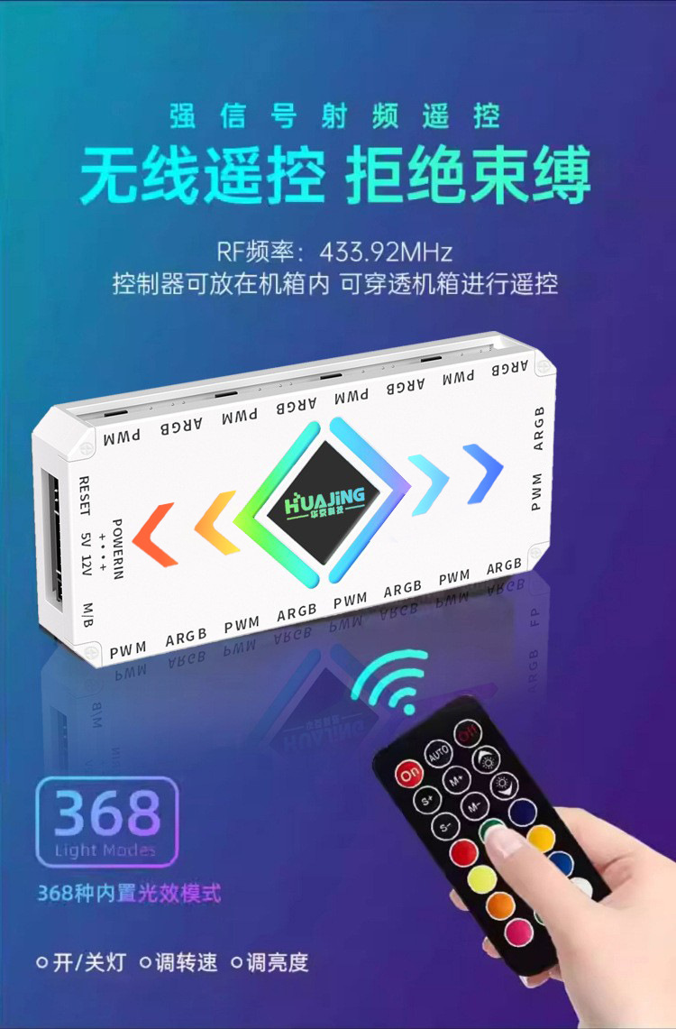 컴퓨터 팬 ARGB 허브 PWM 온도 제어 속도 조절 5V3 바늘 슈앙 동기 무선 원격 제어 섀시 컨트롤러
