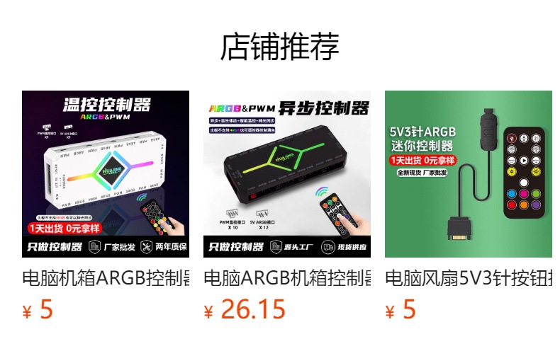 컴퓨터 팬 ARGB 허브 PWM 온도 제어 속도 조절 5V3 바늘 슈앙 동기 무선 원격 제어 섀시 컨트롤러스토어 가기