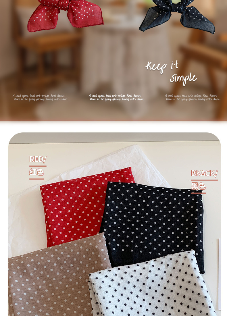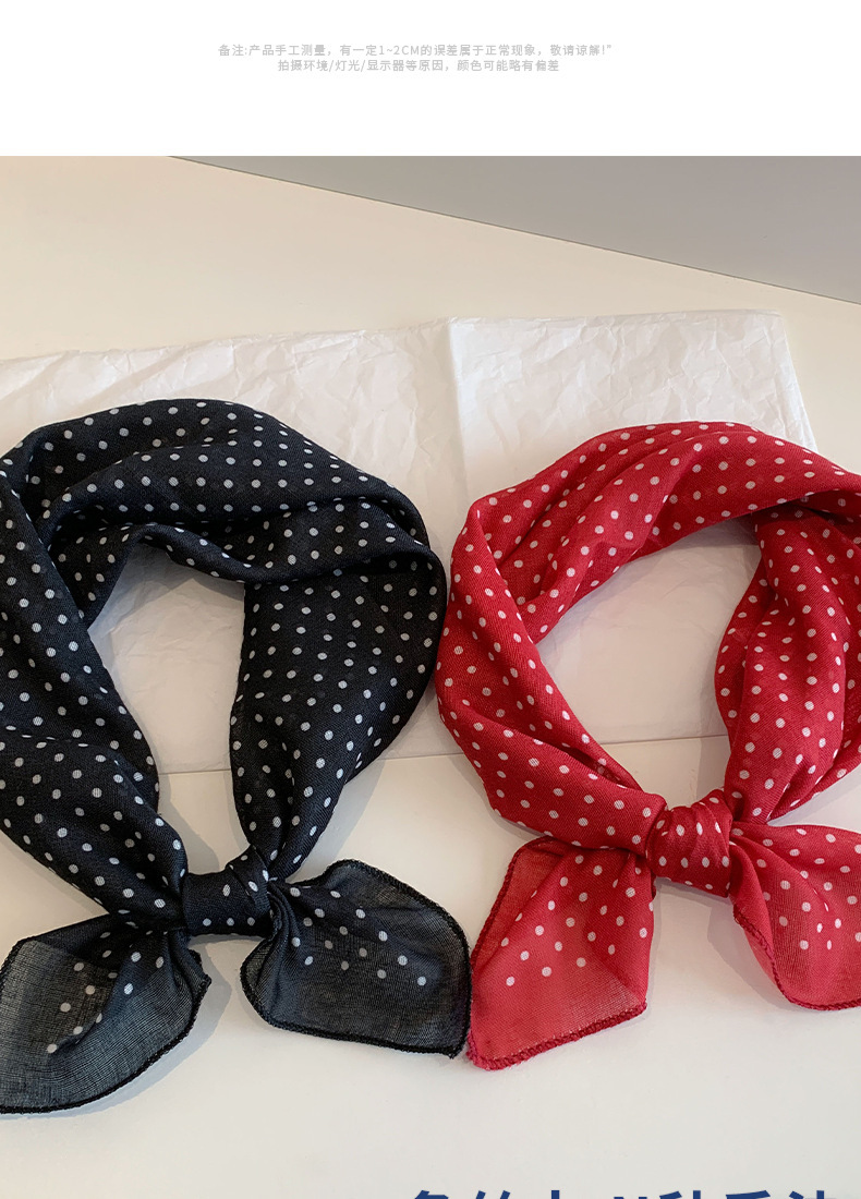 65 웨이브 도트 코튼 및 리넨 작은 스퀘어 스카프 실크 스카프 여성의 봄과 가을 여름 패션 장식 모든 계절에 맞는 목 보호 스카프