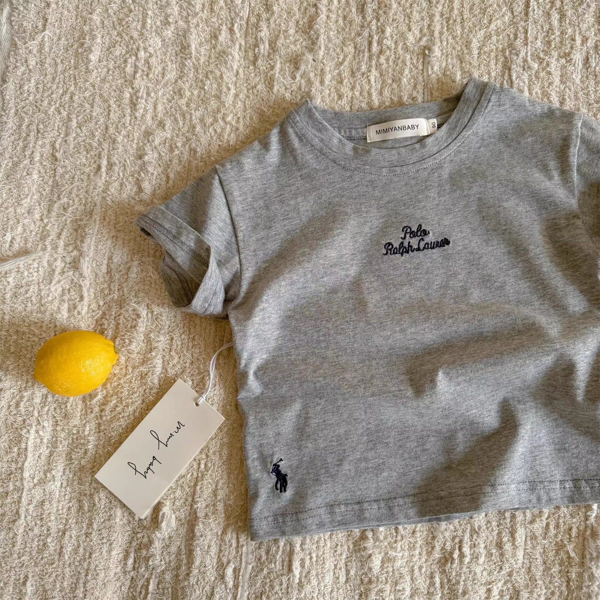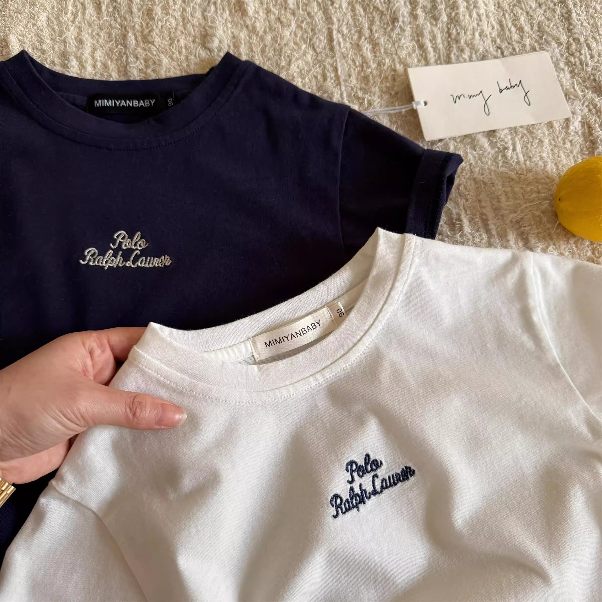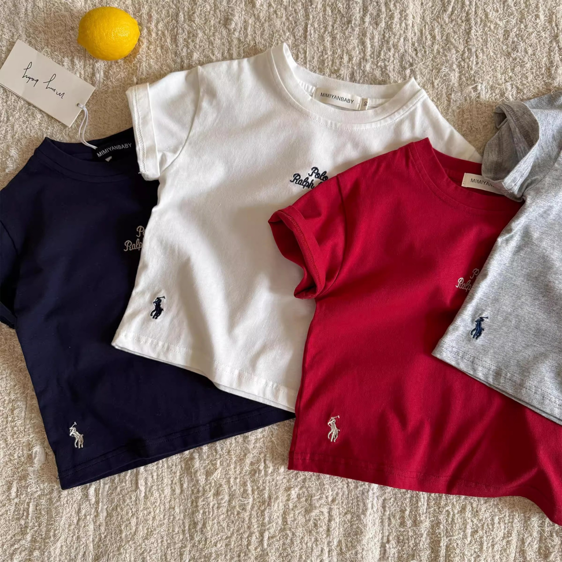 어린이 반팔 25 여름 일본 스타일 트렌디 브랜드 빨간 자수 편지 아기베이스 셔츠 어린이 서양식 티셔츠스토어 가기