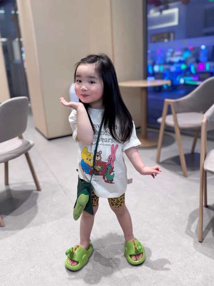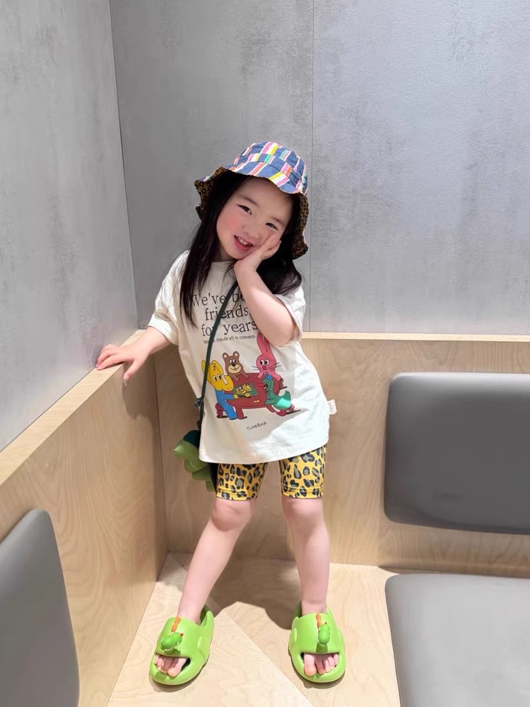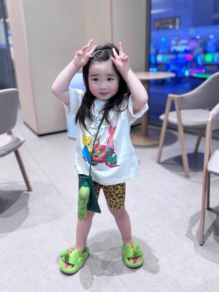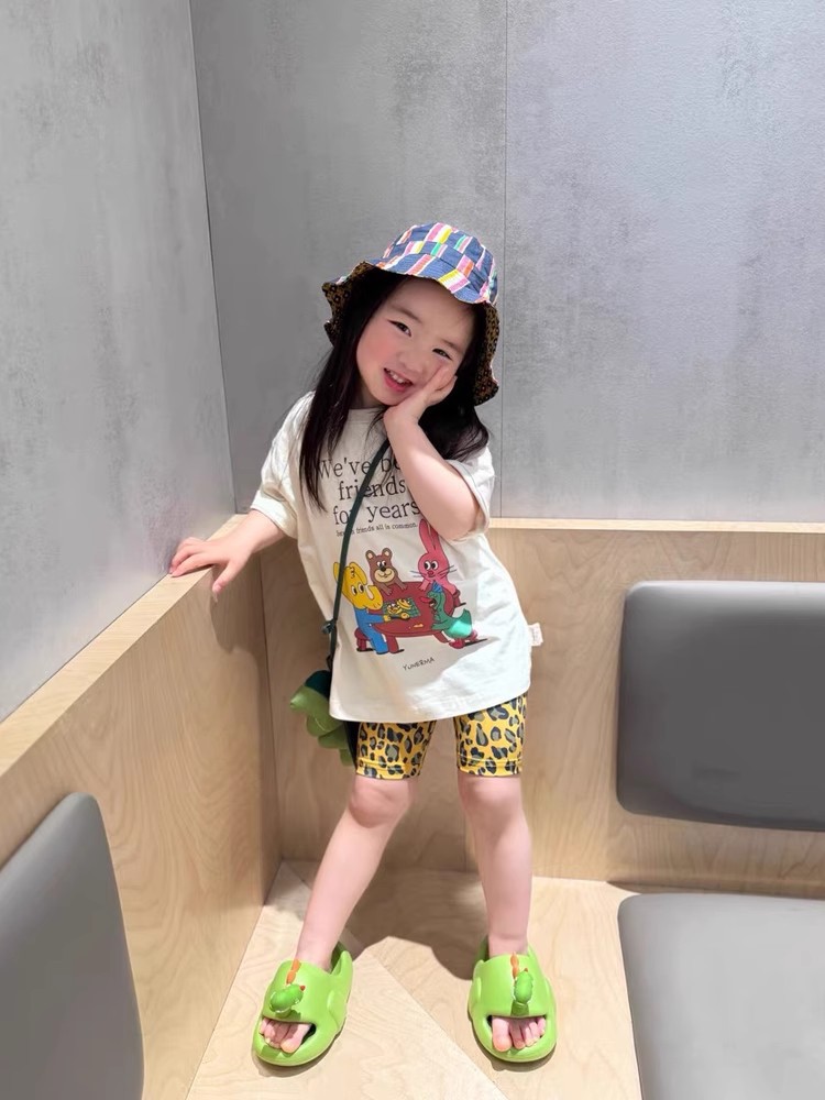 여아 여름 2026 귀여운 만화 프린트 순면 반팔 티셔츠, 중소형 아동용 캐주얼 화이트 다용도 편안한 얇은 티셔츠스토어 가기