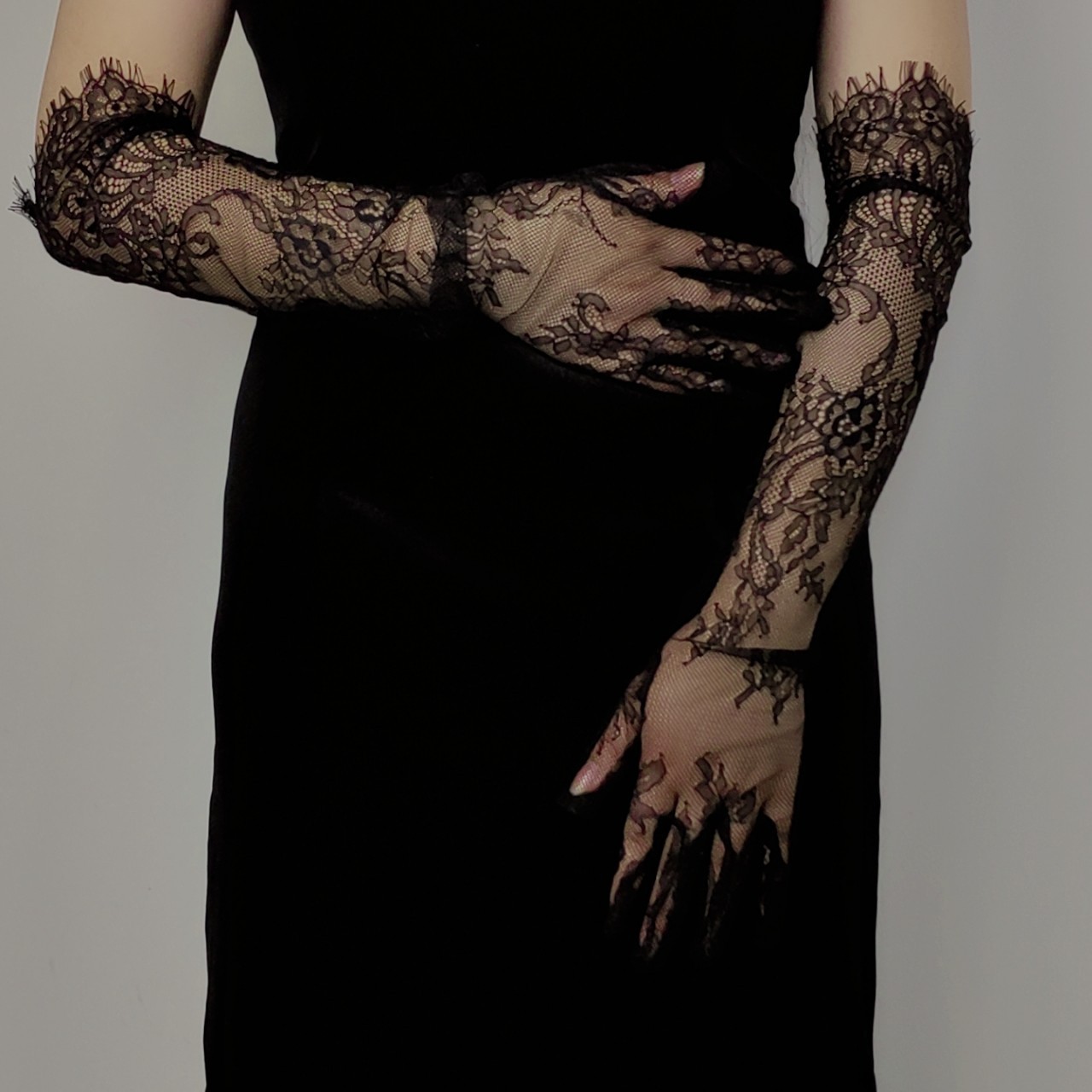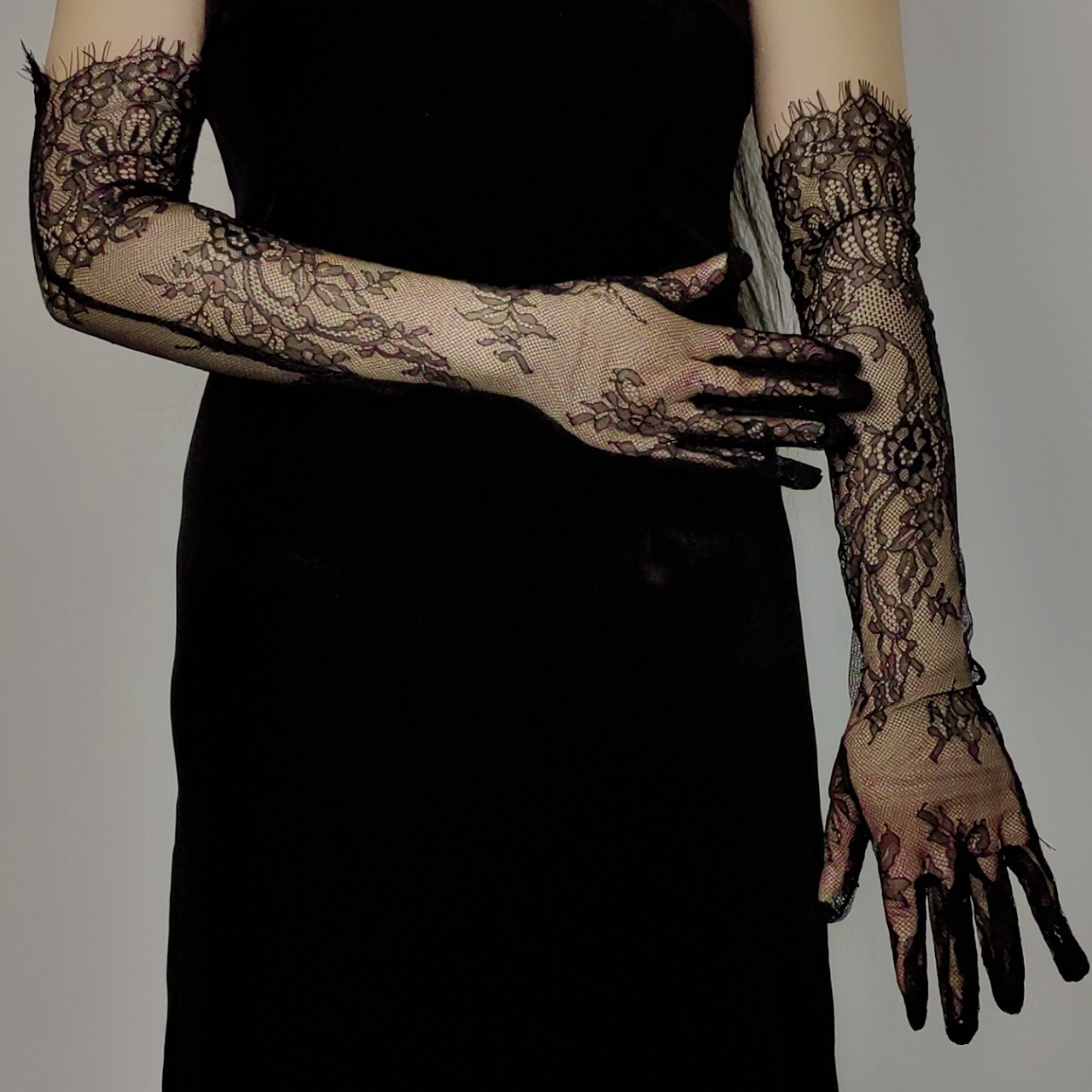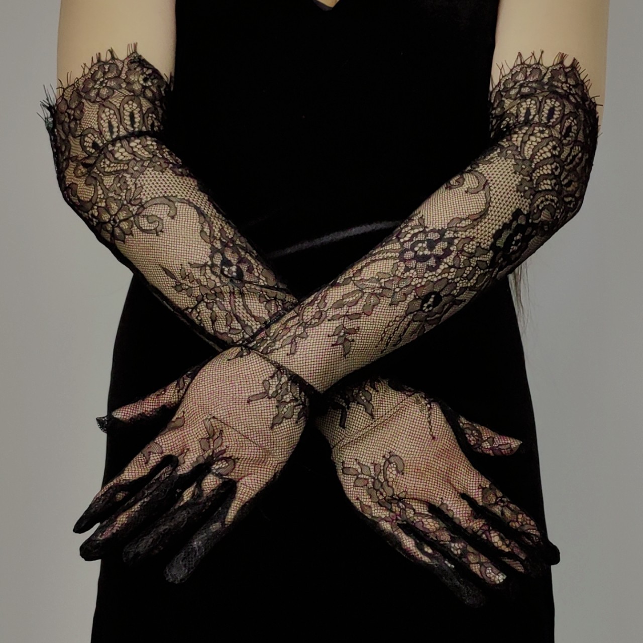 국경 간 긴 검은 레이스 장갑 섹시한 메쉬 태양 보호 슬리브 웨딩 사진 할로윈 웨딩 액세서리