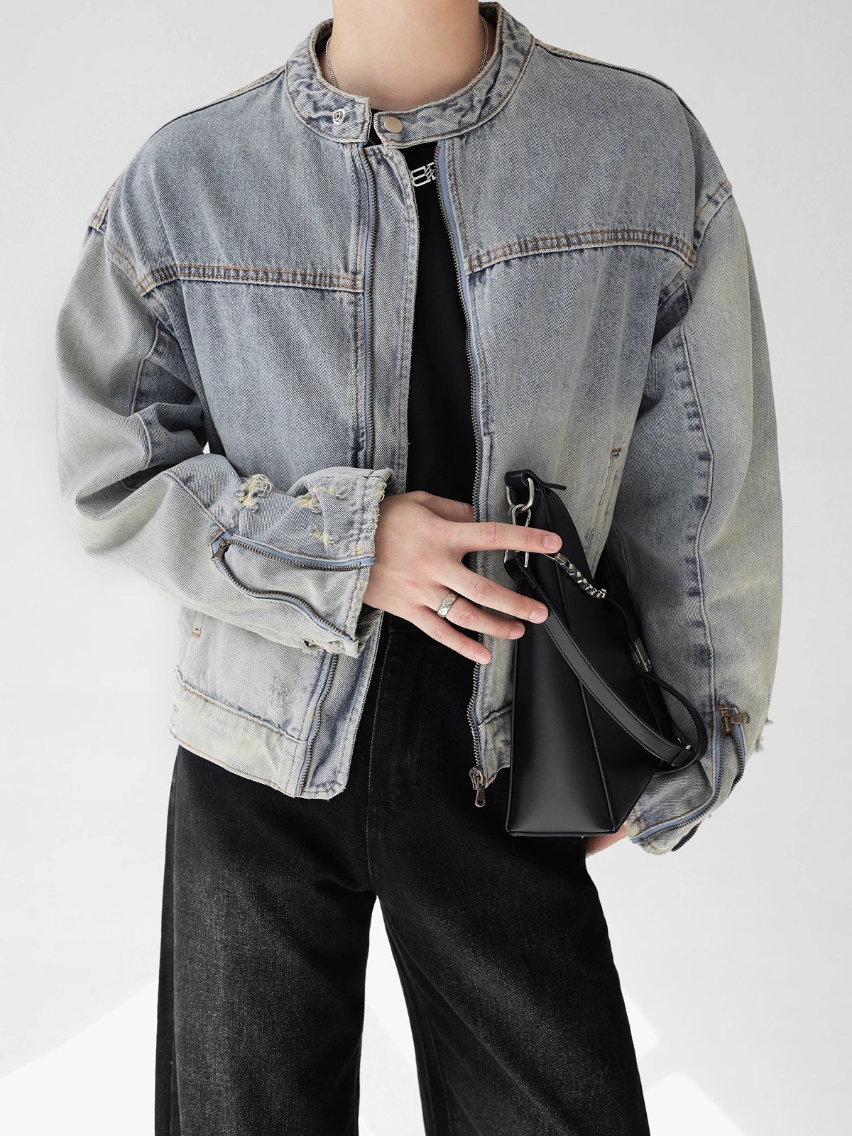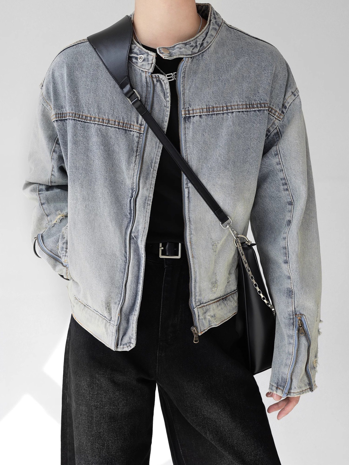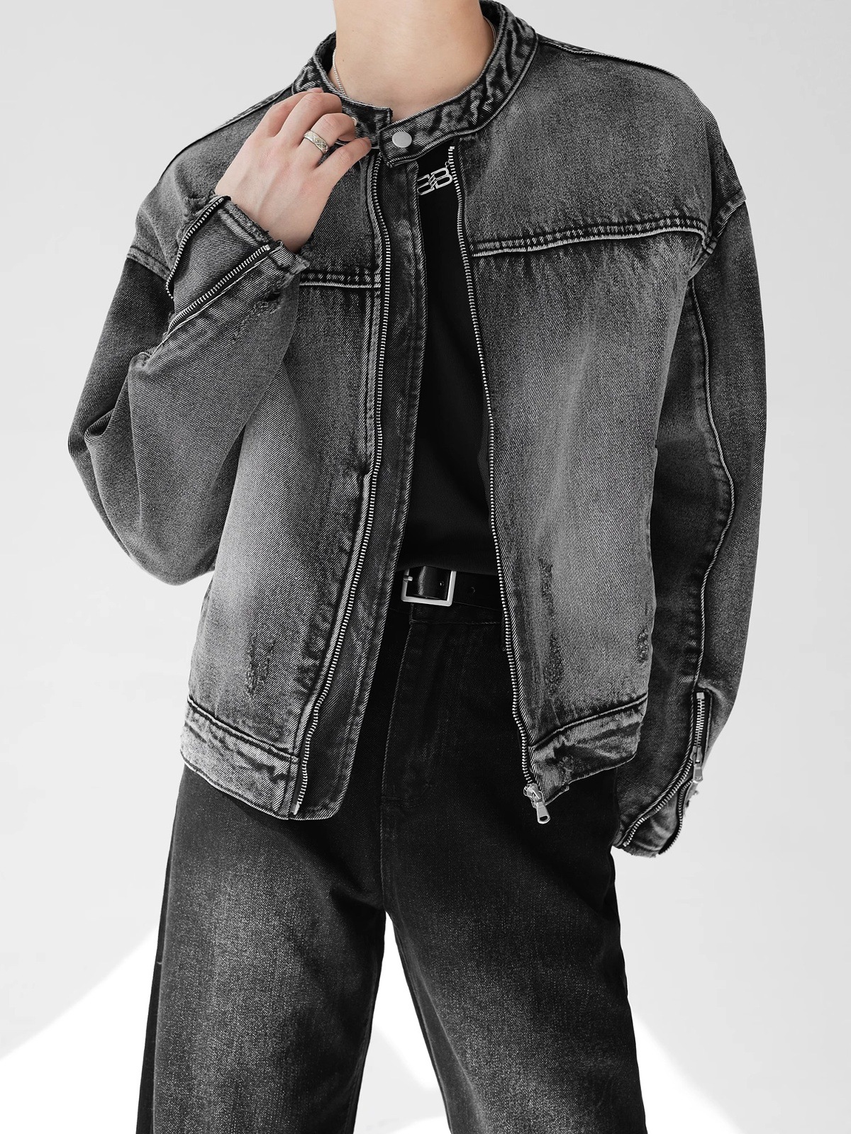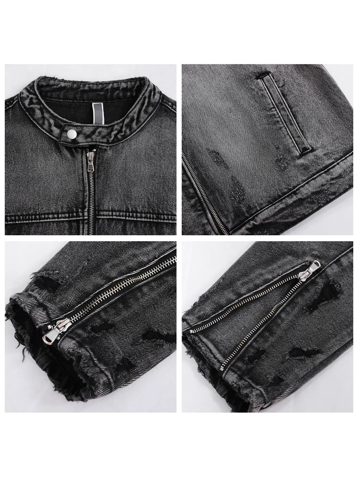 봄, 가을 남성용 아메리칸 하이 스트리트 하이엔드 핸섬 데님 재킷 새로운 스타일 워싱 및 디스트레스드 루즈하고 다재다능한 짧은 재킷스토어 가기