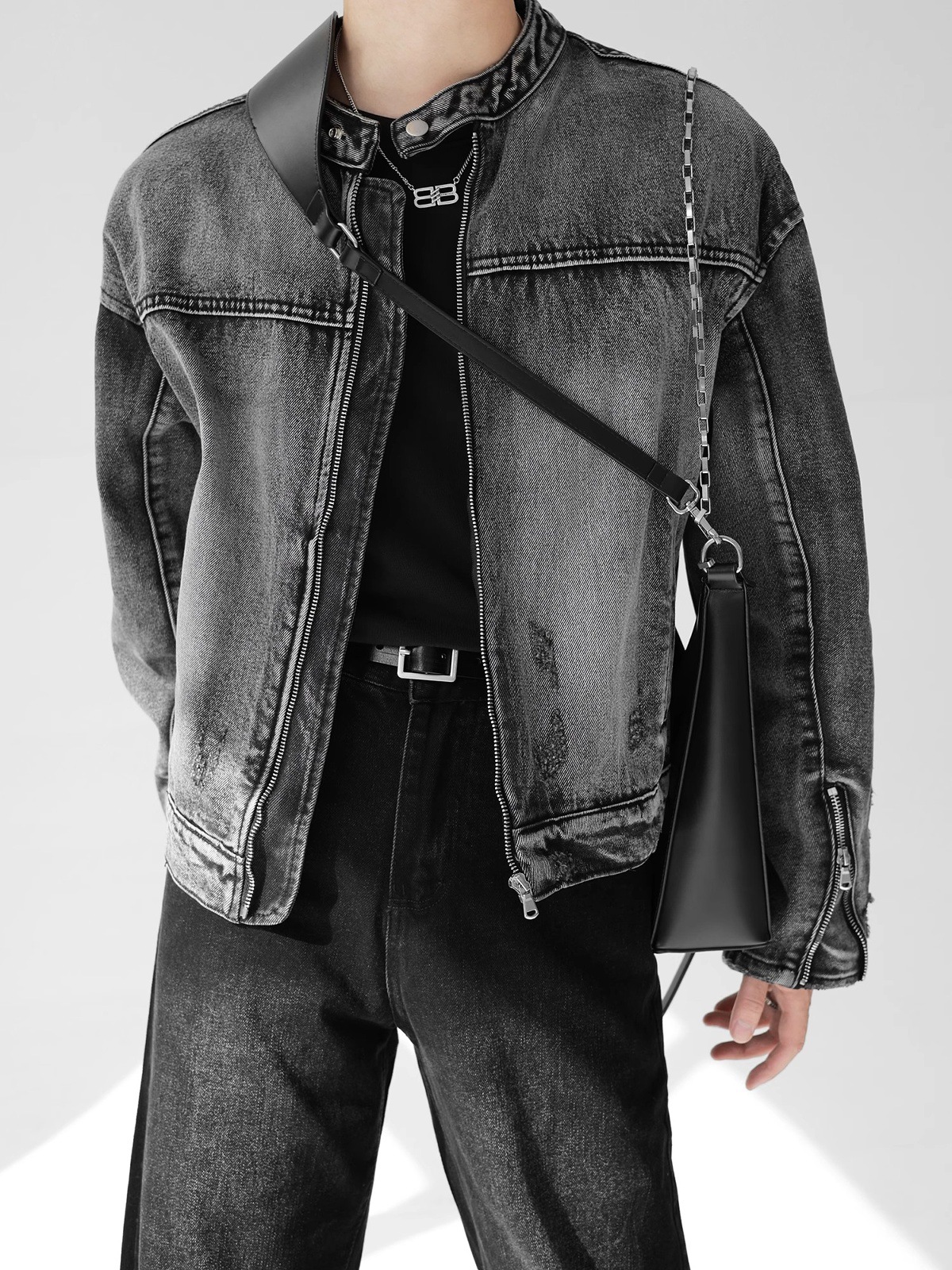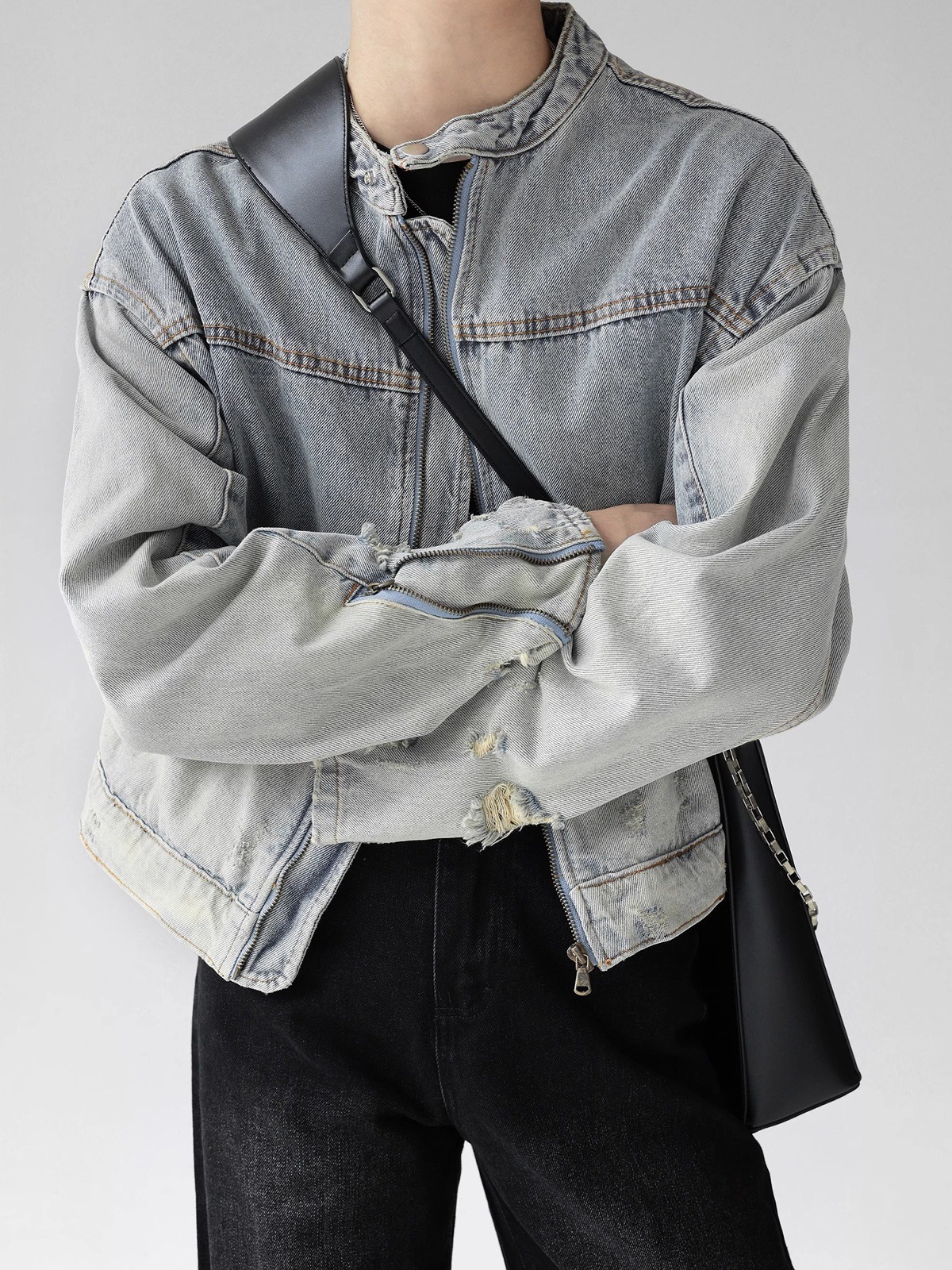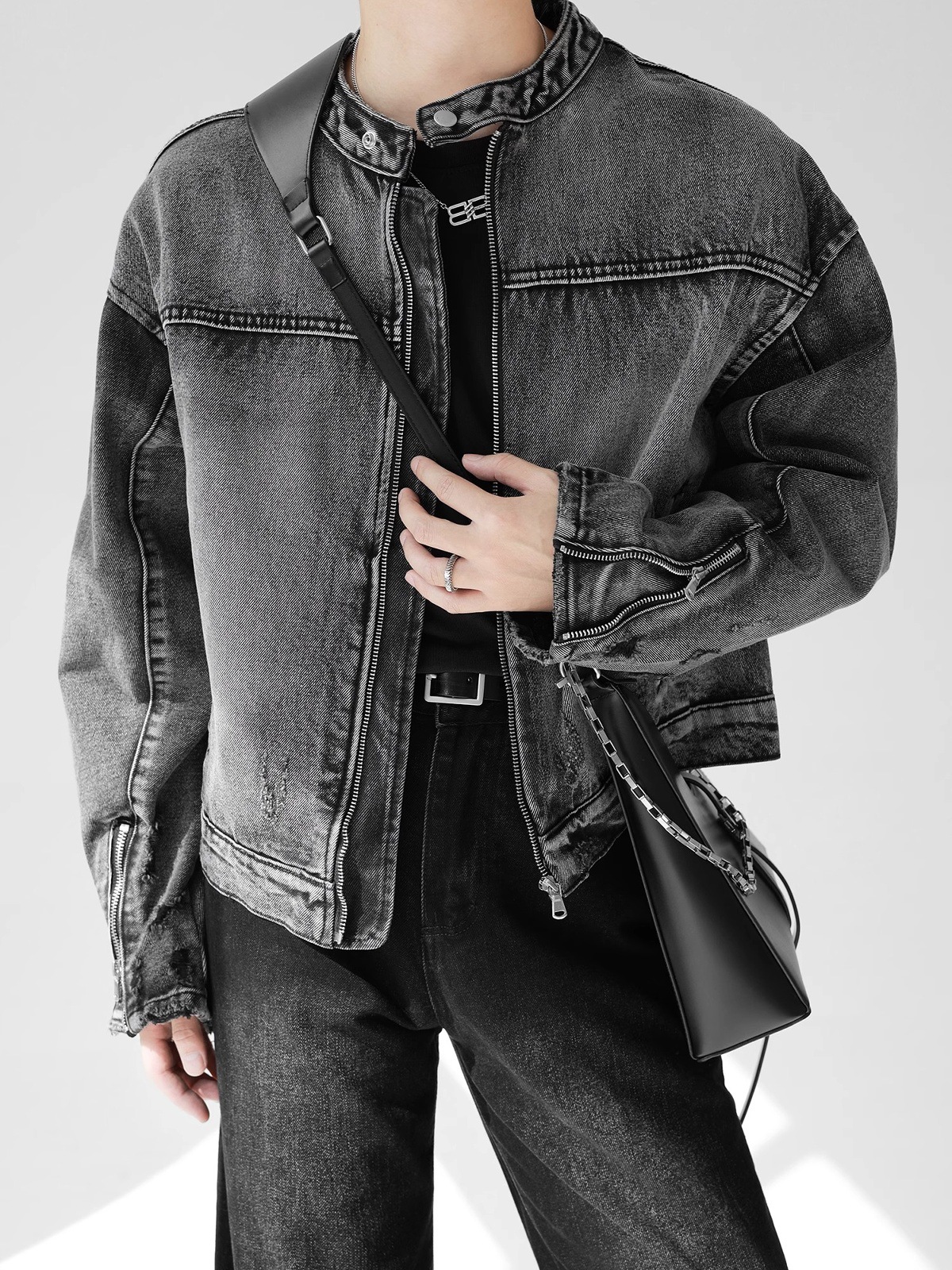 봄, 가을 남성용 아메리칸 하이 스트리트 하이엔드 핸섬 데님 재킷 새로운 스타일 워싱 및 디스트레스드 루즈하고 다재다능한 짧은 재킷
