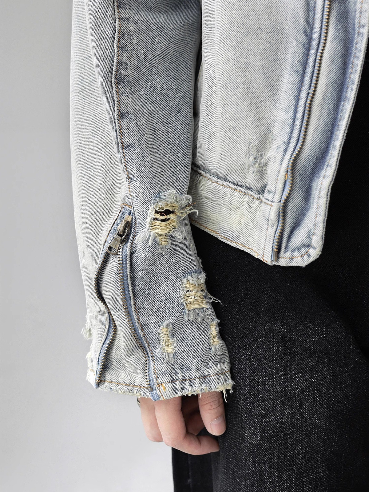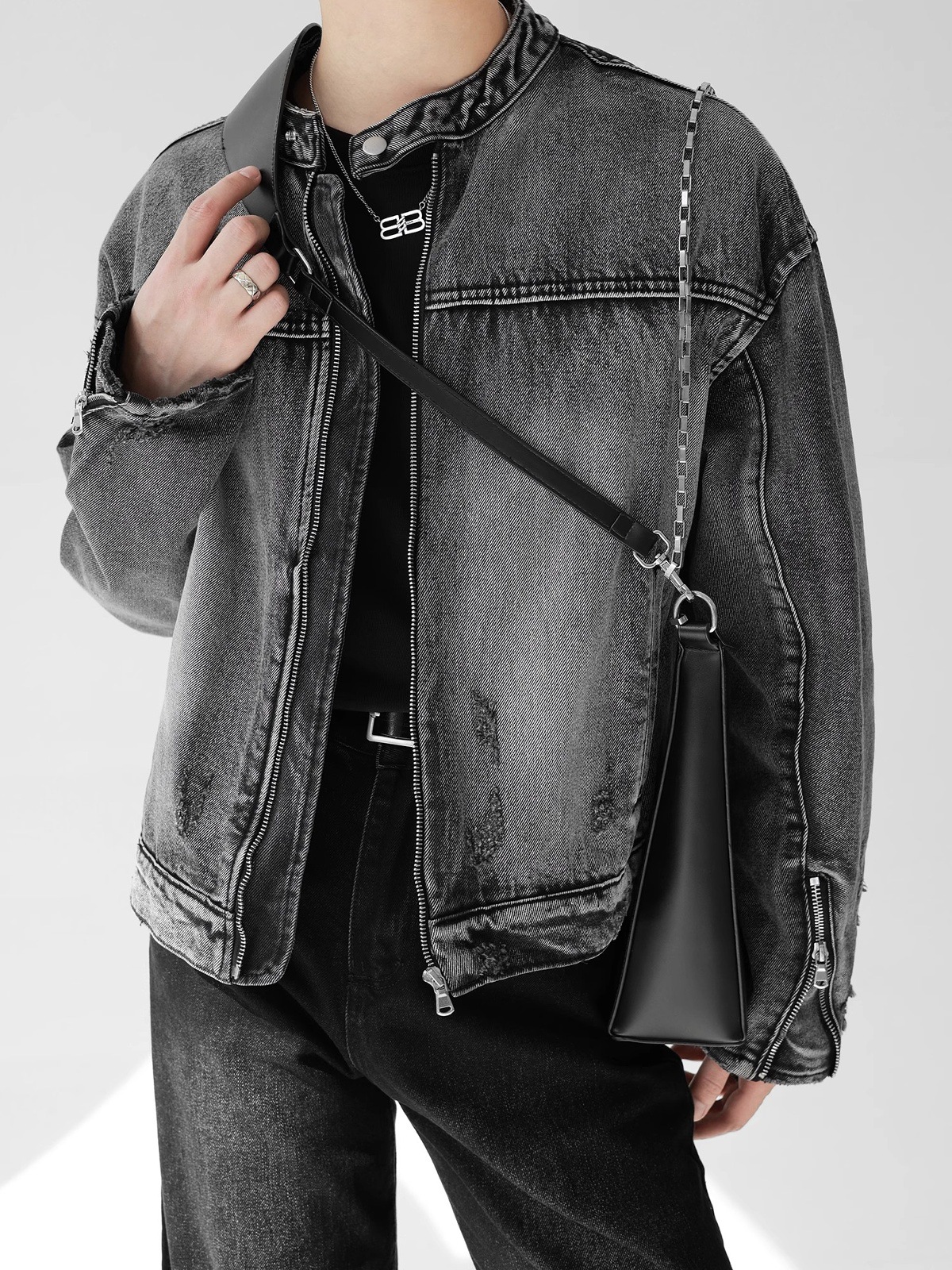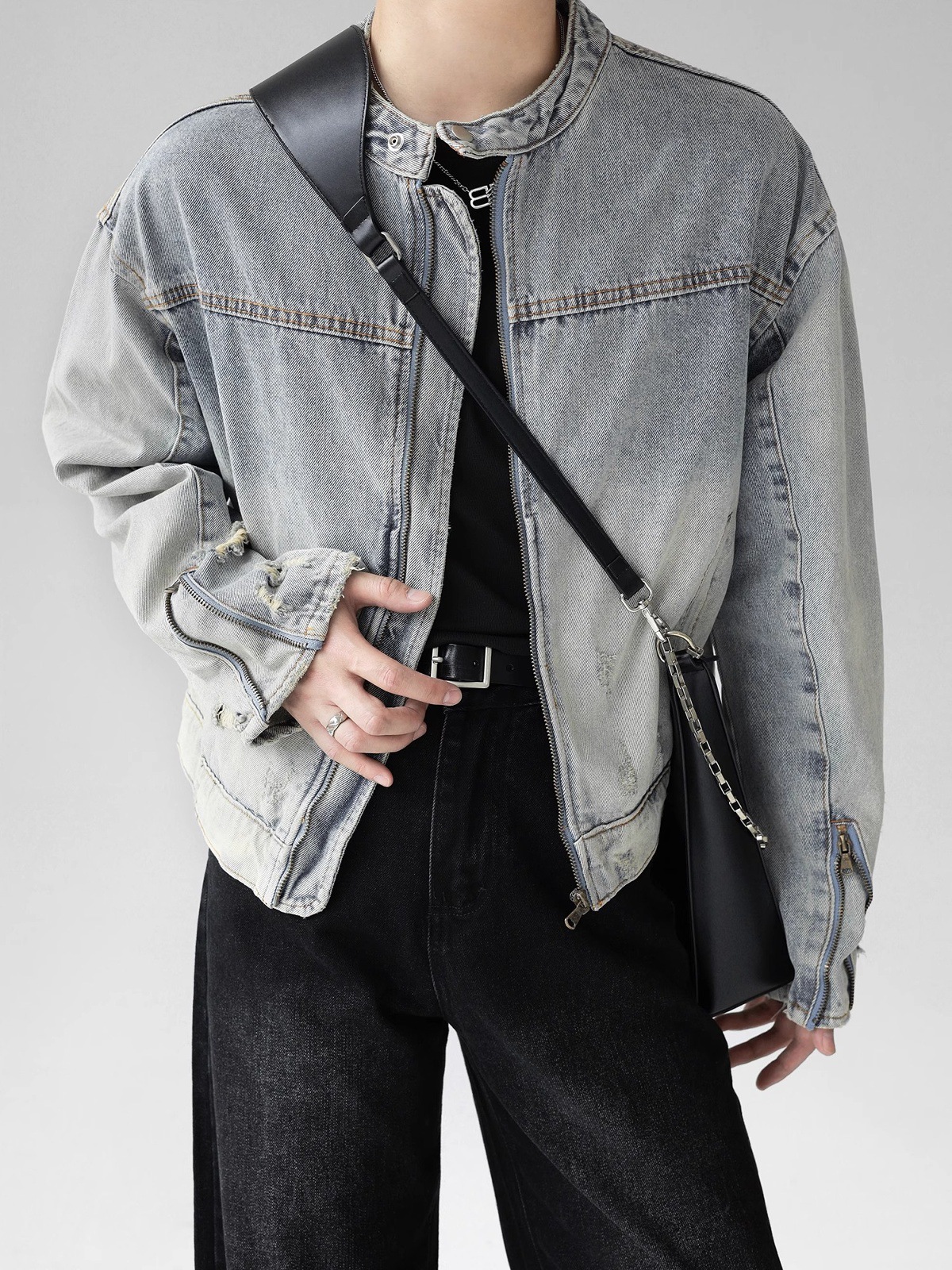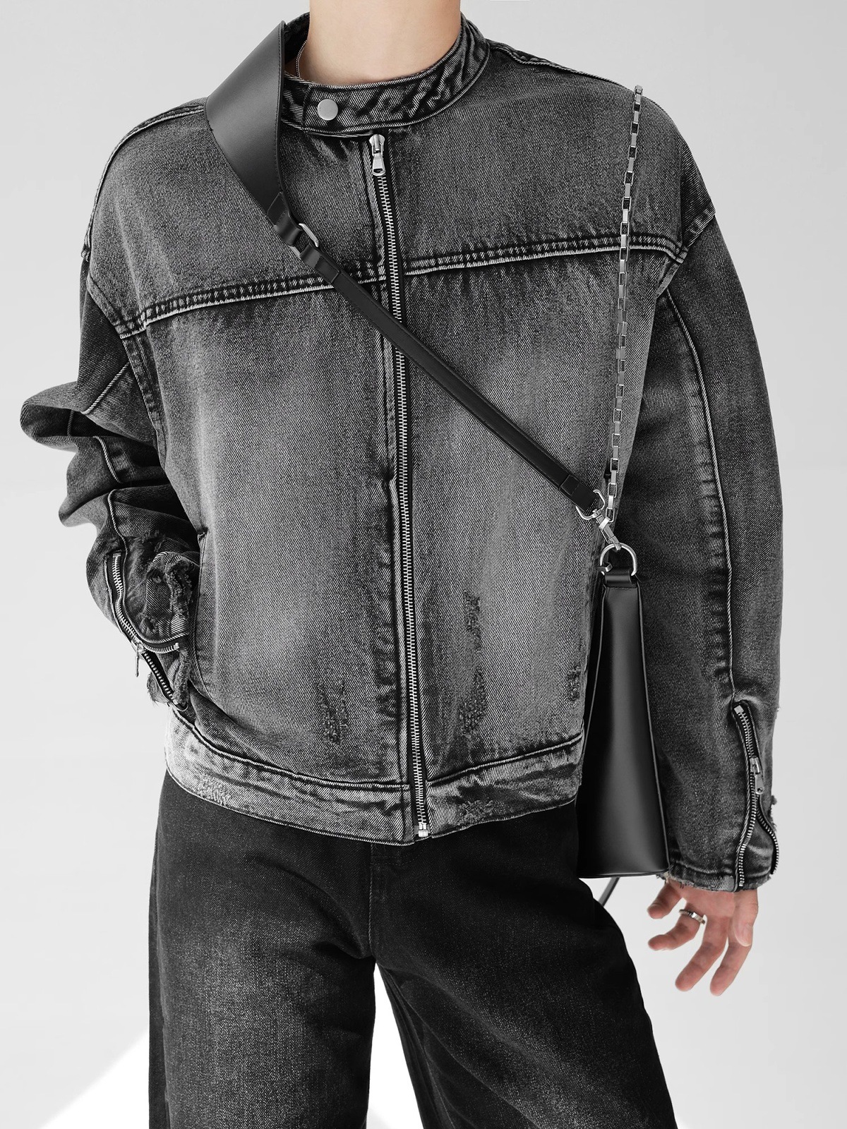 봄, 가을 남성용 아메리칸 하이 스트리트 하이엔드 핸섬 데님 재킷 새로운 스타일 워싱 및 디스트레스드 루즈하고 다재다능한 짧은 재킷