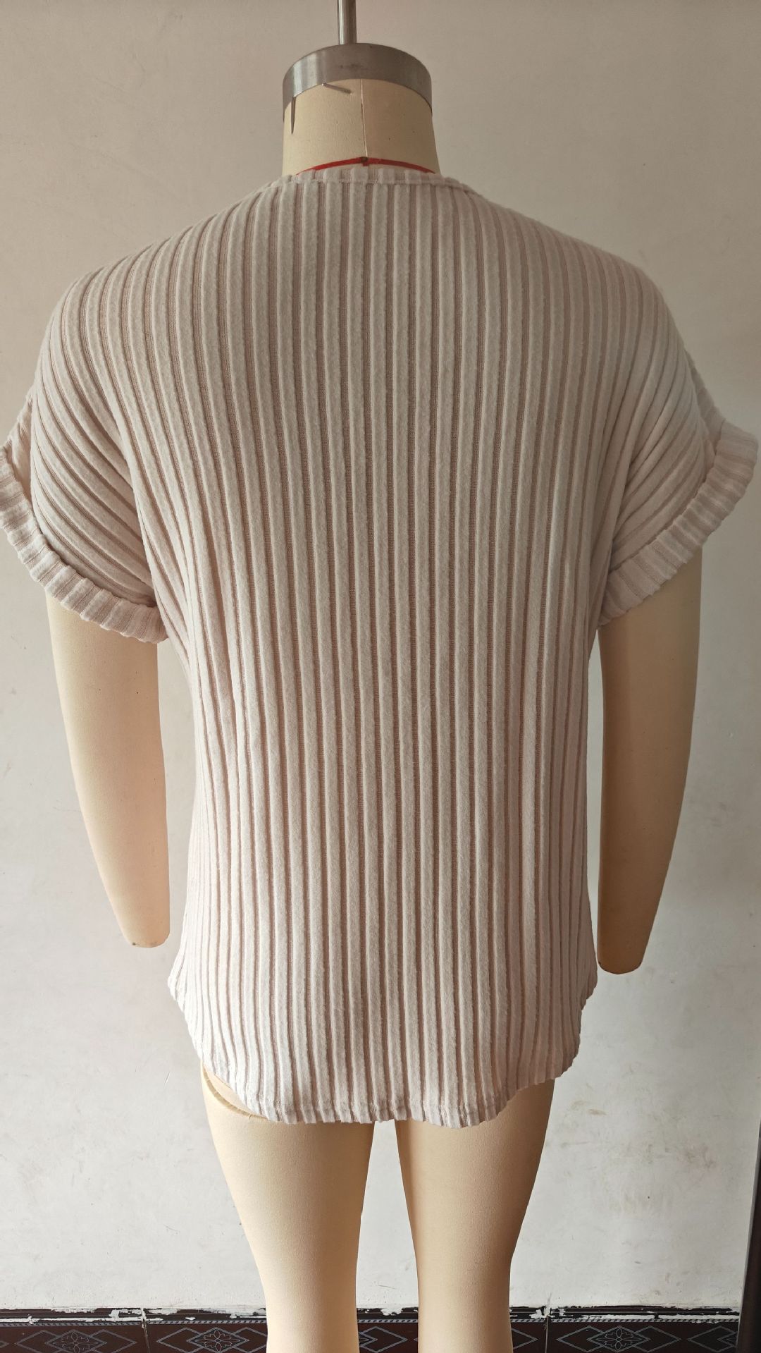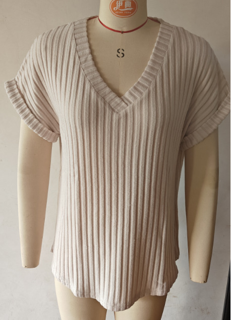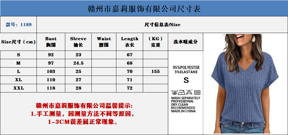 2025 유럽과 미국의 국경 간 여름 최고의 여성 반팔 캐주얼 V 넥 풀오버 티셔츠