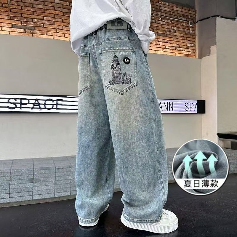 남학생 여름 텐셀 청바지 2025 신형 중형 및 대형 어린이 경량 통기성 소년 얇은 바지 올 매치 여름 패션스토어 가기