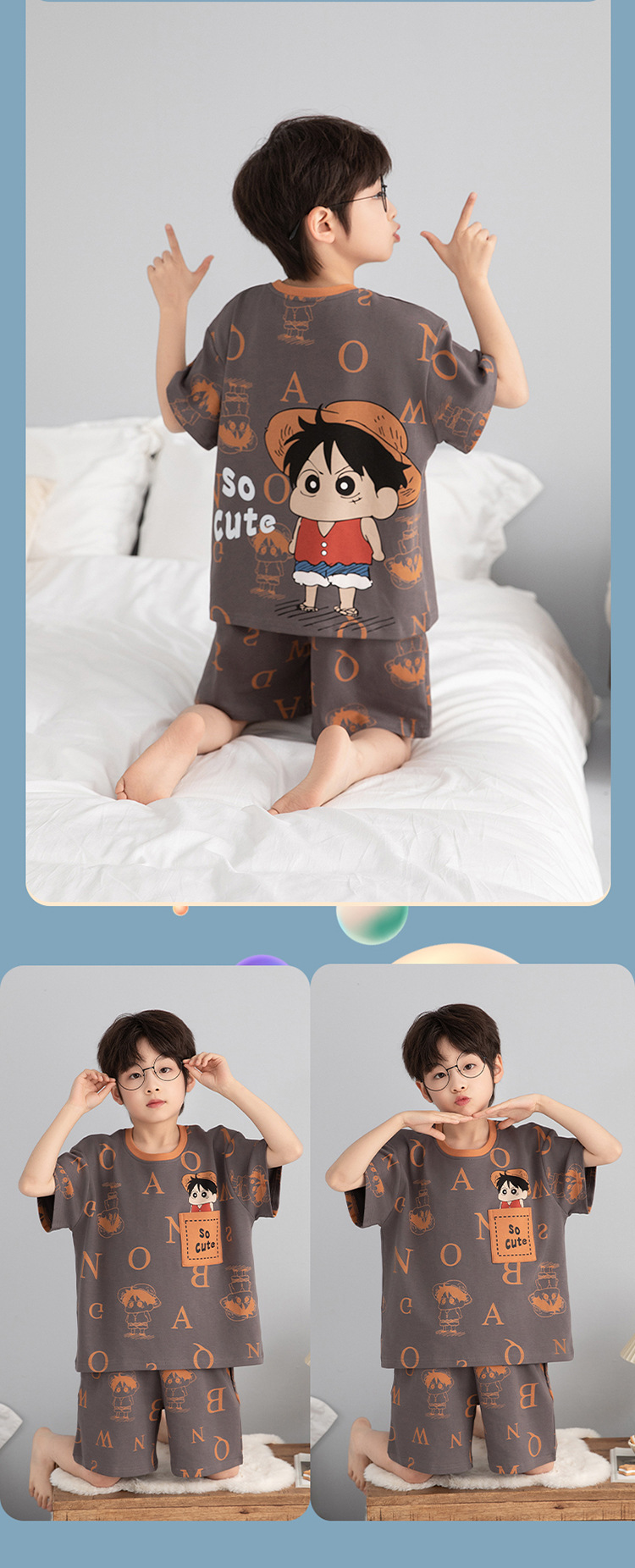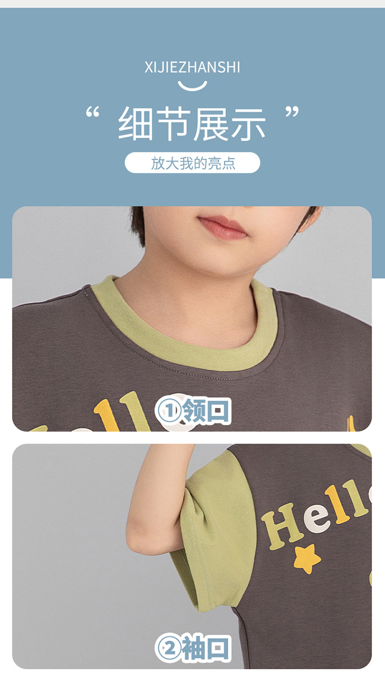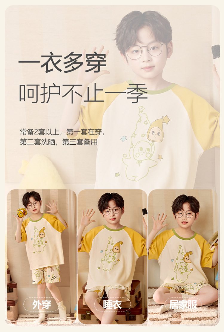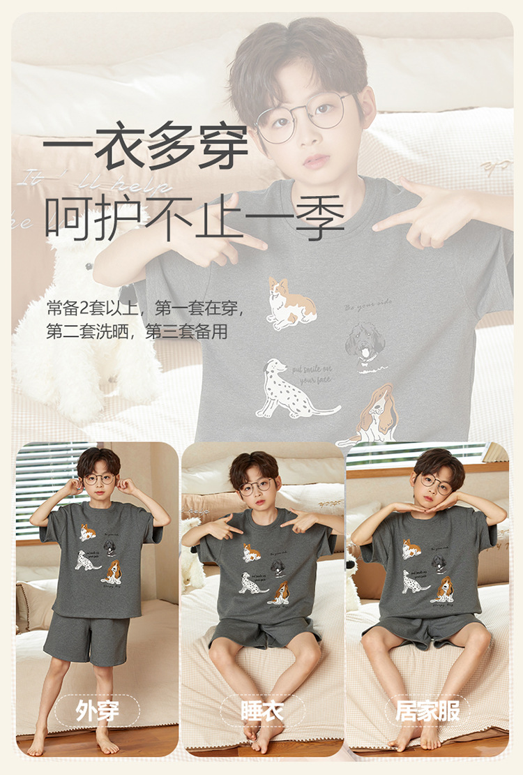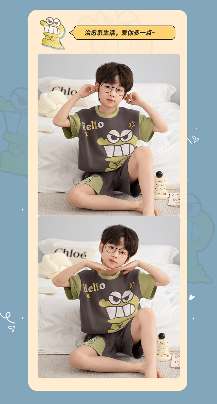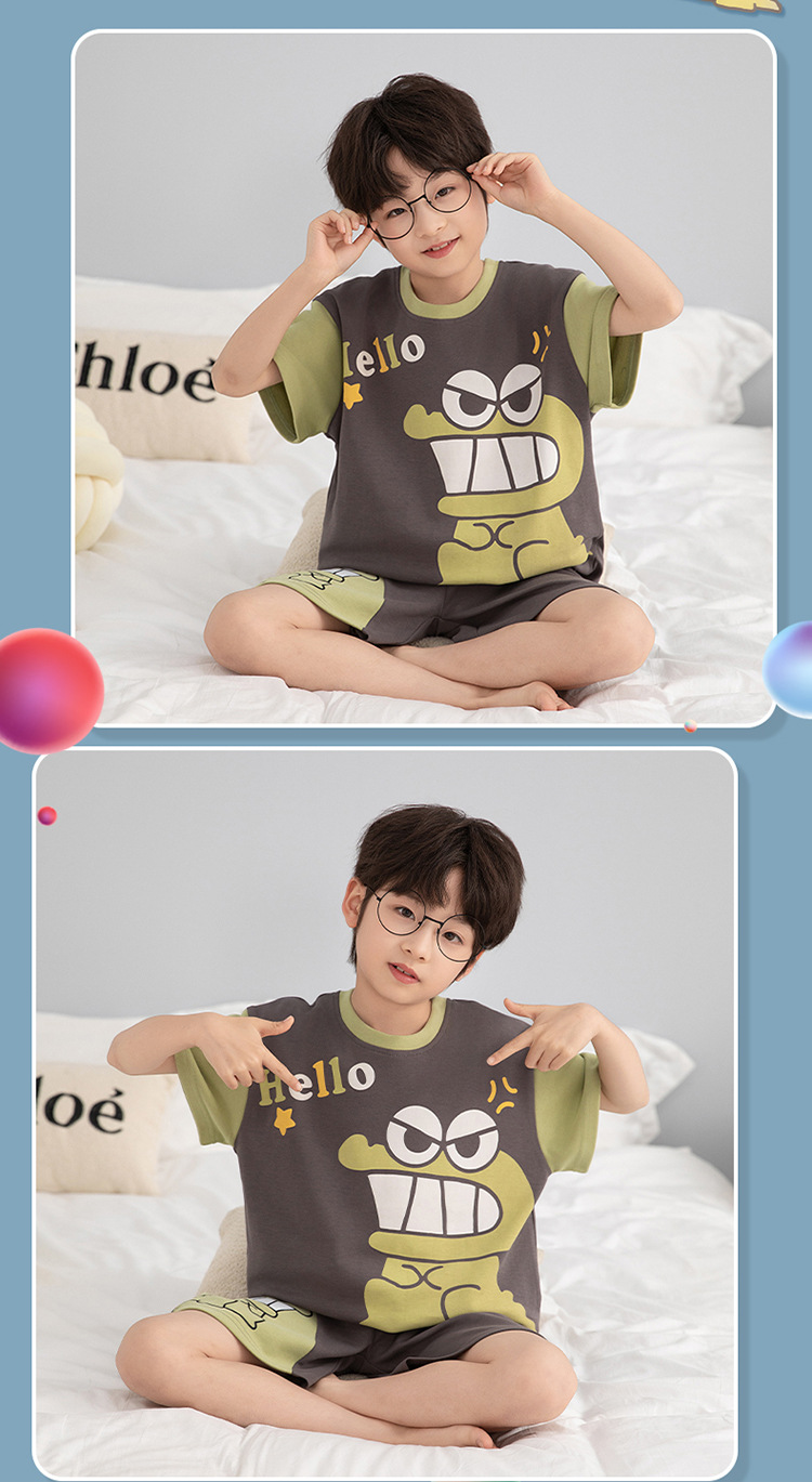 소년 잠옷 짧은 소매 100% 순면 여름 얇은 만화 어린이 집 옷 아기 소년의 중년 어린이 세트스토어 가기