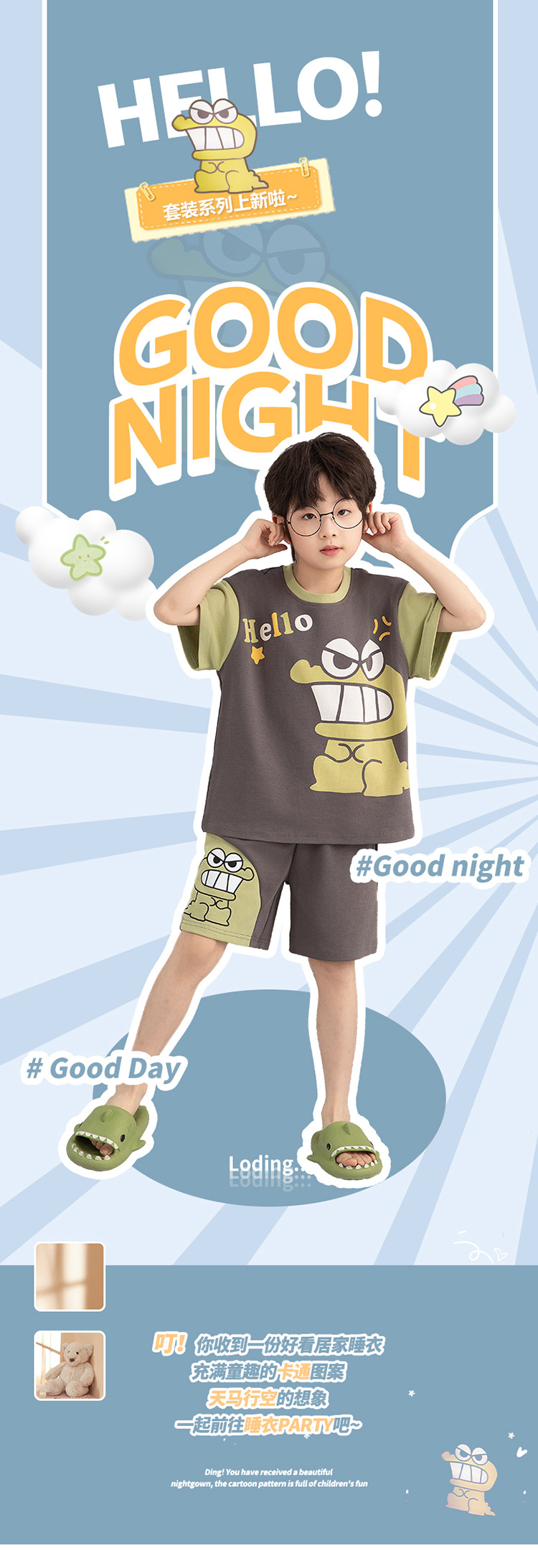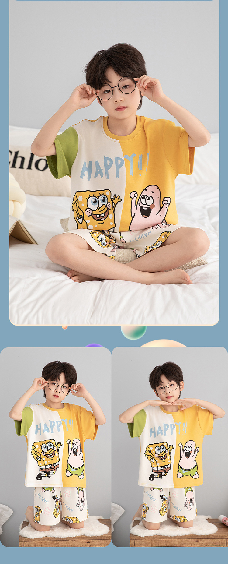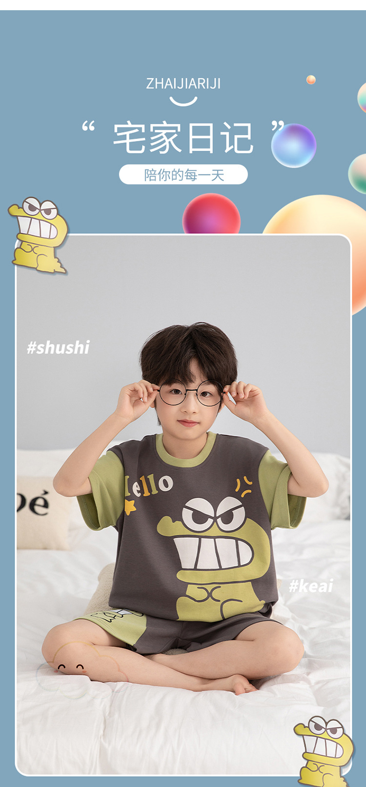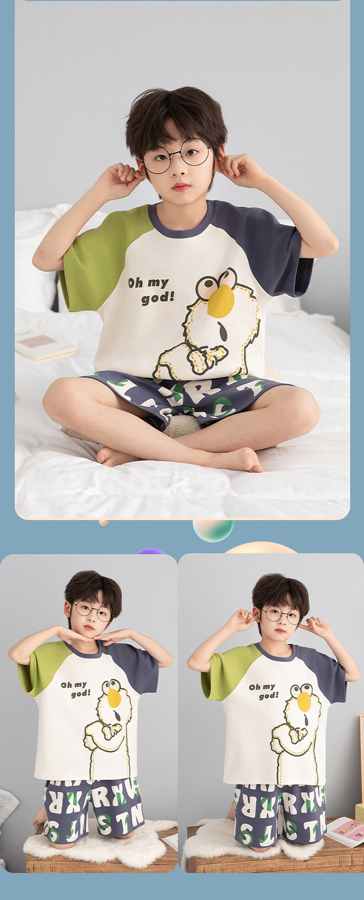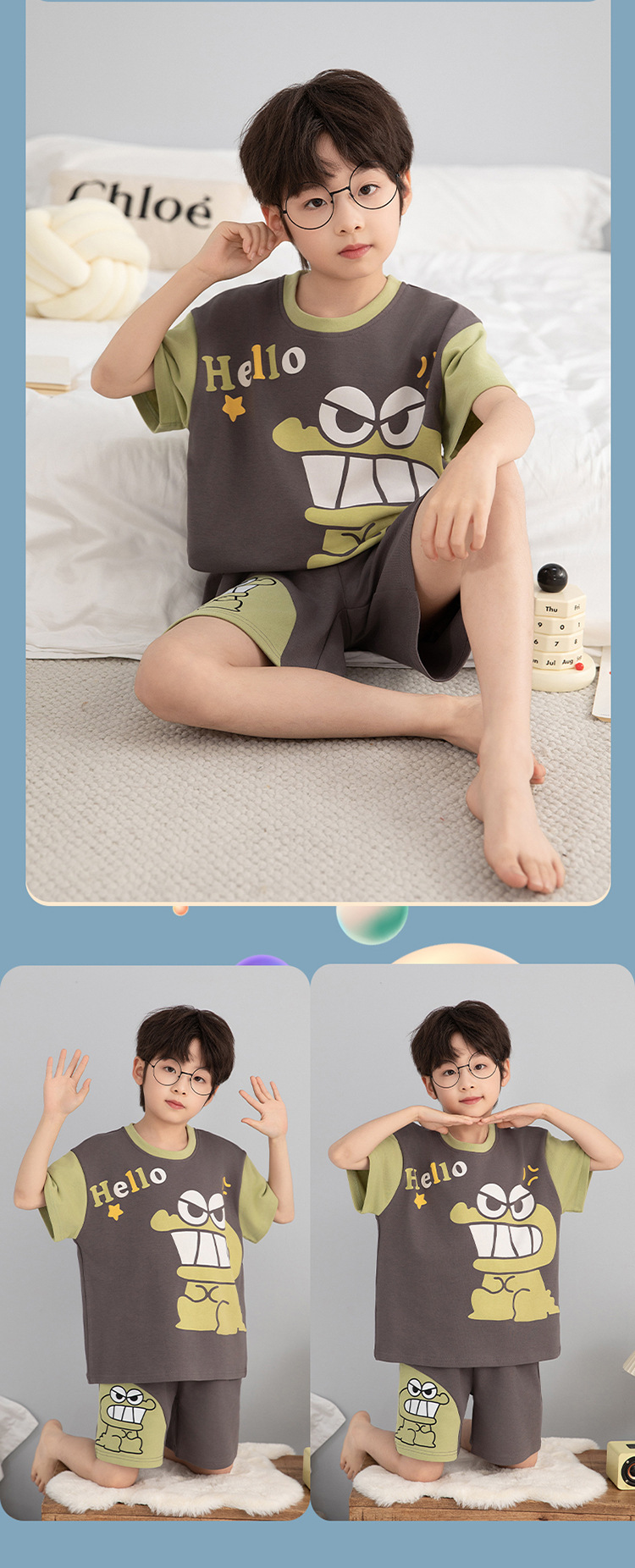소년 잠옷 짧은 소매 100% 순면 여름 얇은 만화 어린이 집 옷 아기 소년의 중년 어린이 세트스토어 가기