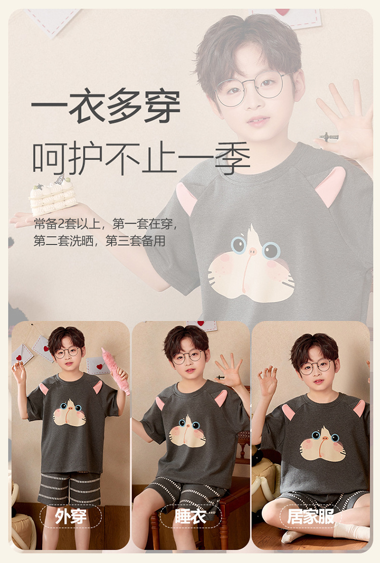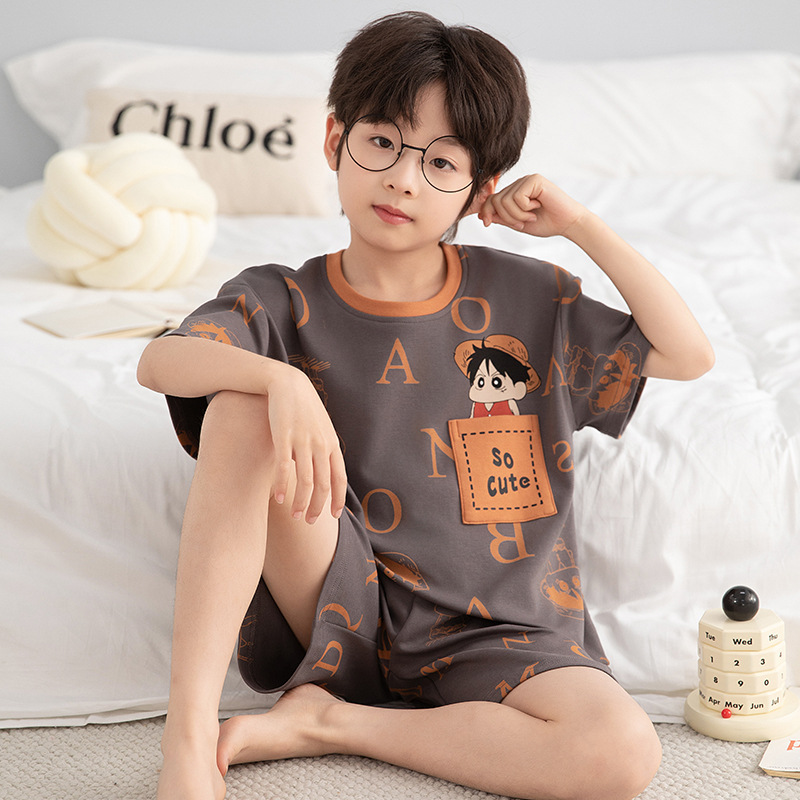 소년 잠옷 짧은 소매 100% 순면 여름 얇은 만화 어린이 집 옷 아기 소년의 중년 어린이 세트