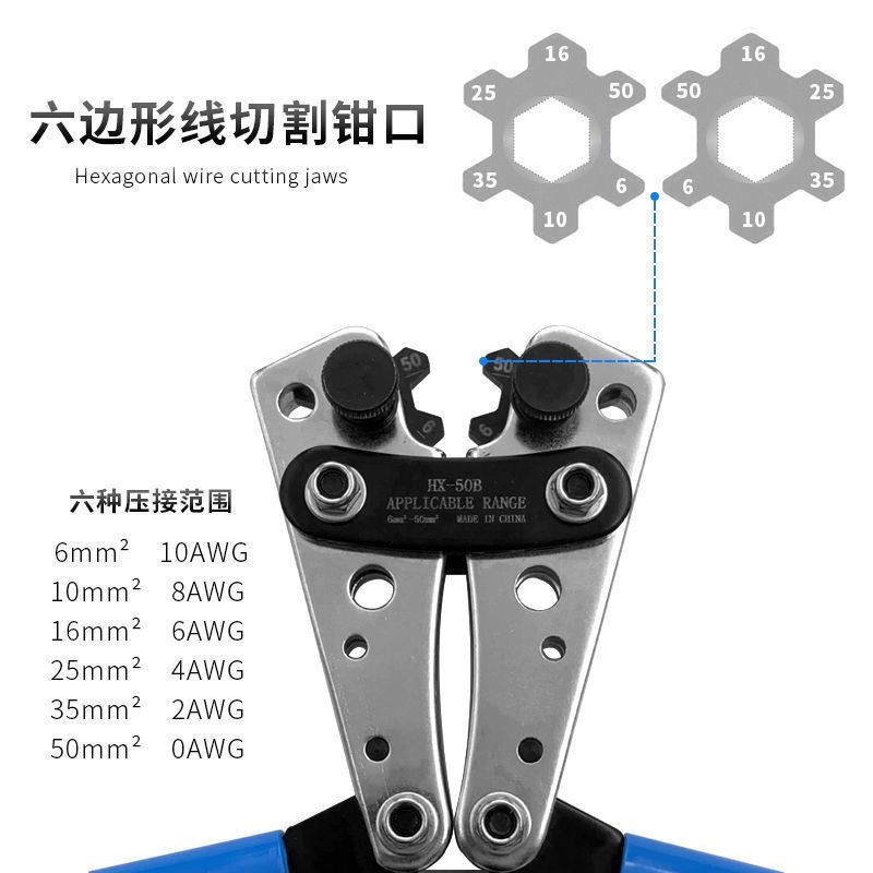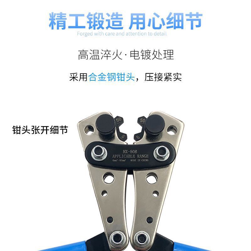 구리 노즈 압착 펜치 전기 압착 냉간 압착 단자 HX-50B 대형 베어 단자 오픈 라인 노즈 압착 펜치