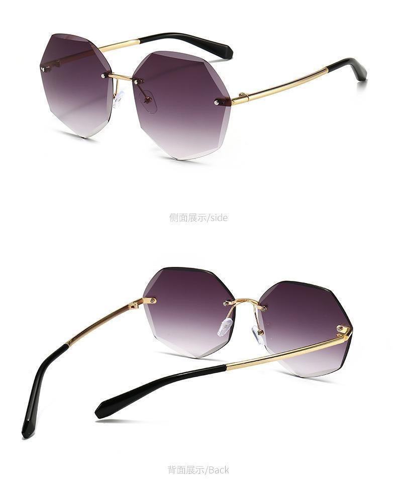 새로운 한국식 선글라스 여성 둥근 얼굴 보이는 얼굴 작은 프레임리스 엣지 컷 독특한 트렌디 크로스 보더 레트로 센스 고급 선글라스