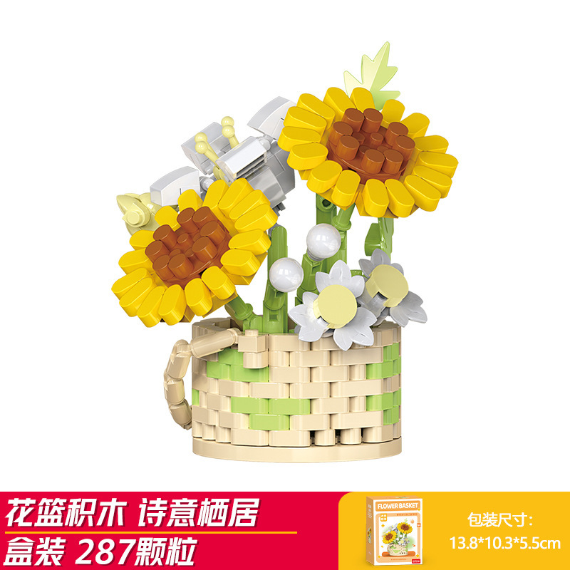 Lele 형제 어린이 퍼즐 빌딩 블록은 레고 소년 장난감과 호환되는 마이크로 입자 모델 해바라기 꽃 바구니를 조립했습니다.스토어 가기