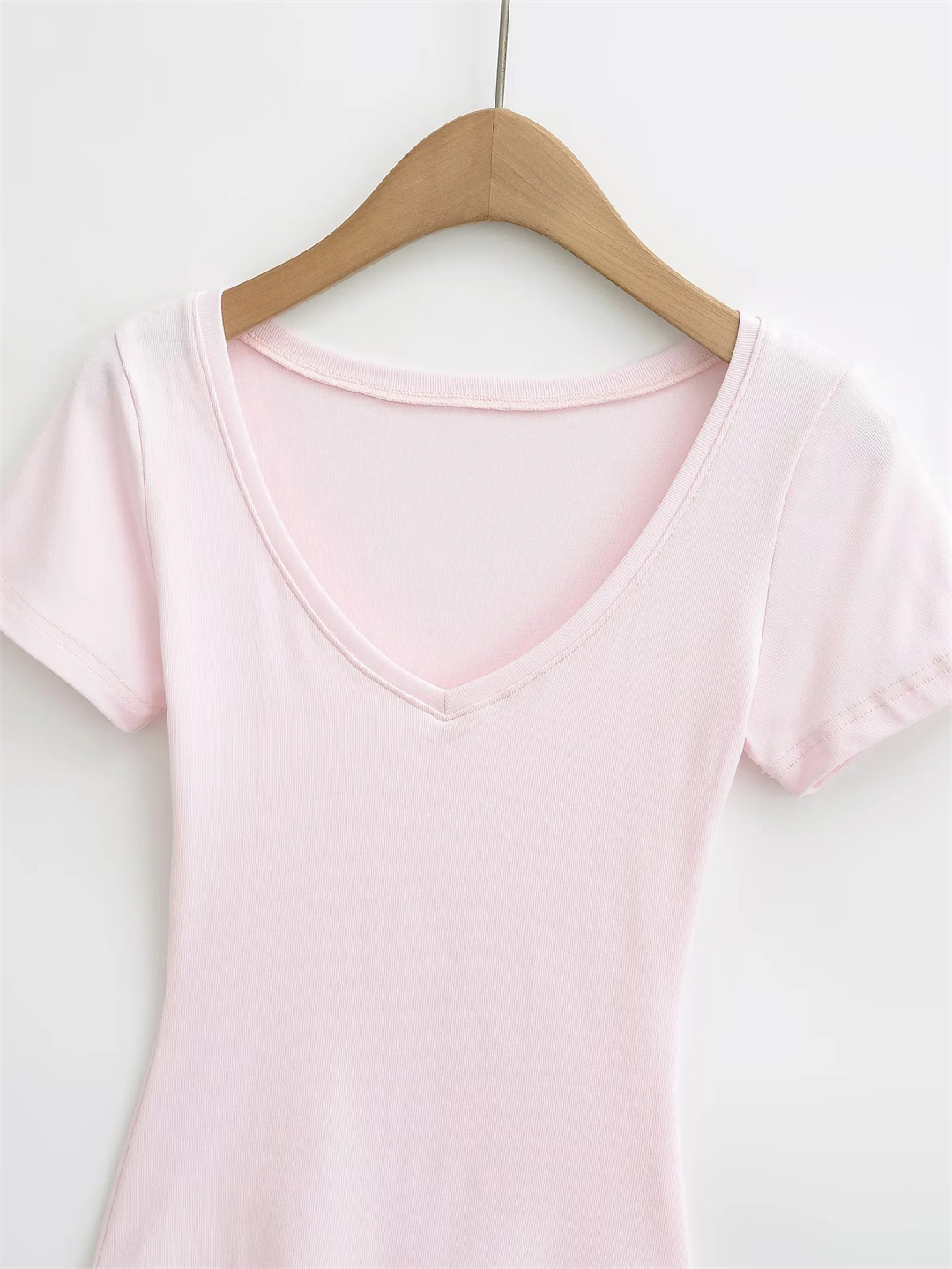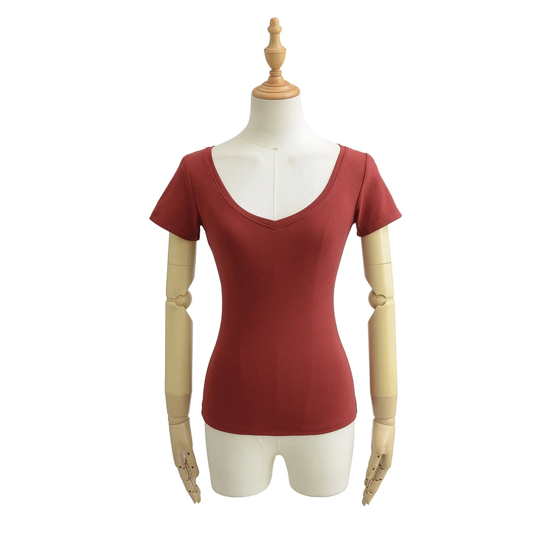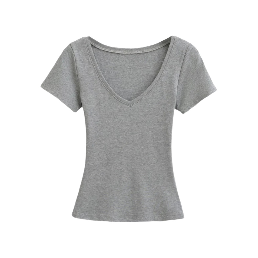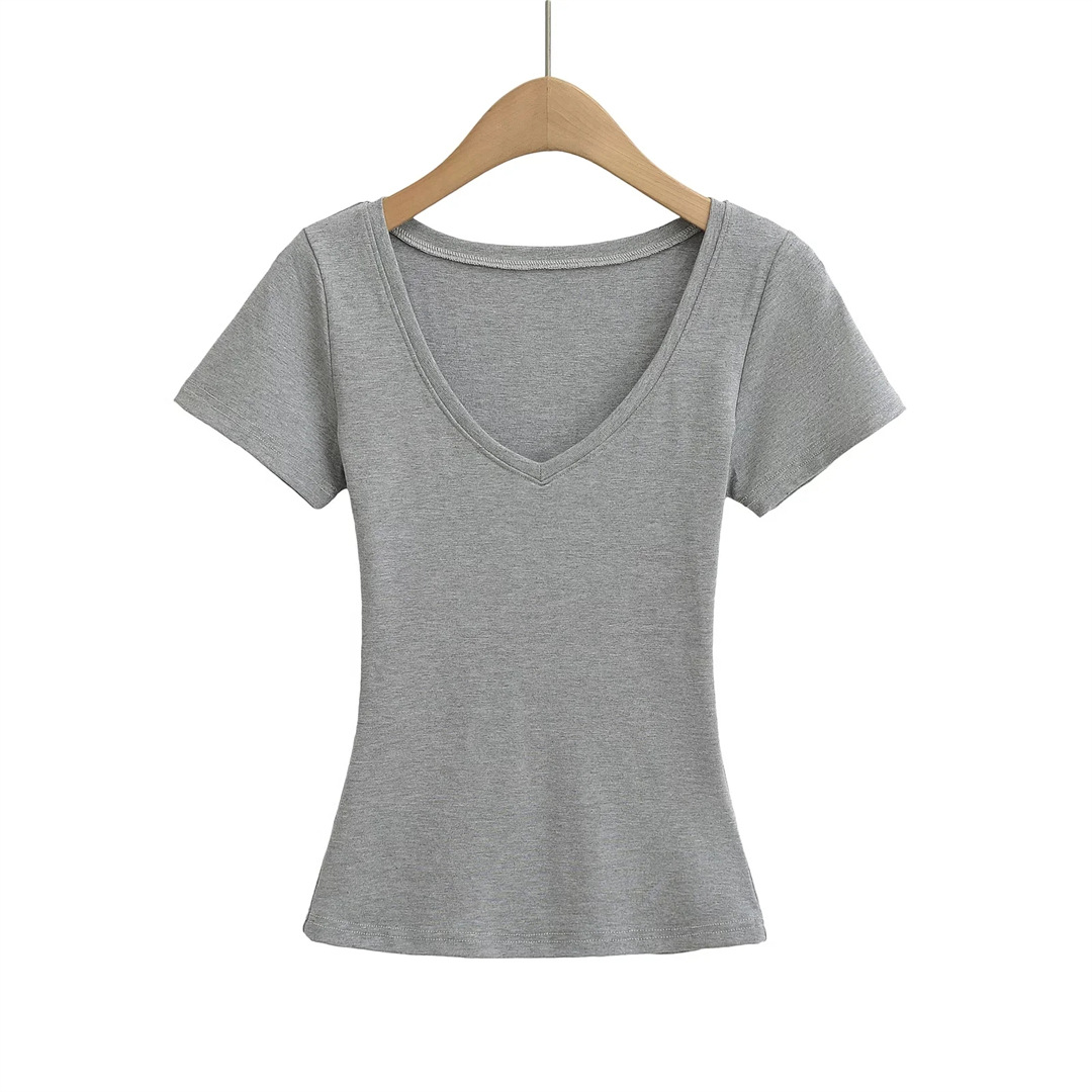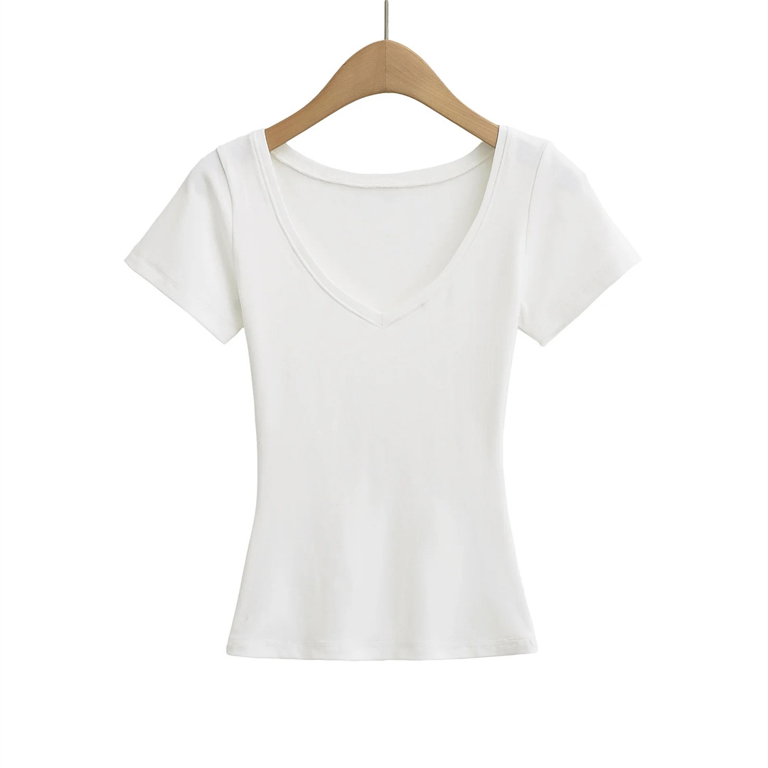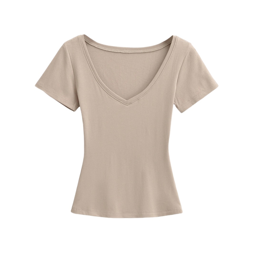 아메리칸 레트로 핫걸 베이직 브이넥 슬림 반팔 티셔츠 여성 여름 퓨어 러스티 스타일 모래시계 허리 섹시 탑