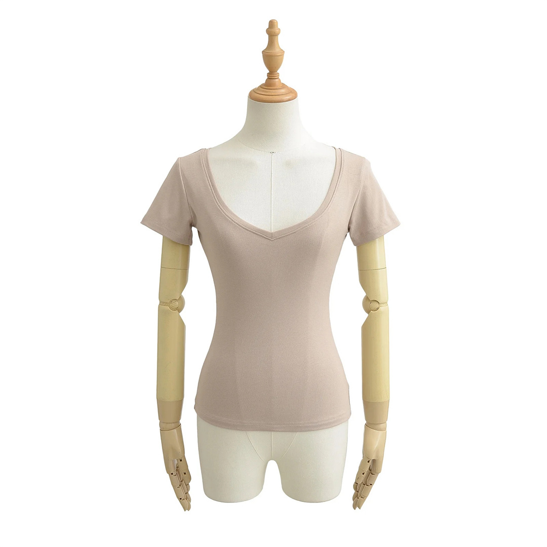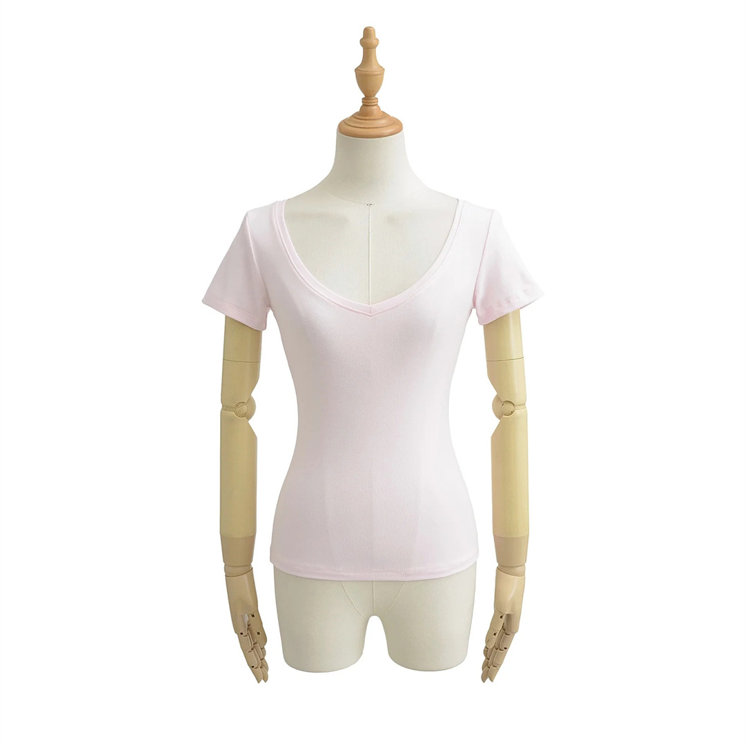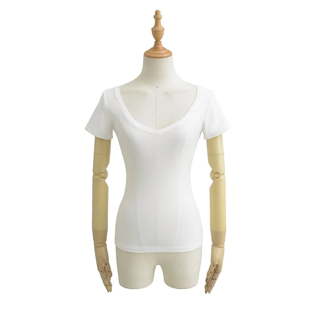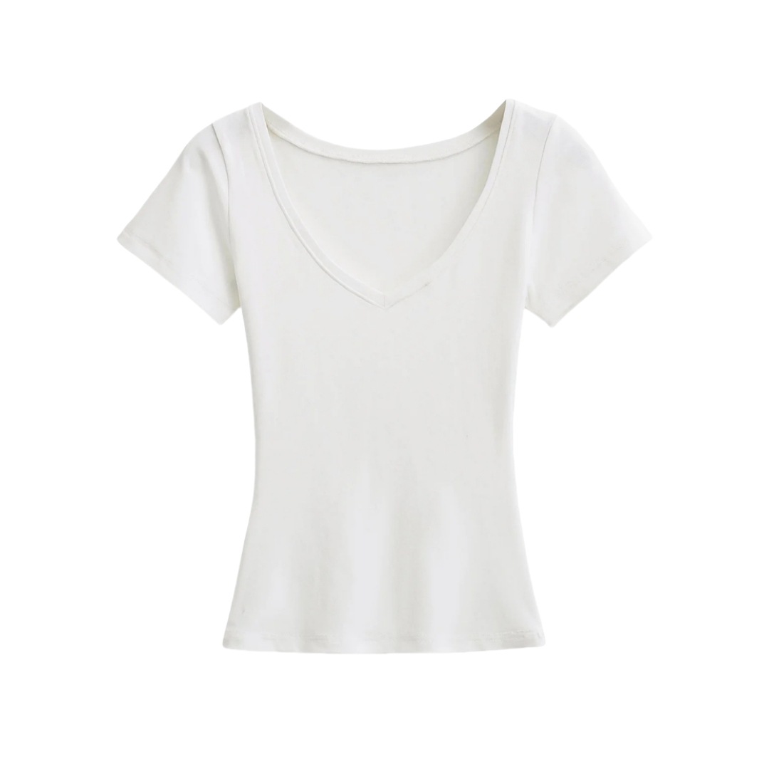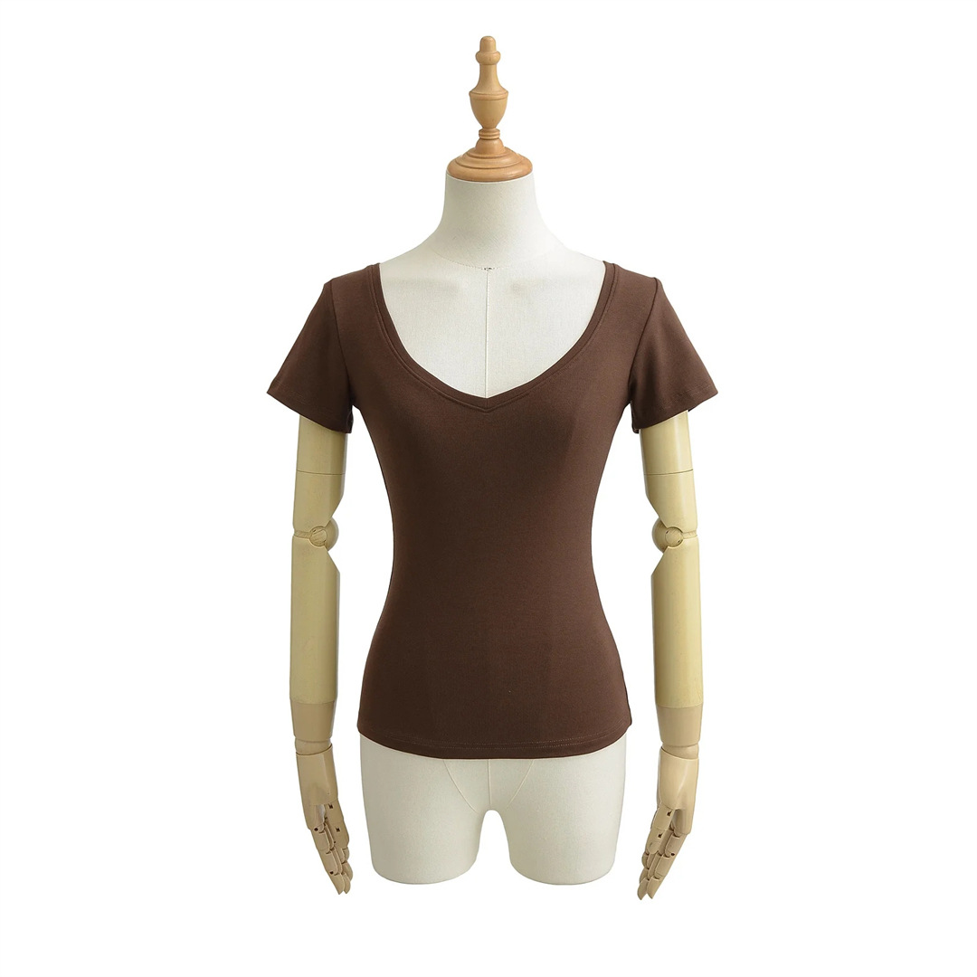 아메리칸 레트로 핫걸 베이직 브이넥 슬림 반팔 티셔츠 여성 여름 퓨어 러스티 스타일 모래시계 허리 섹시 탑
