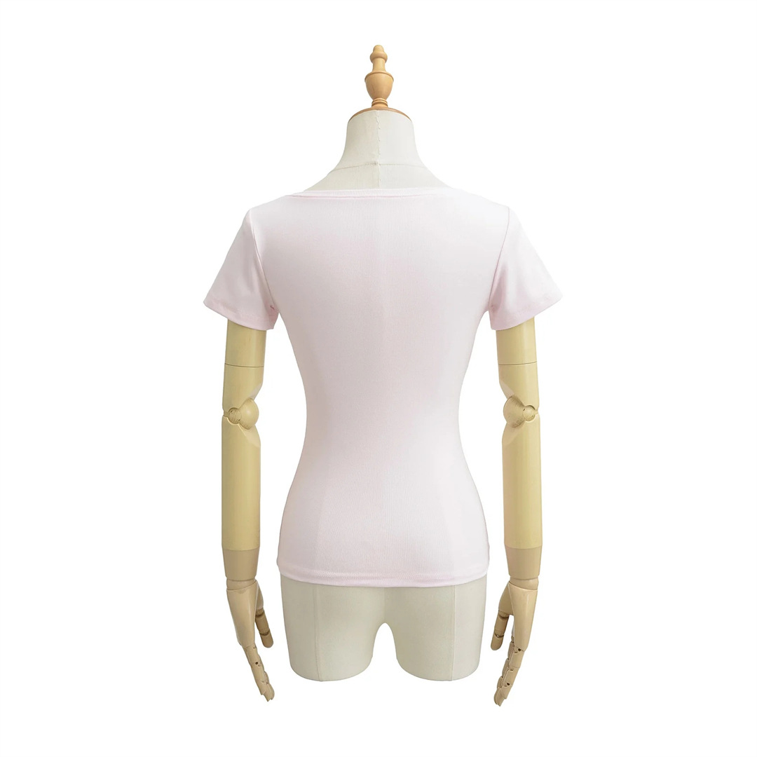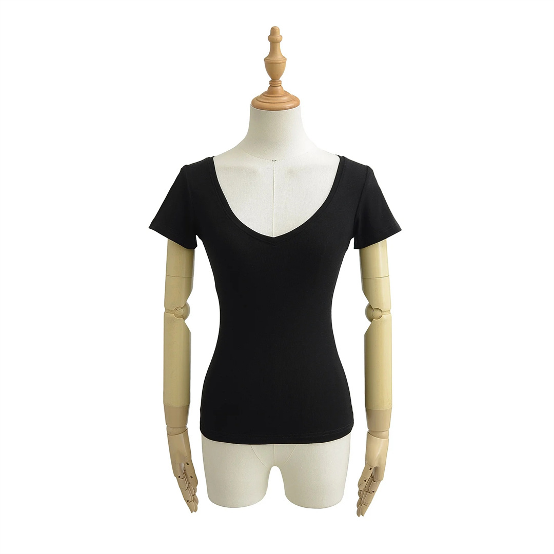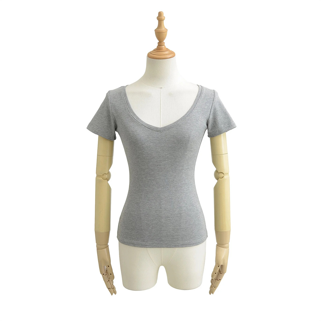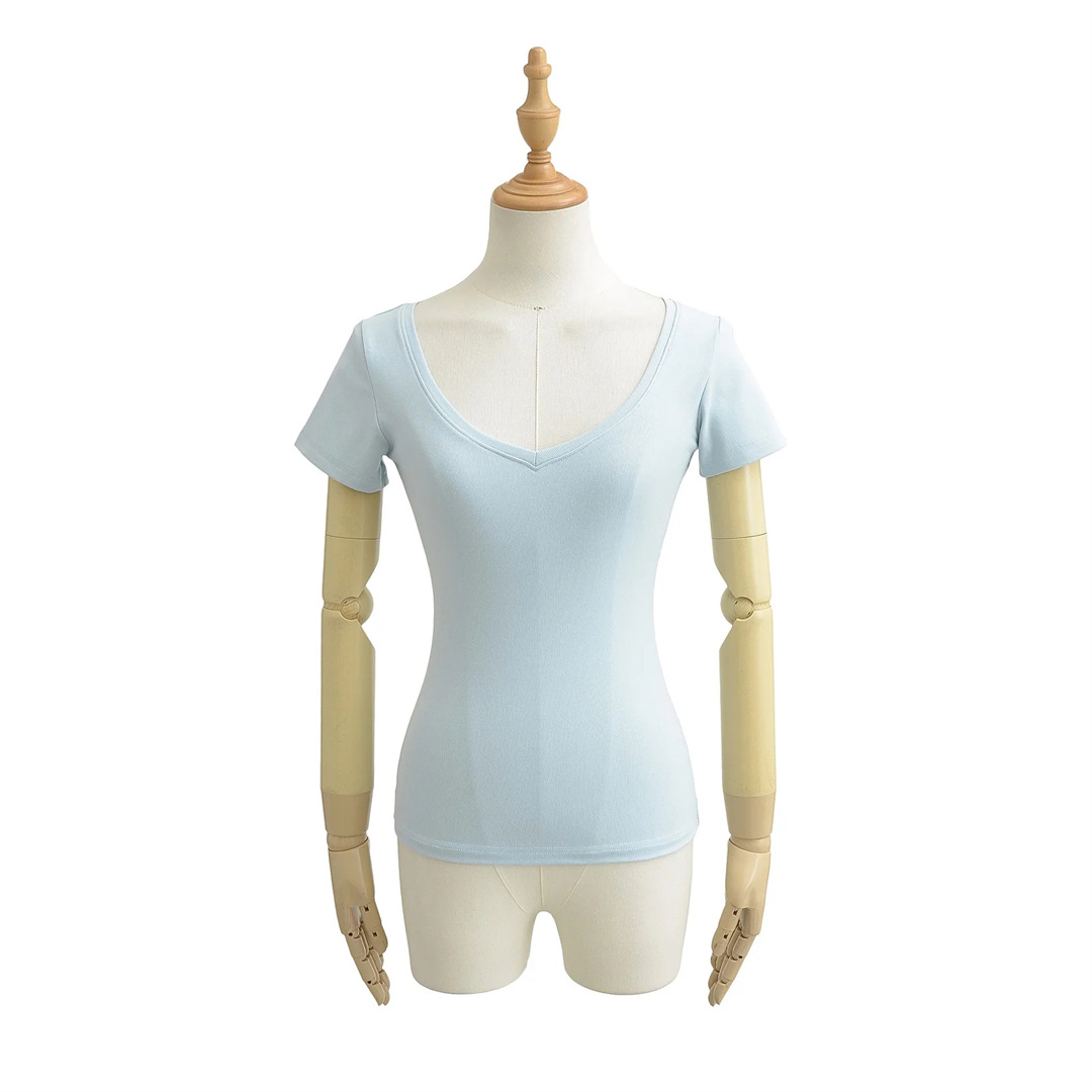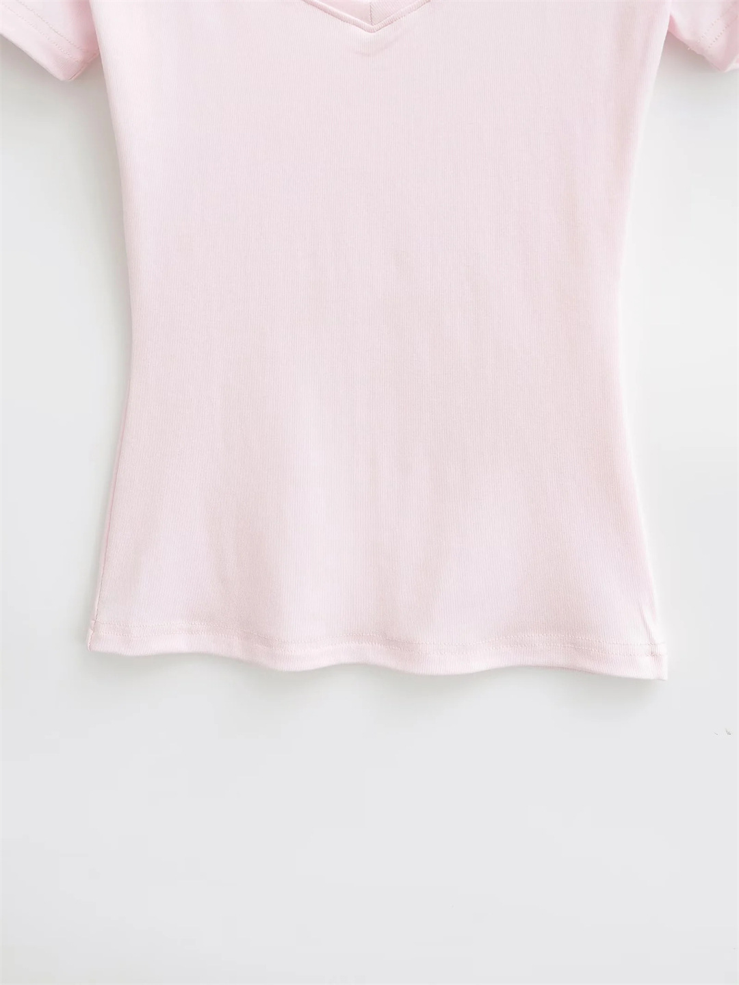 아메리칸 레트로 핫걸 베이직 브이넥 슬림 반팔 티셔츠 여성 여름 퓨어 러스티 스타일 모래시계 허리 섹시 탑