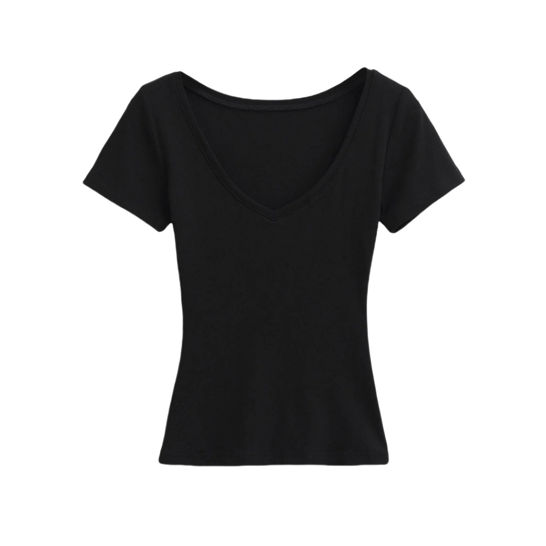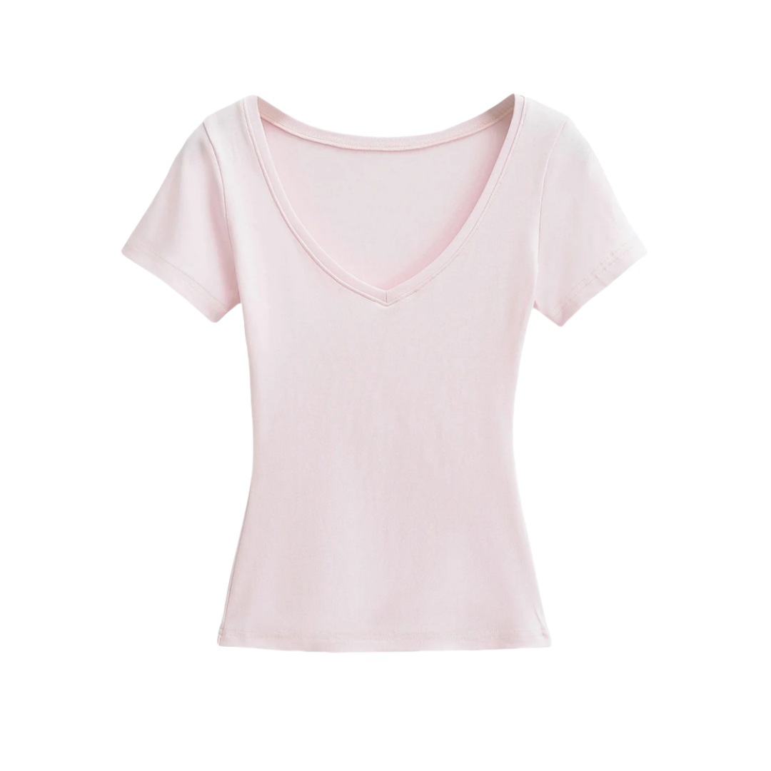아메리칸 레트로 핫걸 베이직 브이넥 슬림 반팔 티셔츠 여성 여름 퓨어 러스티 스타일 모래시계 허리 섹시 탑스토어 가기