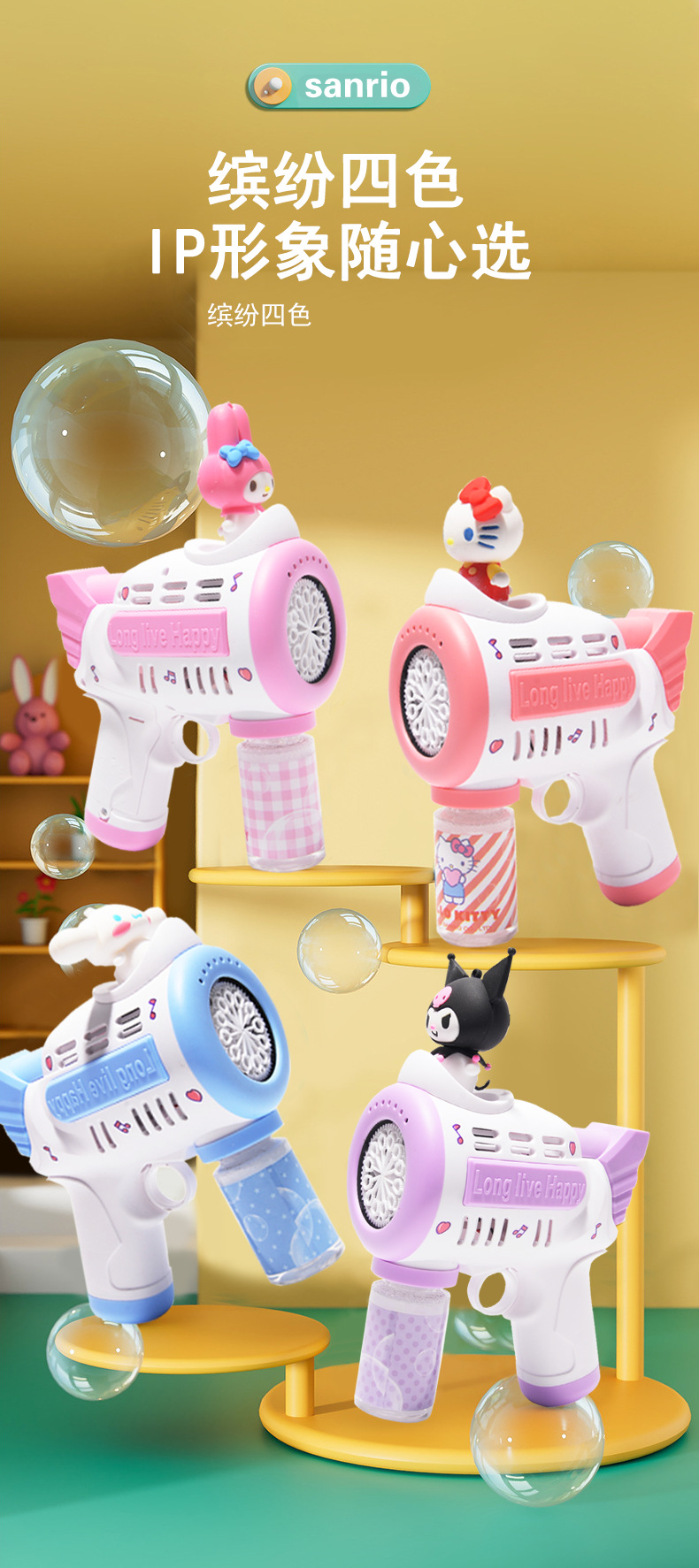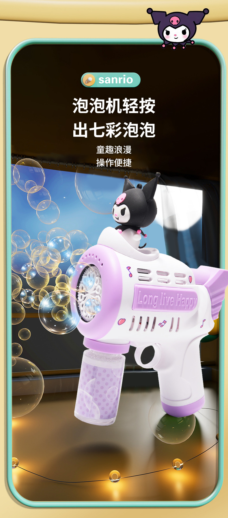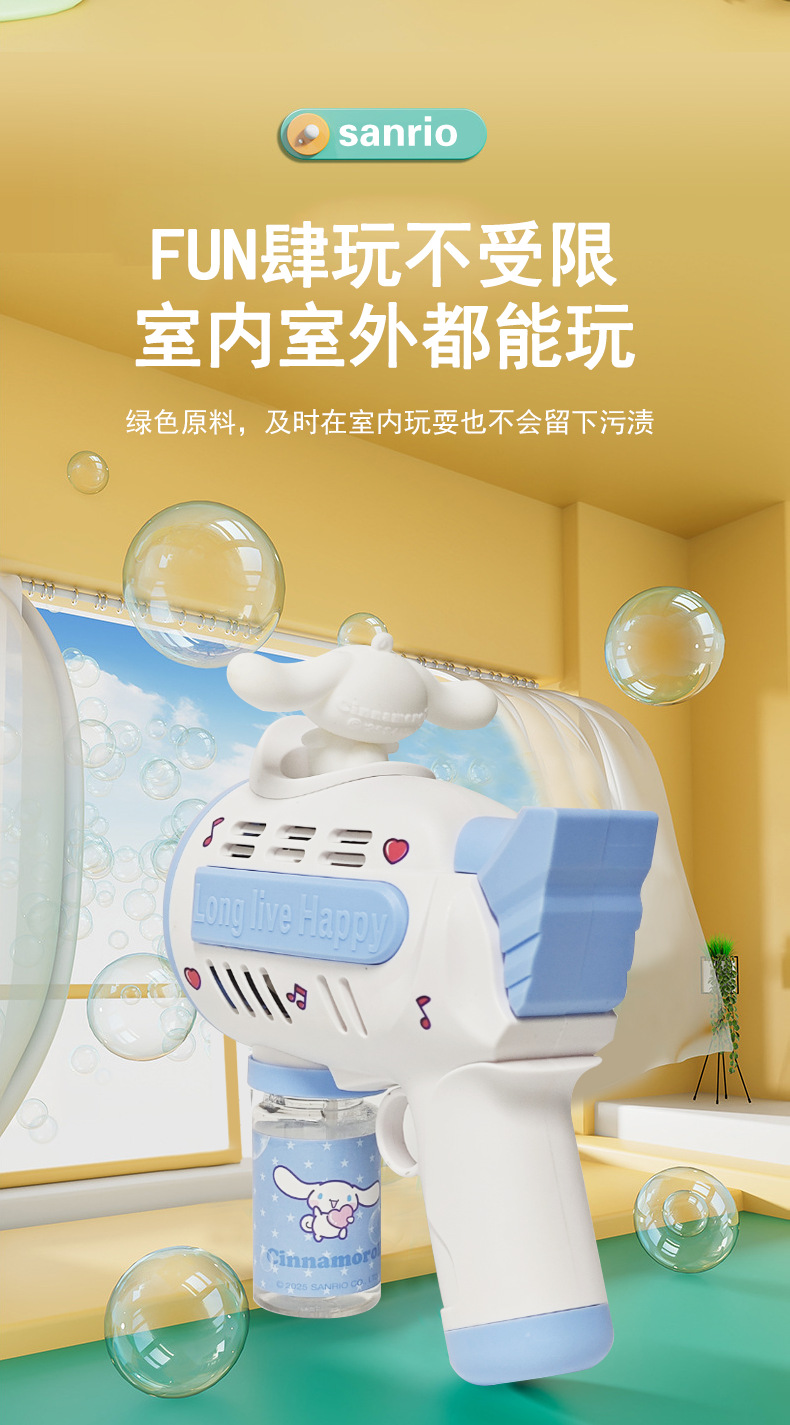 새로운 개틀링 완전 자동 전기 버블 머신 샘 소녀 산리오 쿨로 미 휴대용 버블 건 장난감스토어 가기