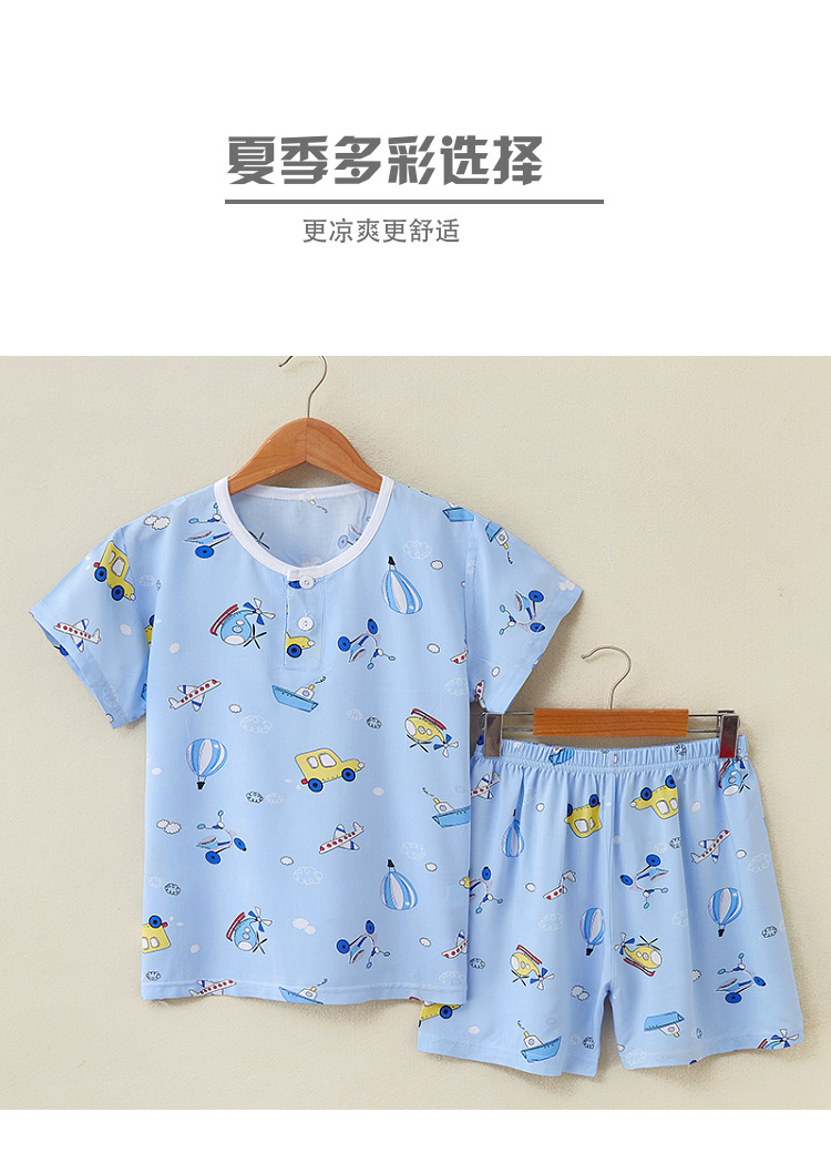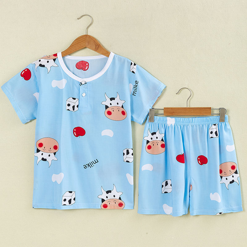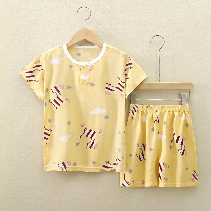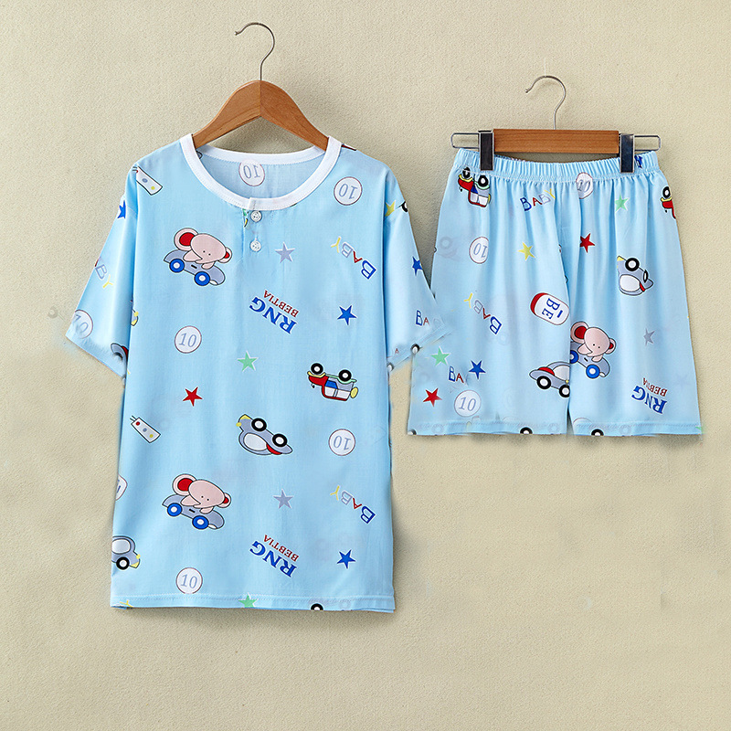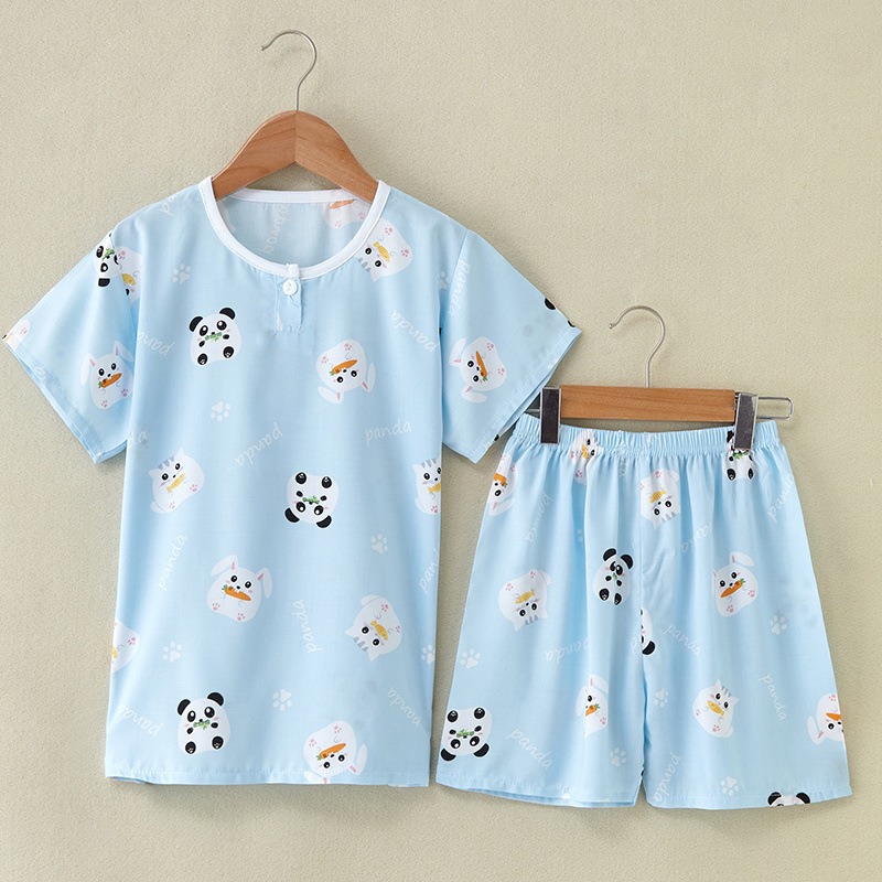 여름 어린이 면화 실크 반팔 반바지 정장 잠옷 소년과 소녀 어린이 아기 반팔 가정 의류 에어컨 의류