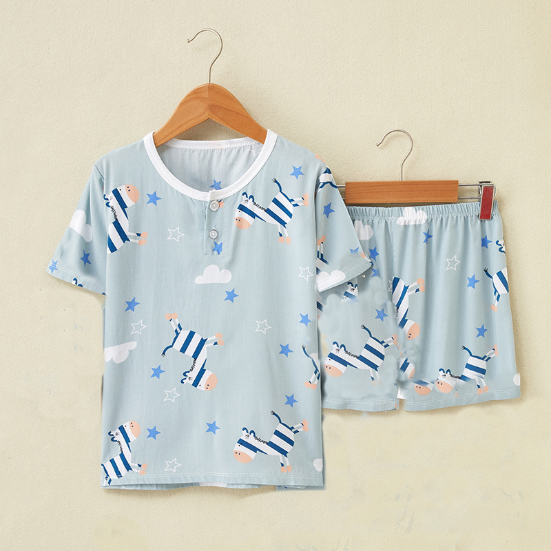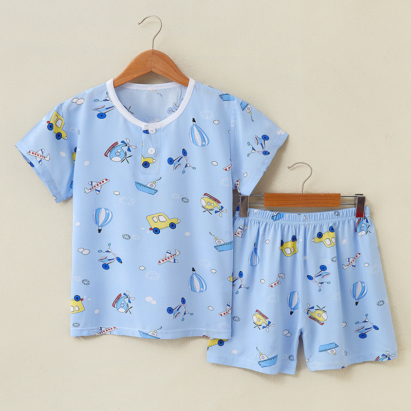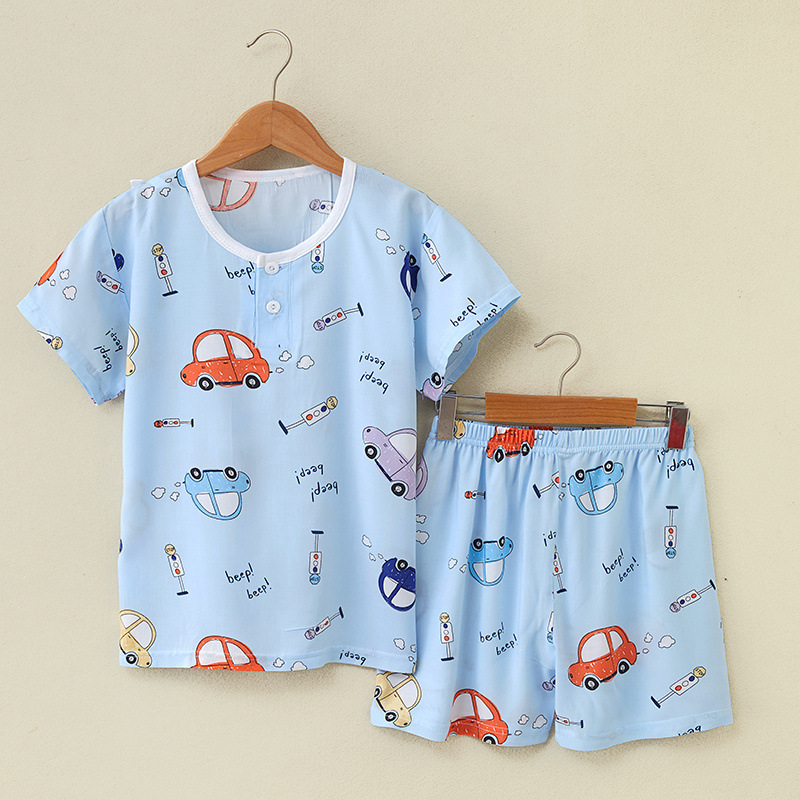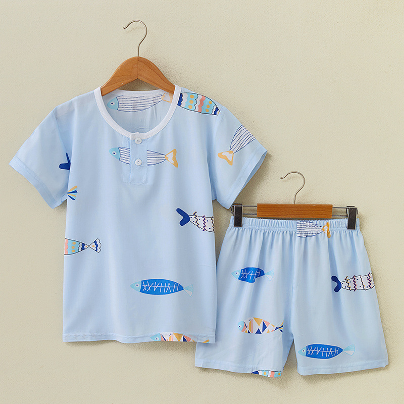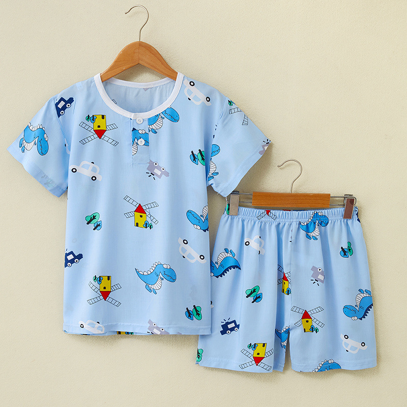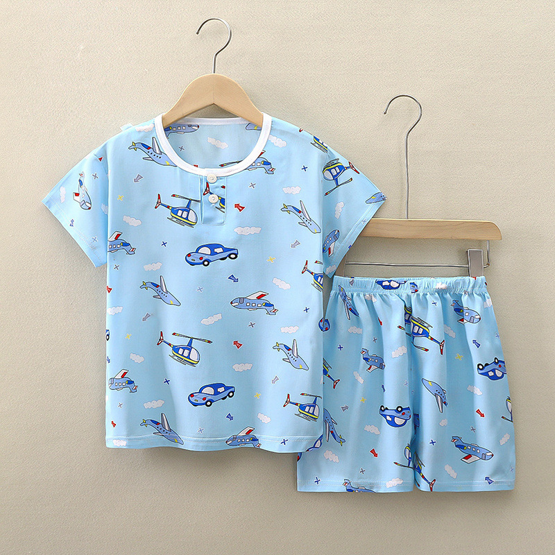 여름 어린이 면화 실크 반팔 반바지 정장 잠옷 소년과 소녀 어린이 아기 반팔 가정 의류 에어컨 의류
