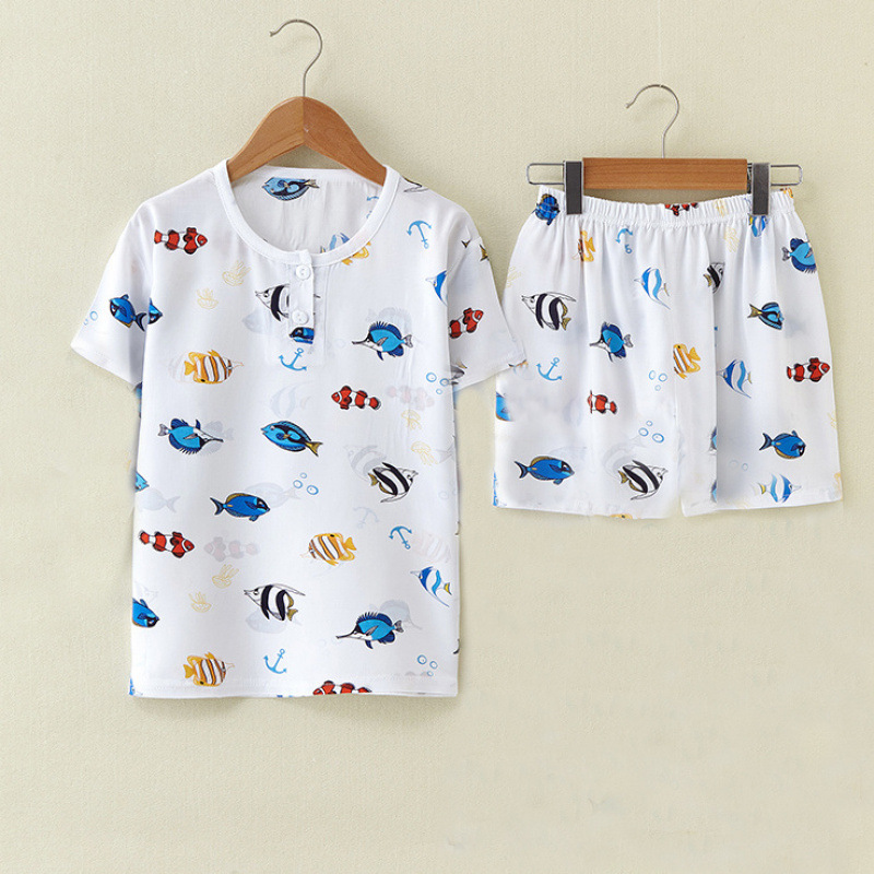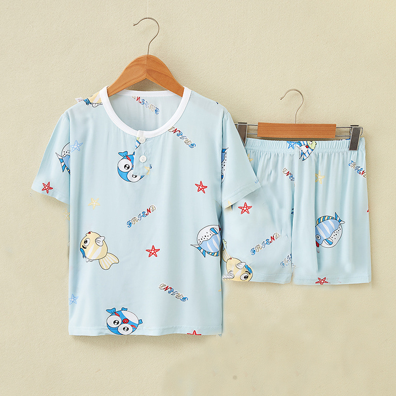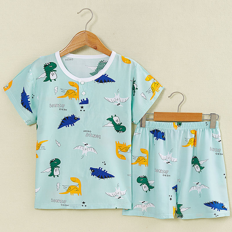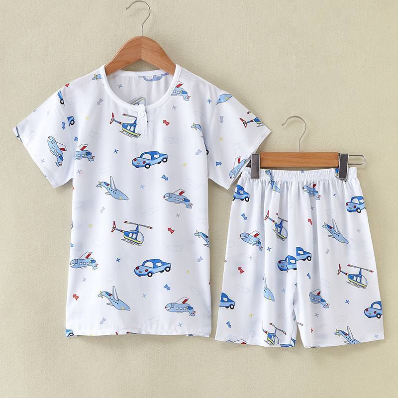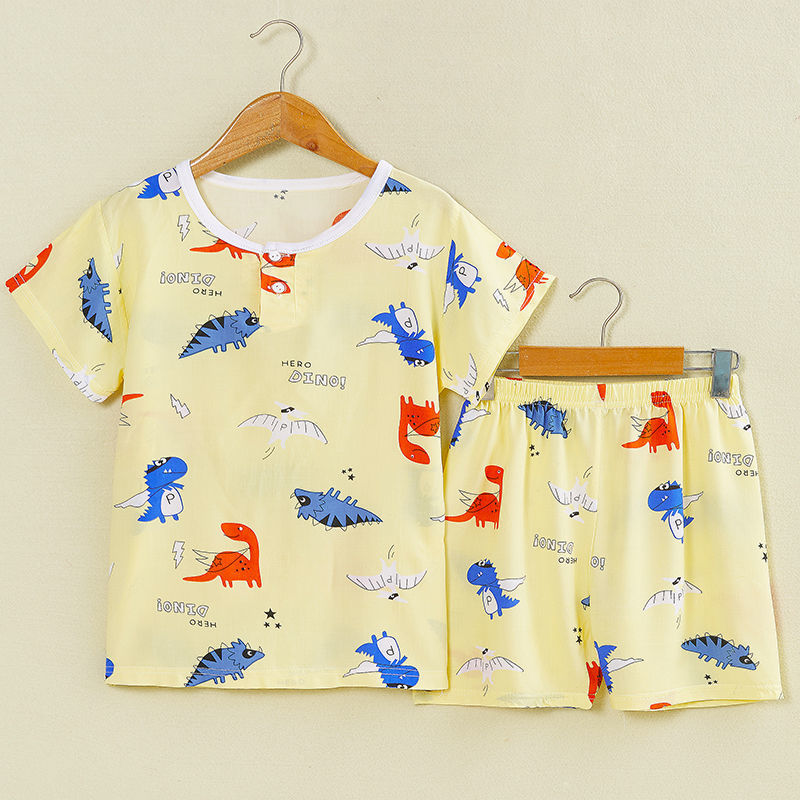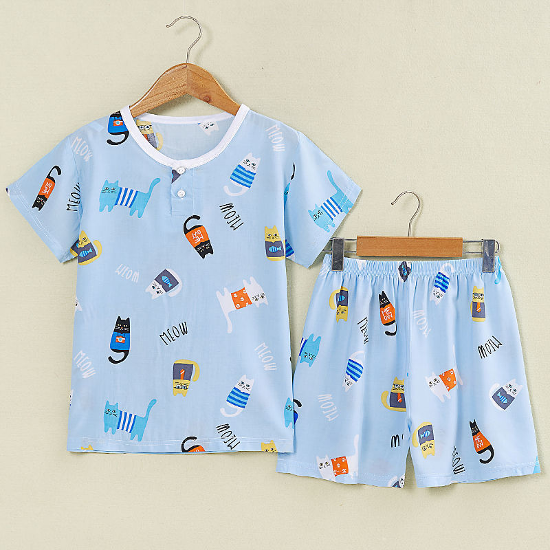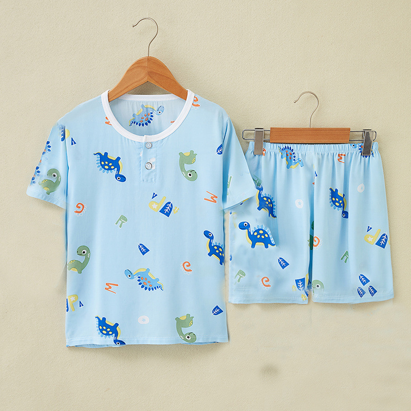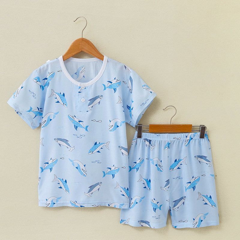 여름 어린이 면화 실크 반팔 반바지 정장 잠옷 소년과 소녀 어린이 아기 반팔 가정 의류 에어컨 의류스토어 가기