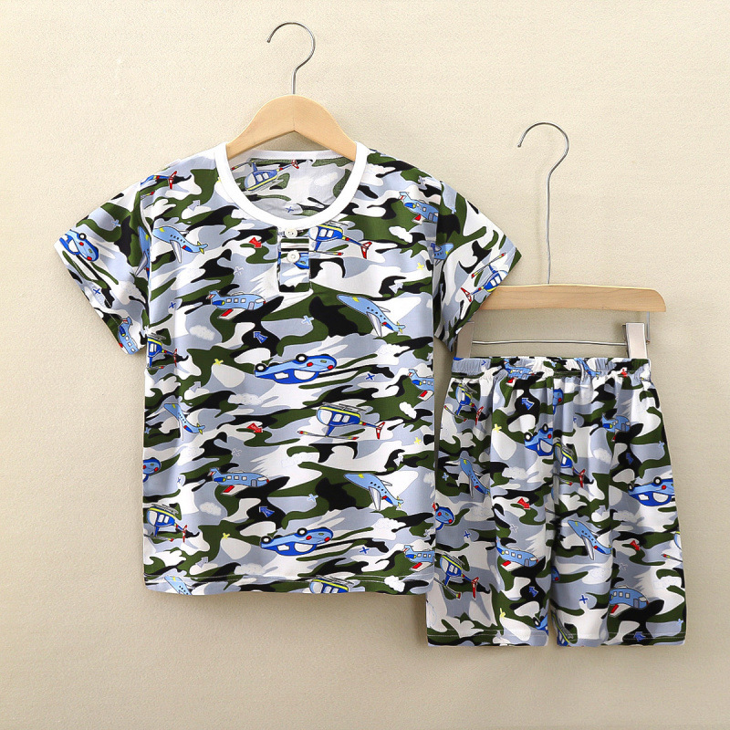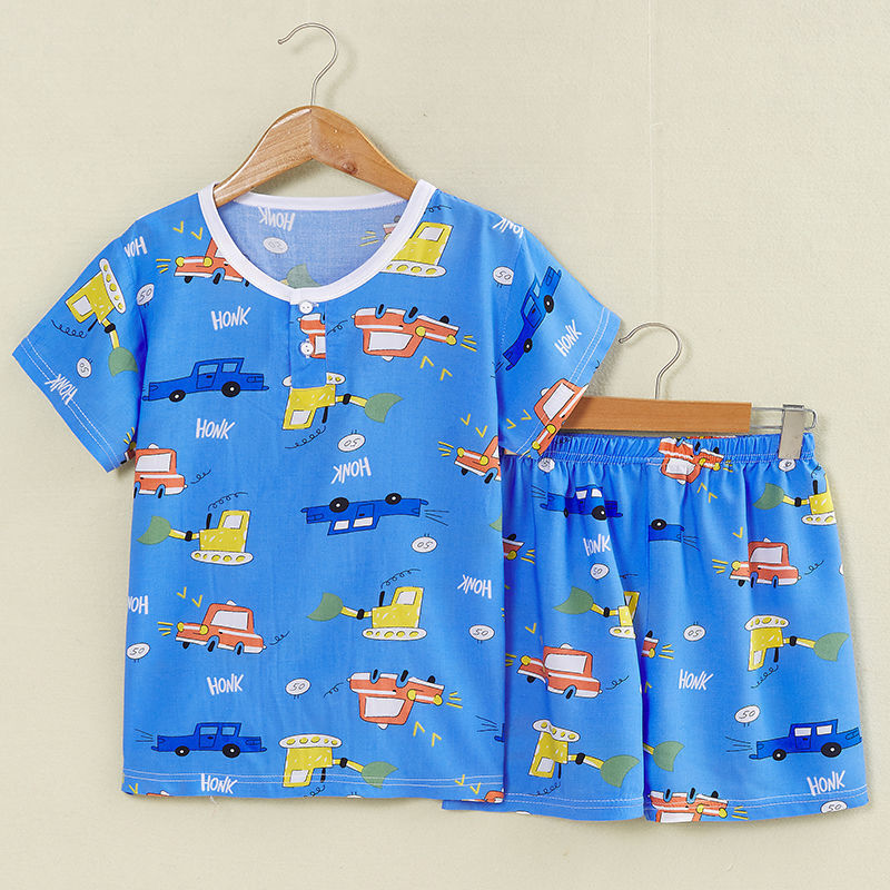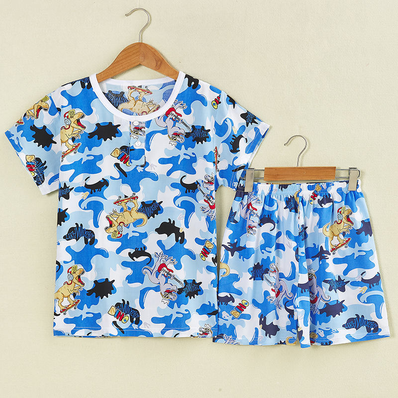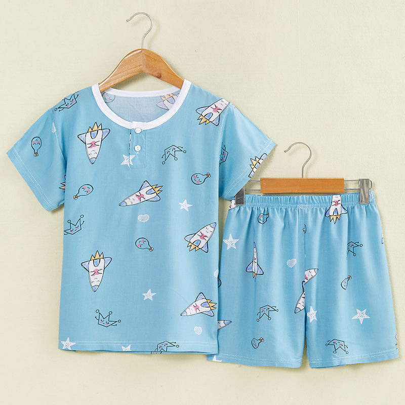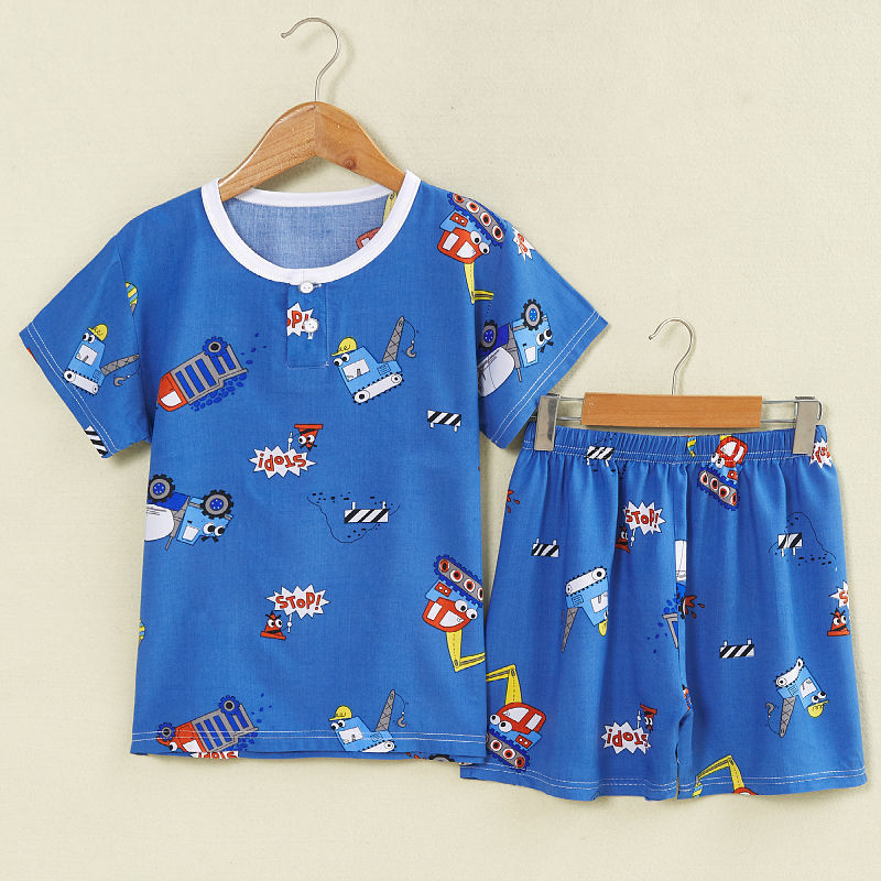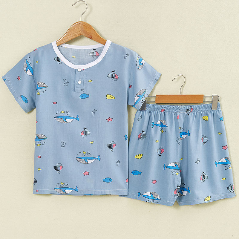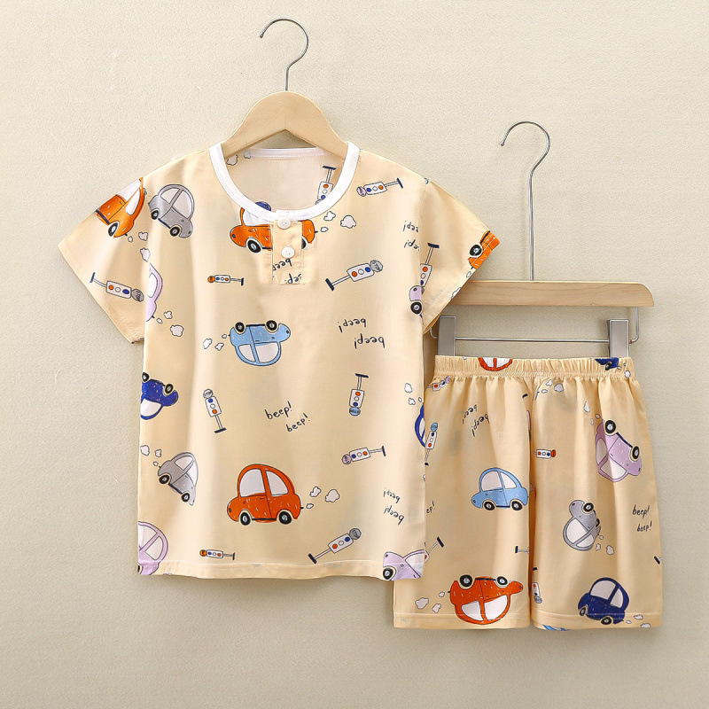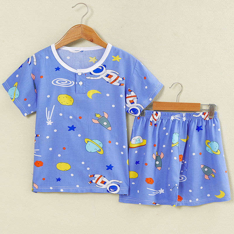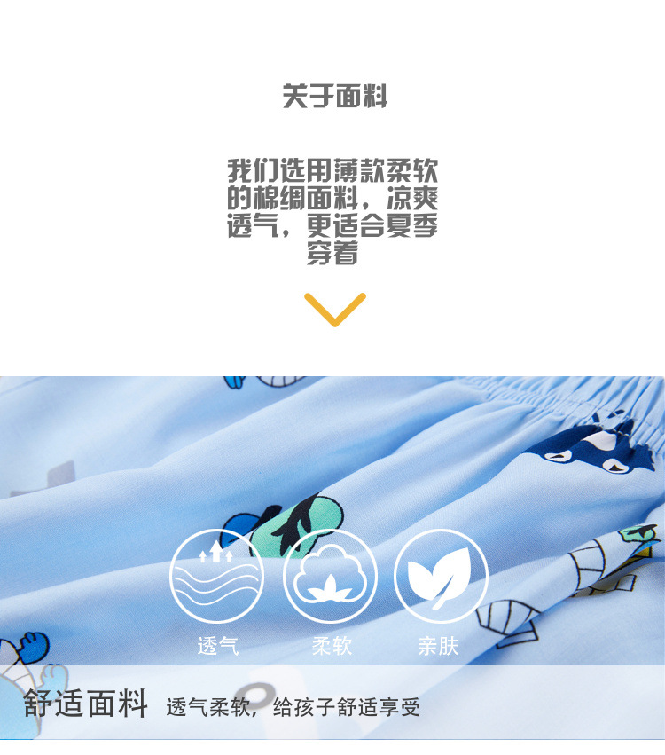여름 어린이 면화 실크 반팔 반바지 정장 잠옷 소년과 소녀 어린이 아기 반팔 가정 의류 에어컨 의류스토어 가기