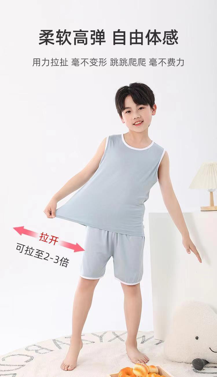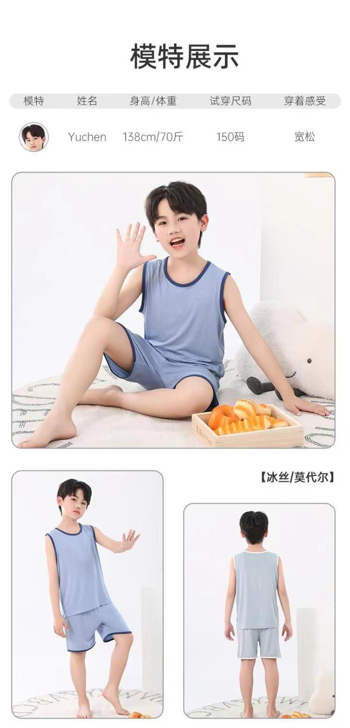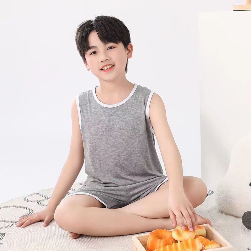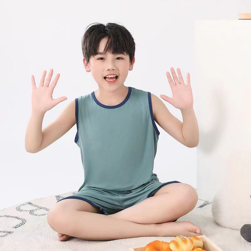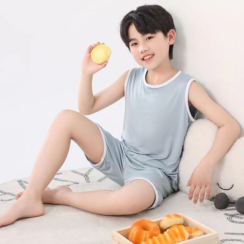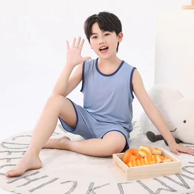 어린이 모달 조끼 세트 큰 어린이 가정 옷 파자마 소년 얇은 아이스 실크 여름 부모-어린이 민소매 소년스토어 가기