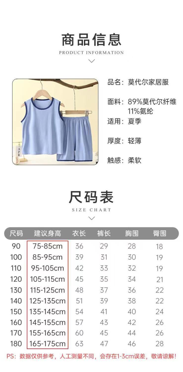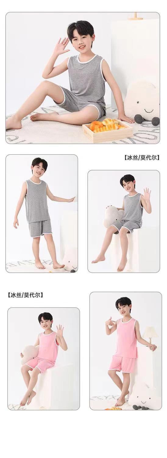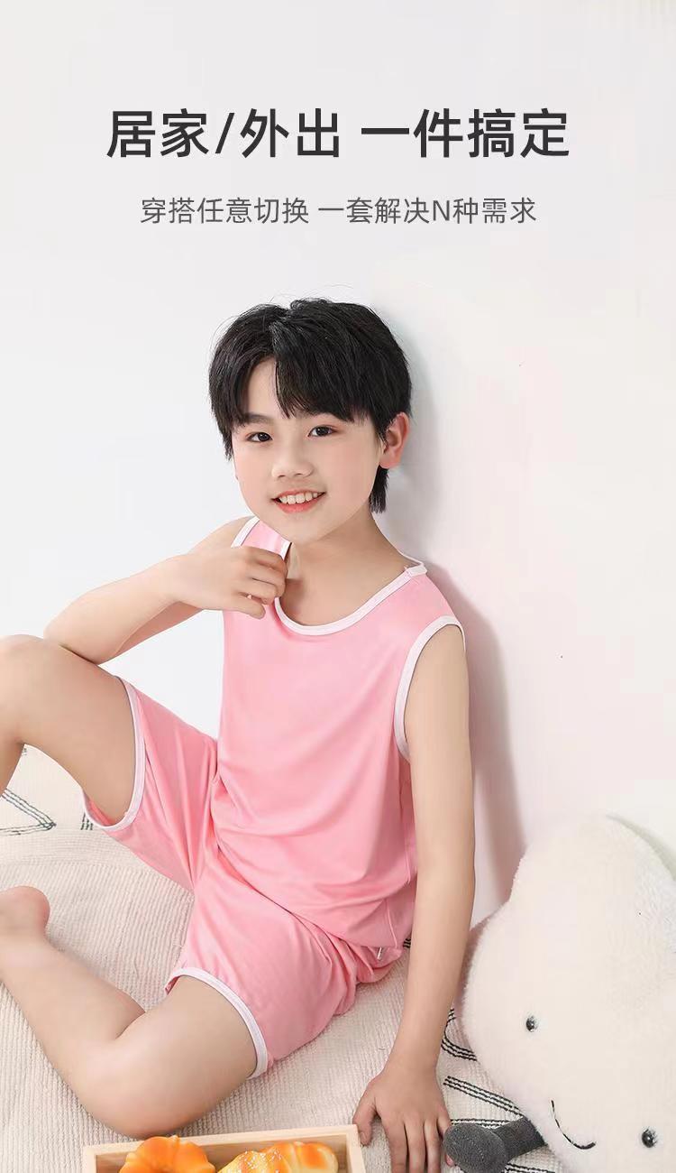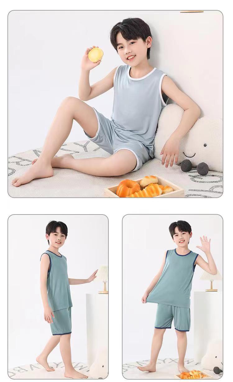 어린이 모달 조끼 세트 큰 어린이 가정 옷 파자마 소년 얇은 아이스 실크 여름 부모-어린이 민소매 소년스토어 가기