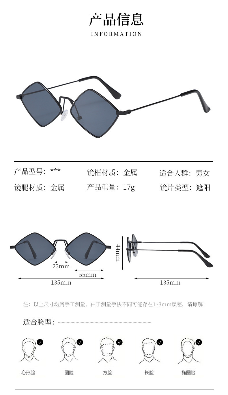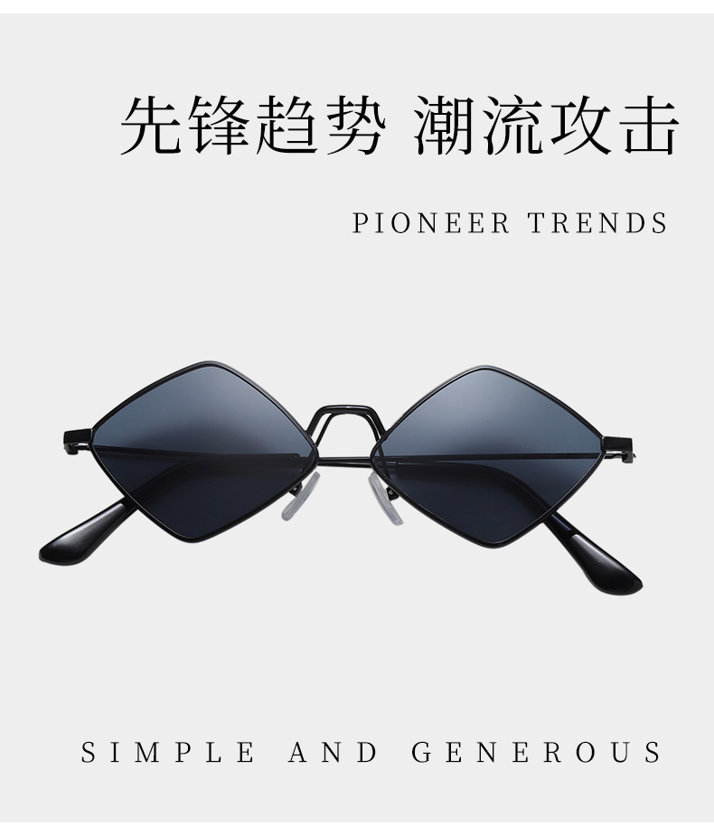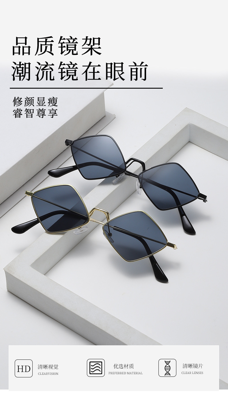 새로운 대외 무역 유럽과 미국의 복고풍 마름모꼴 선글라스 유행 금속 선글라스 불규칙한 선글라스 도매 직접 판매스토어 가기