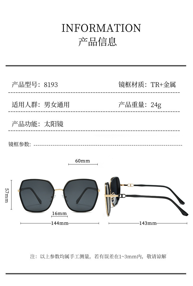 패셔너블한 대형 프레임 편광 선글라스, 고화질 자외선 차단, 운전용 선글라스, 여행 및 스트리트 사진 촬영용 차양 안경
