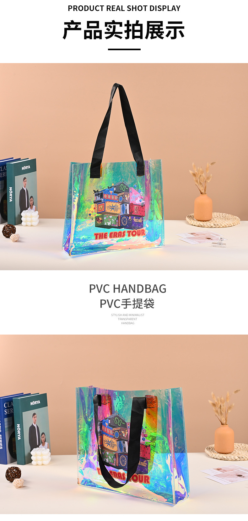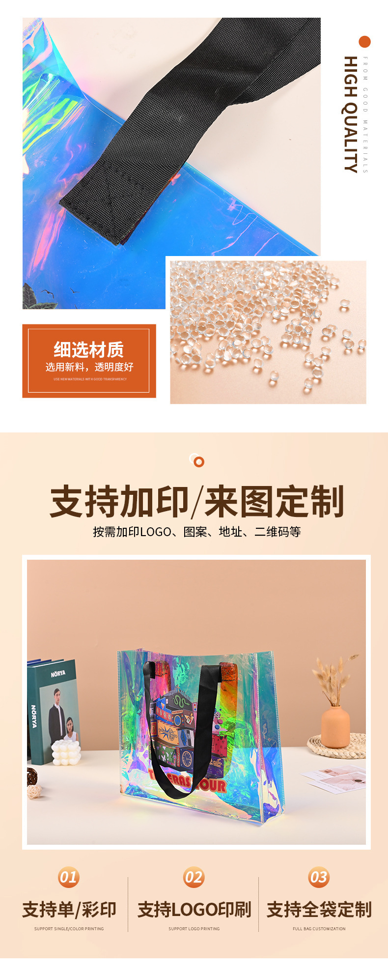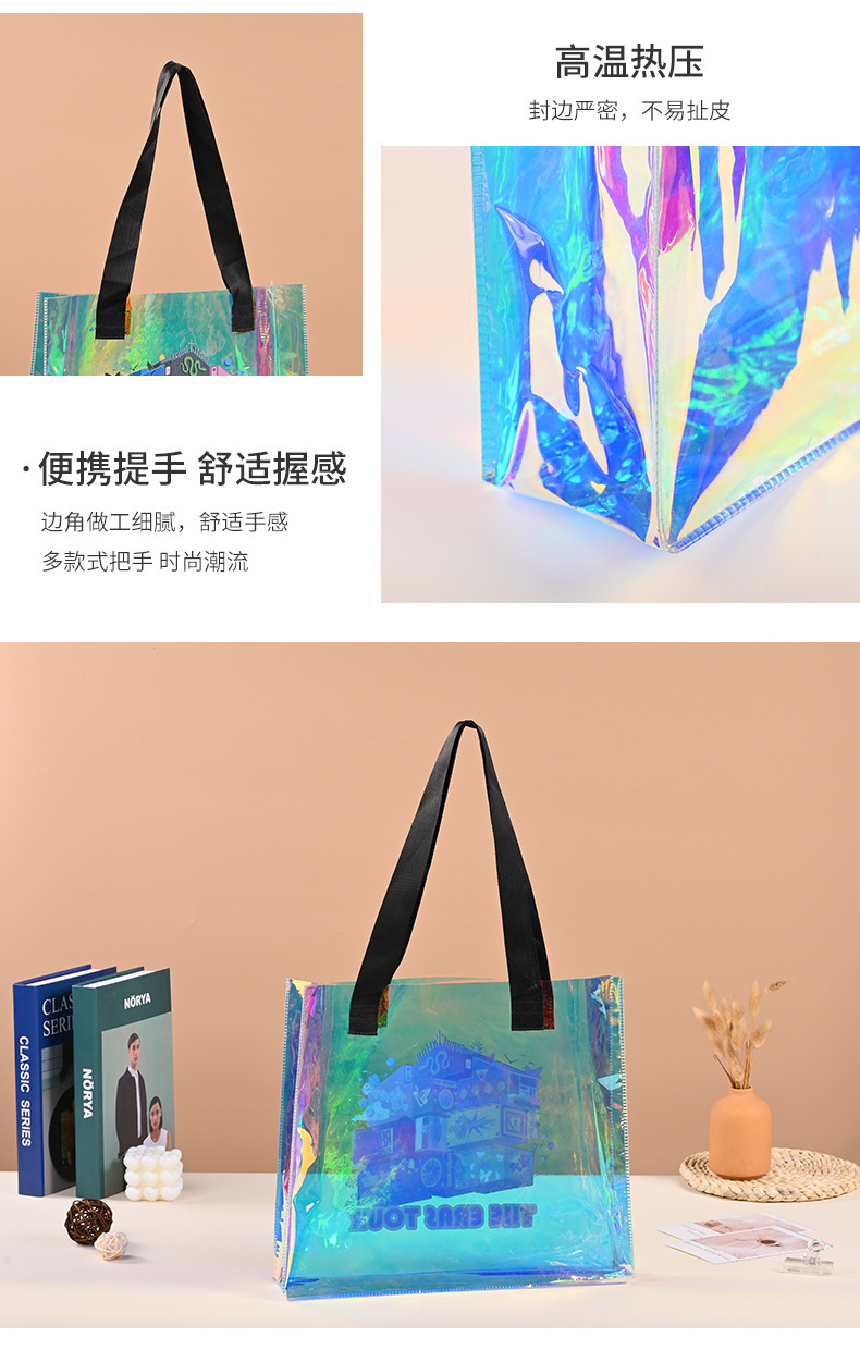 새로운 다채로운 젤리 가방 레이저 가방 레이저 포장 가방 pvc 사용자 정의 투명 쇼핑 가방 손 선물