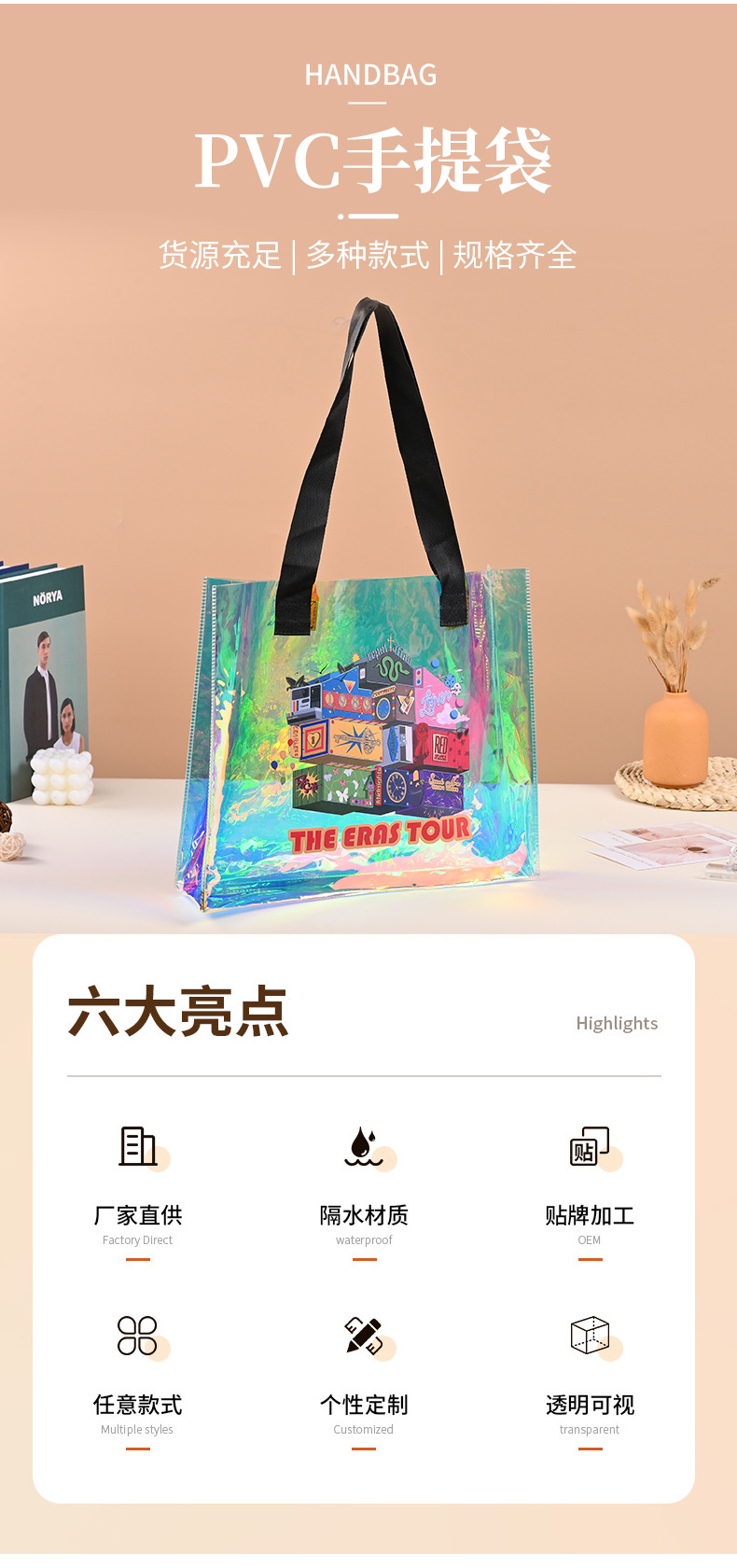새로운 다채로운 젤리 가방 레이저 가방 레이저 포장 가방 pvc 사용자 정의 투명 쇼핑 가방 손 선물스토어 가기