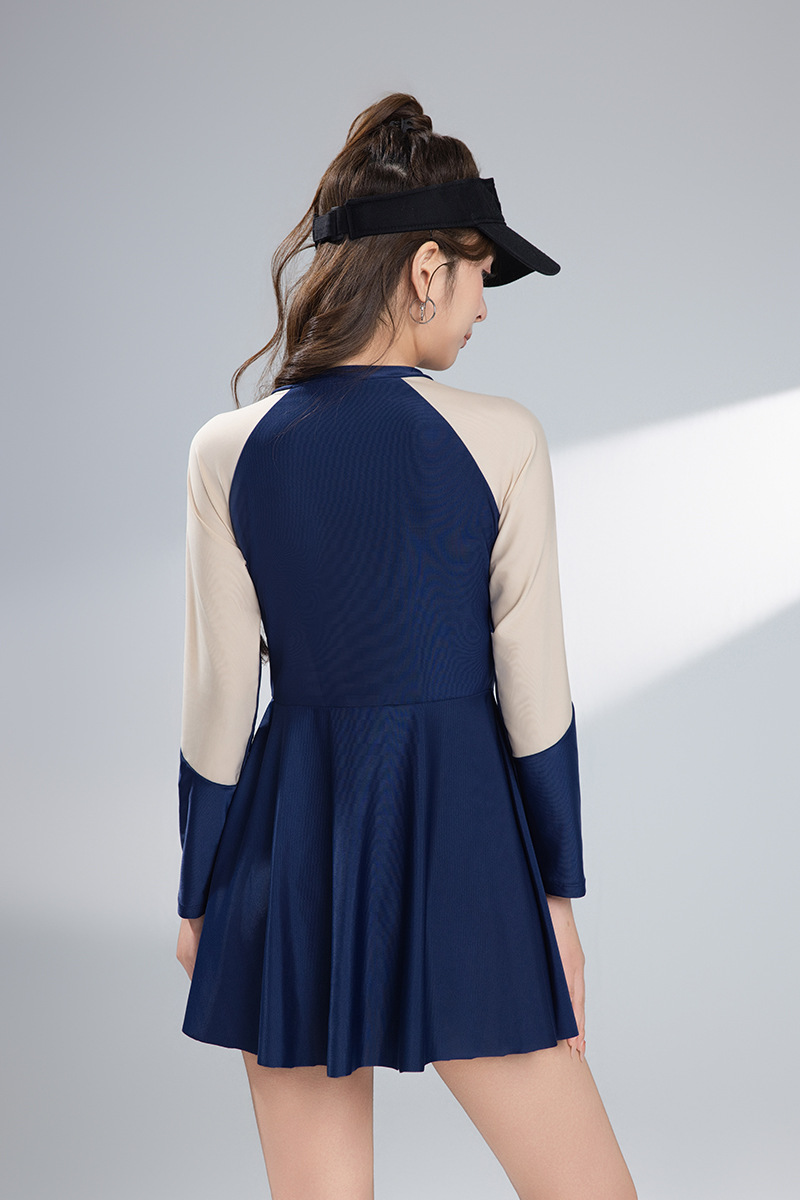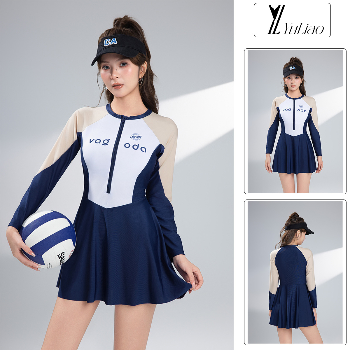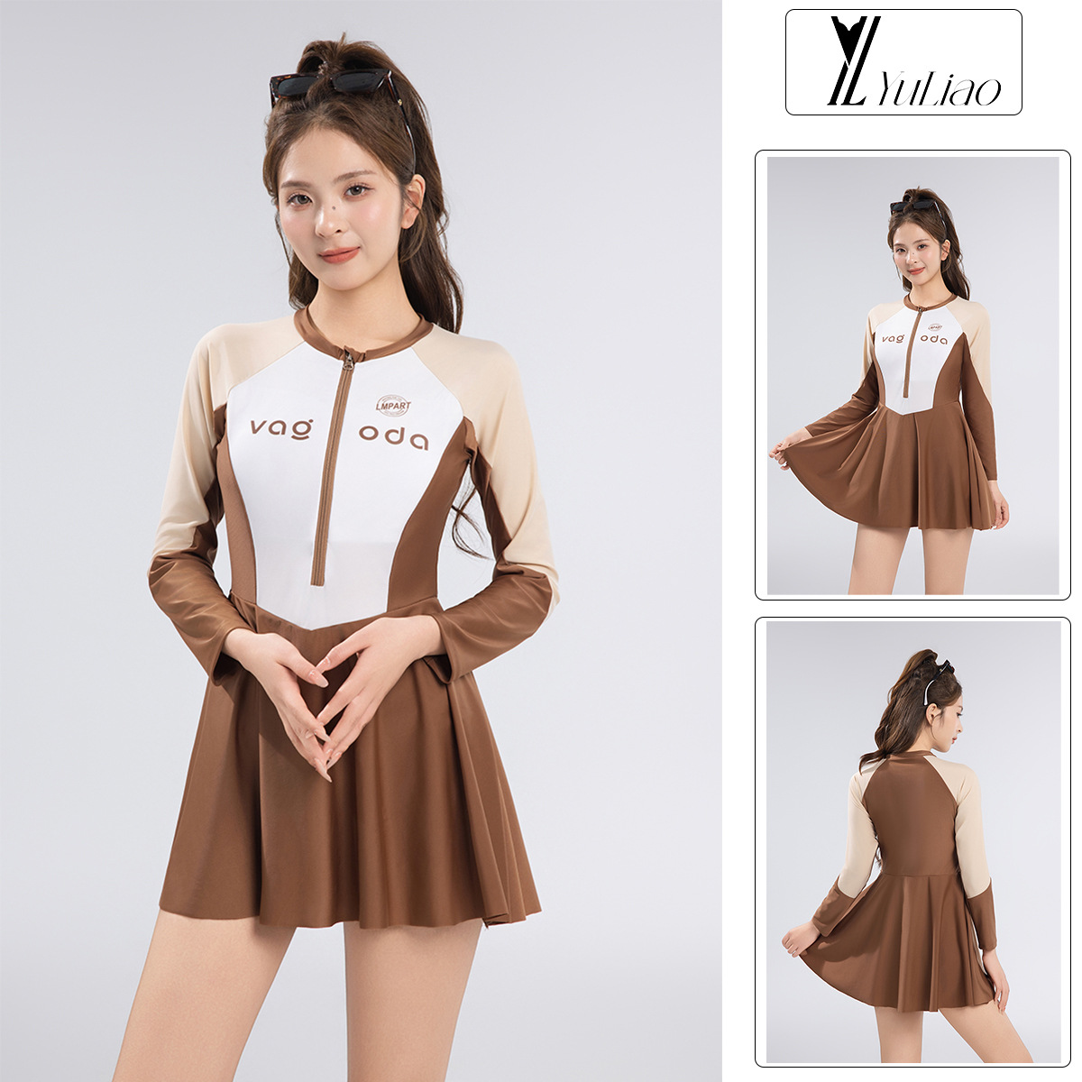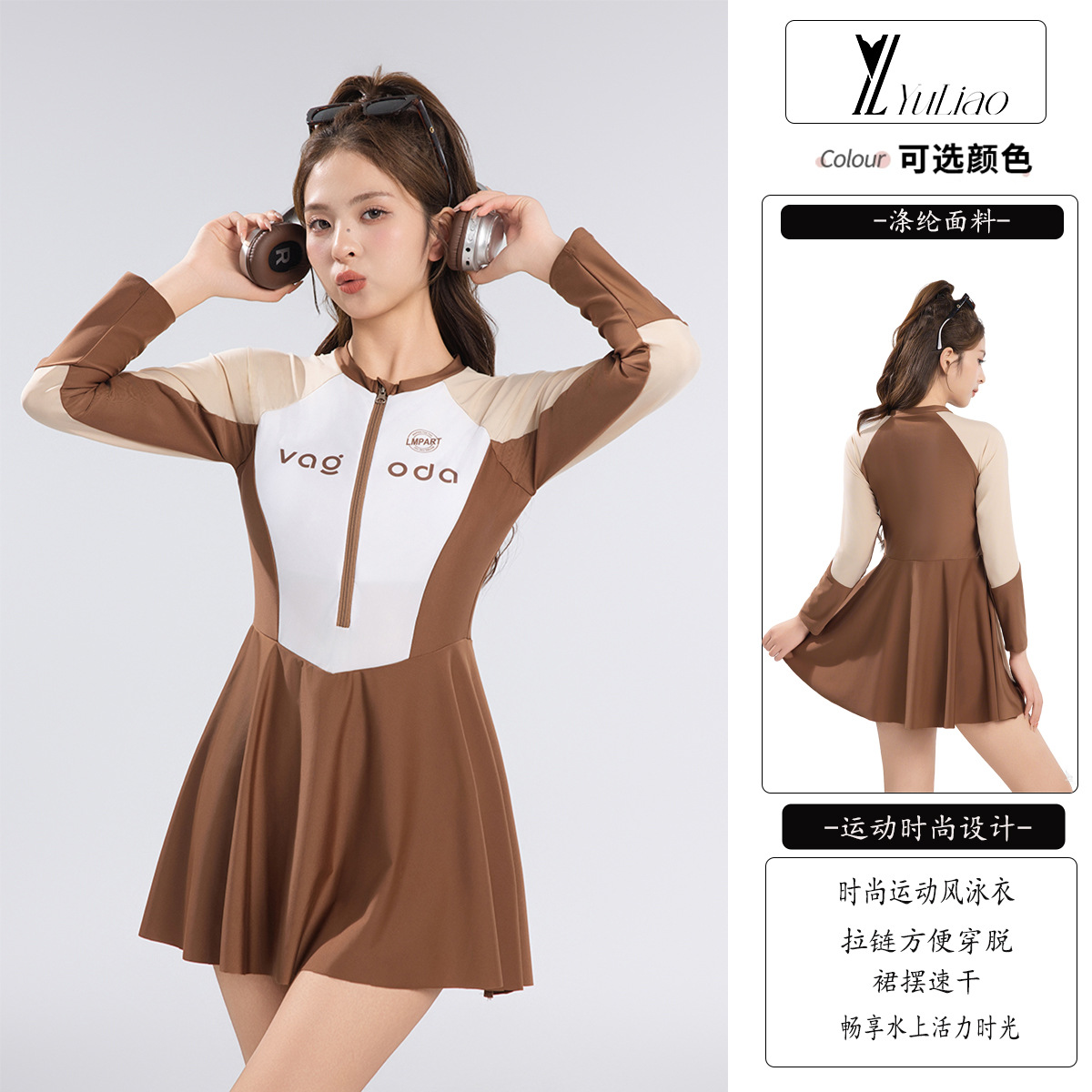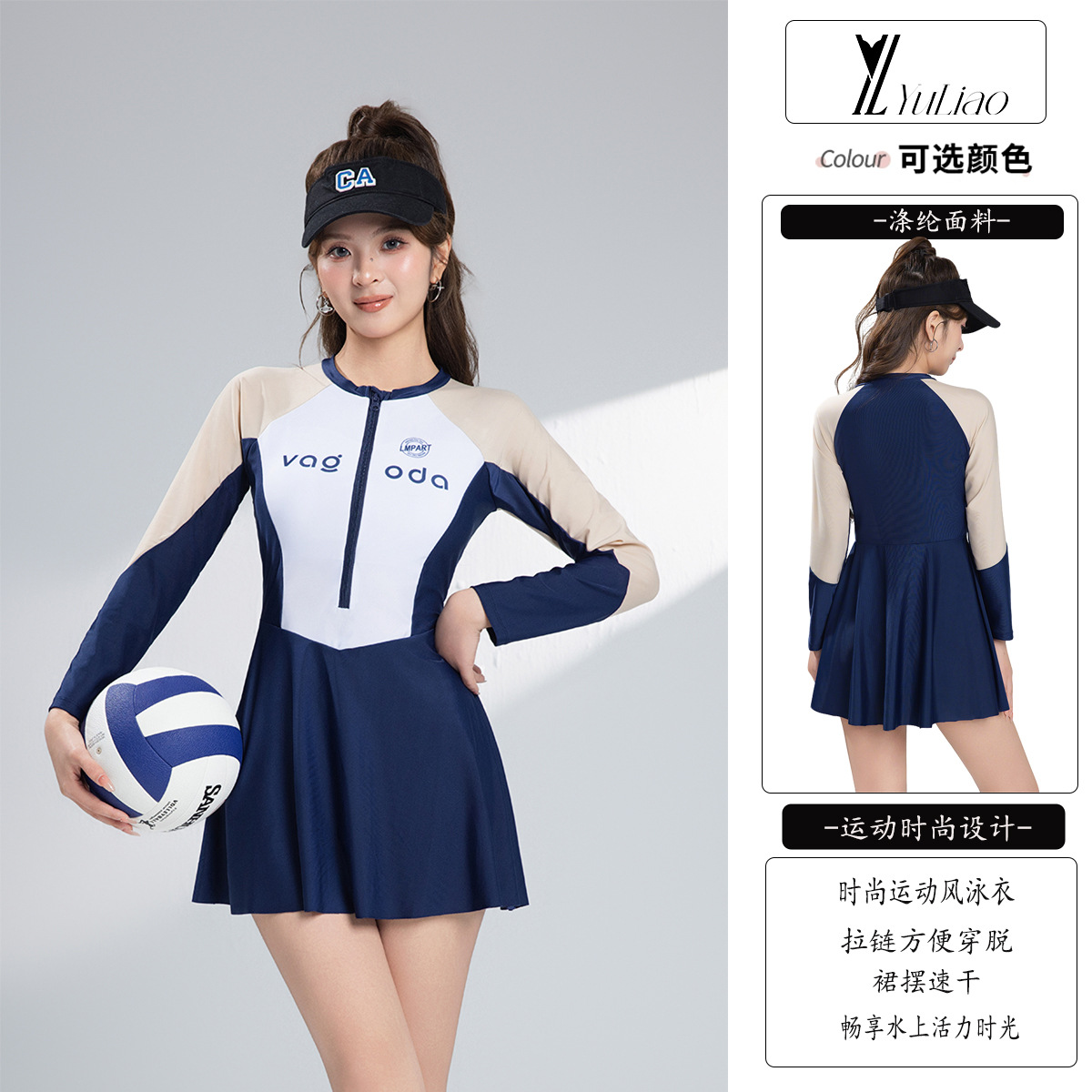 수영복 여성 성인 슬리브 복서 스커트 수영복 신식 여성 보수적 배꼽 커버 슬림핏 긴팔 스포츠 세트스토어 가기