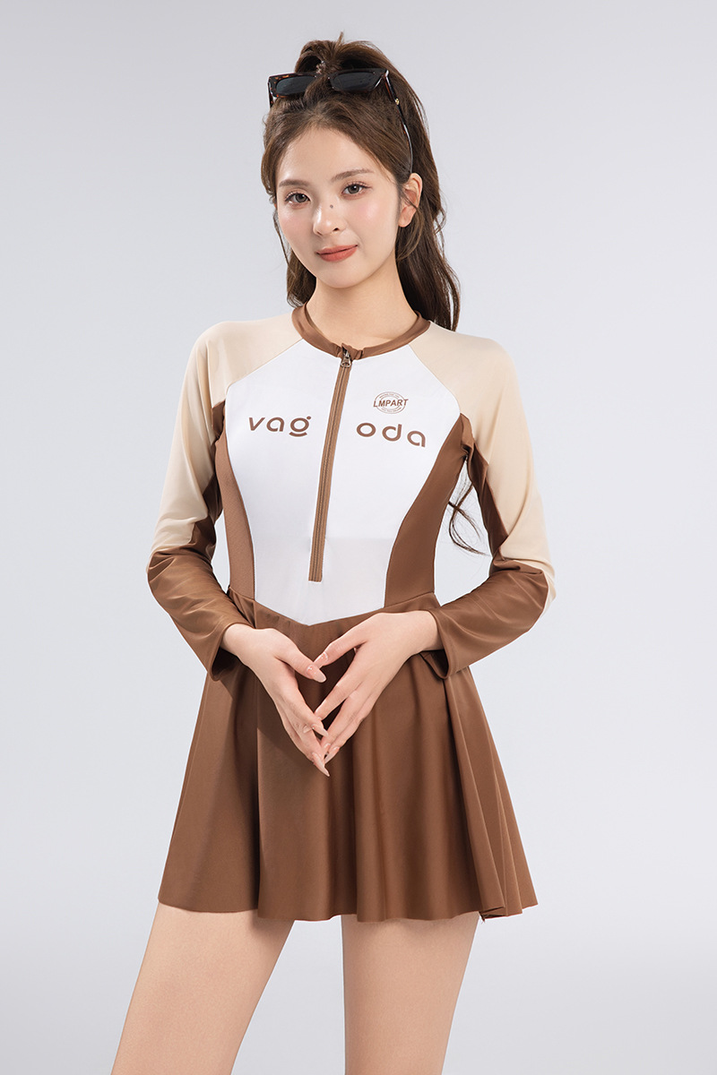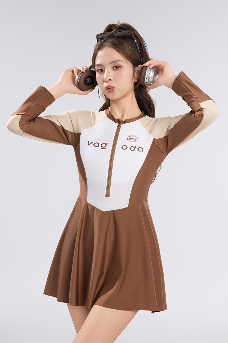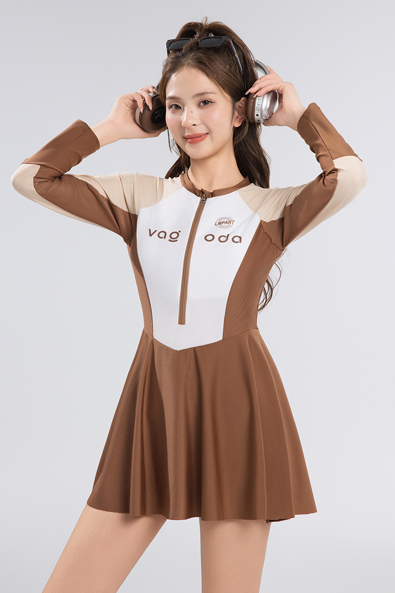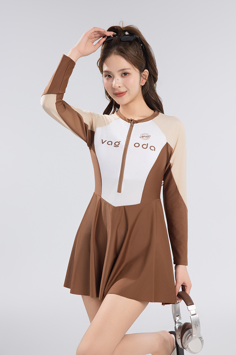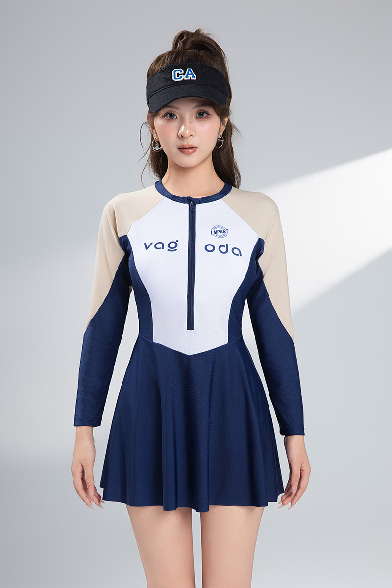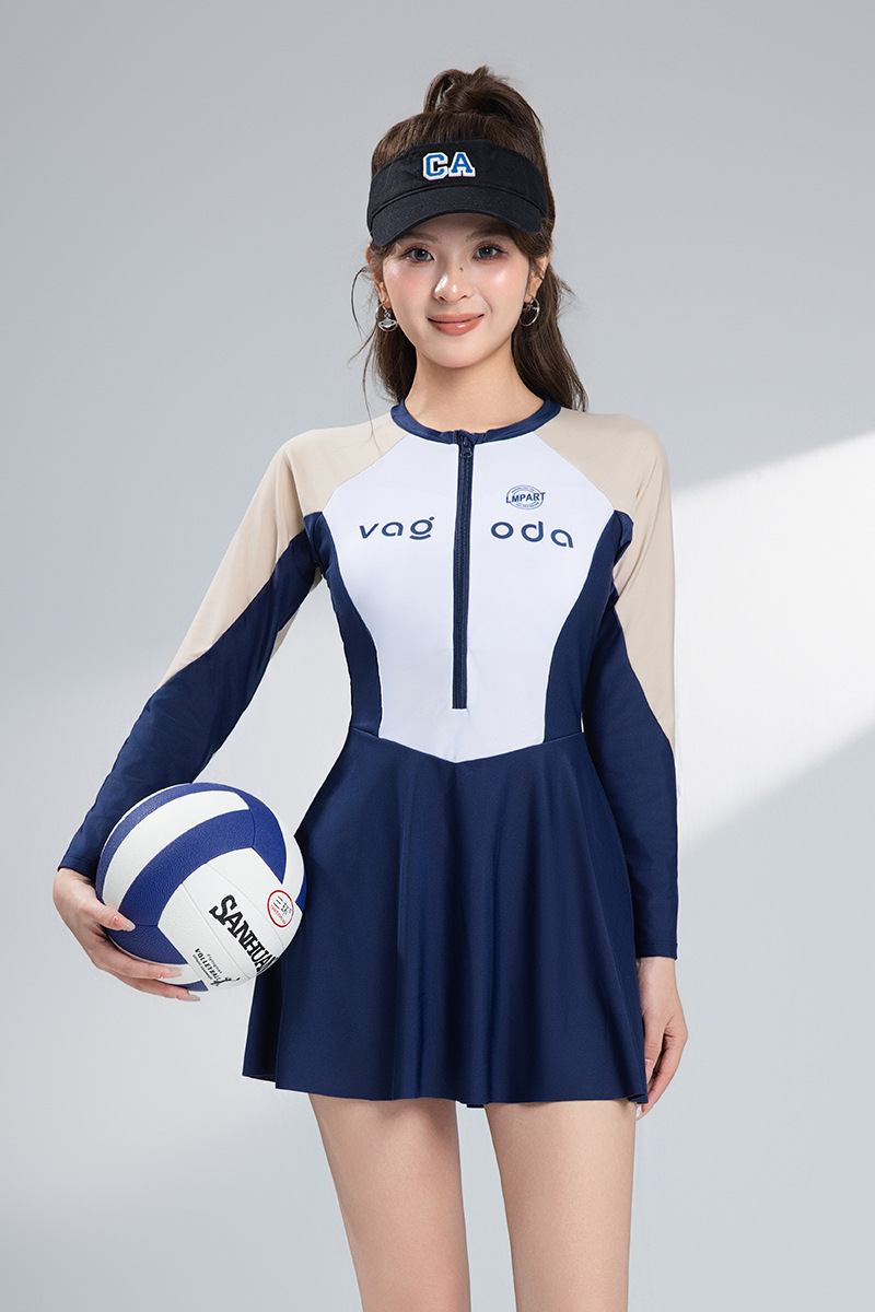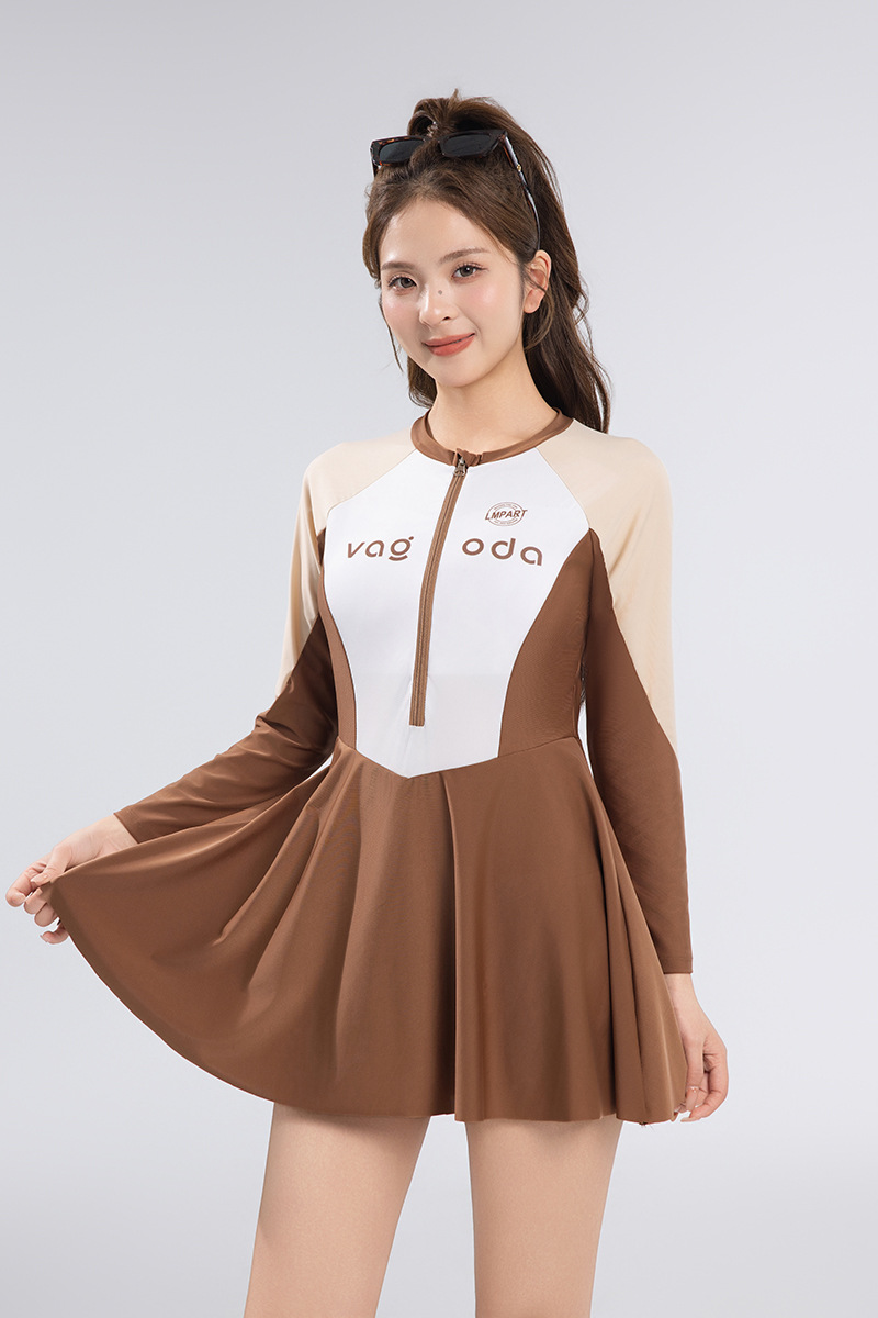 수영복 여성 성인 슬리브 복서 스커트 수영복 신식 여성 보수적 배꼽 커버 슬림핏 긴팔 스포츠 세트스토어 가기
