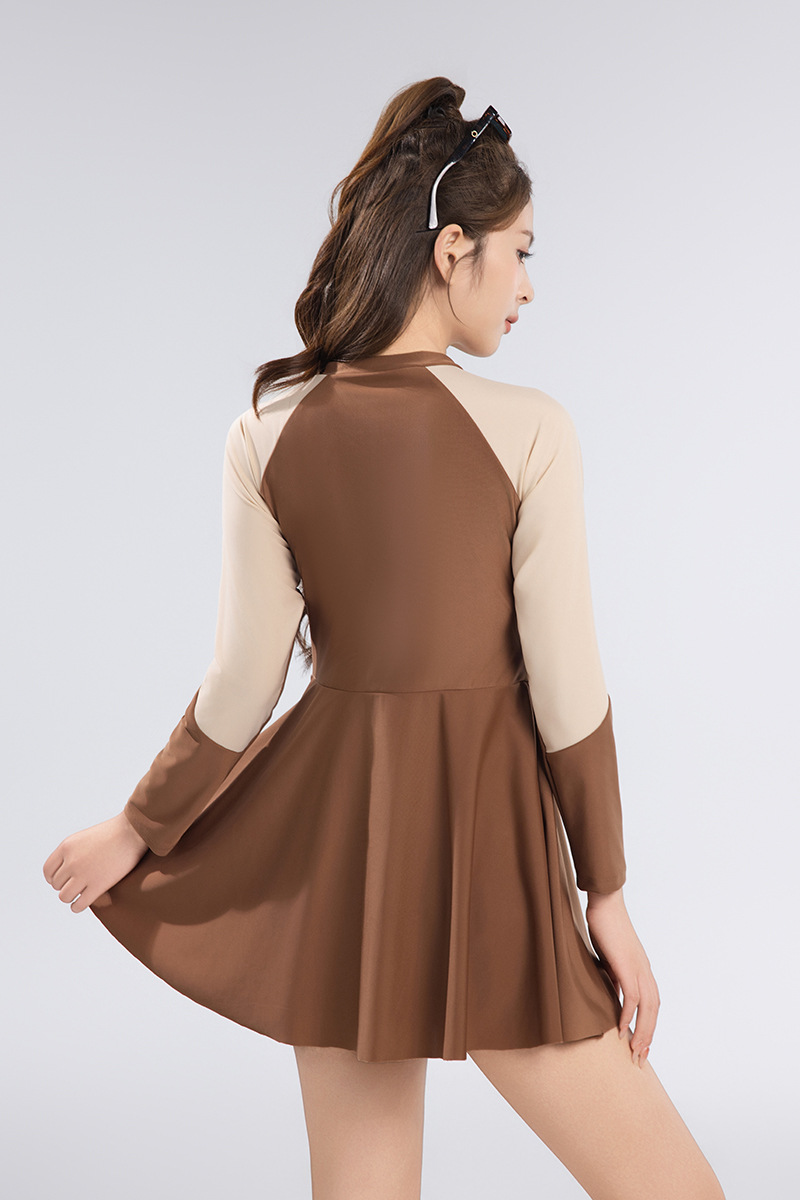 수영복 여성 성인 슬리브 복서 스커트 수영복 신식 여성 보수적 배꼽 커버 슬림핏 긴팔 스포츠 세트