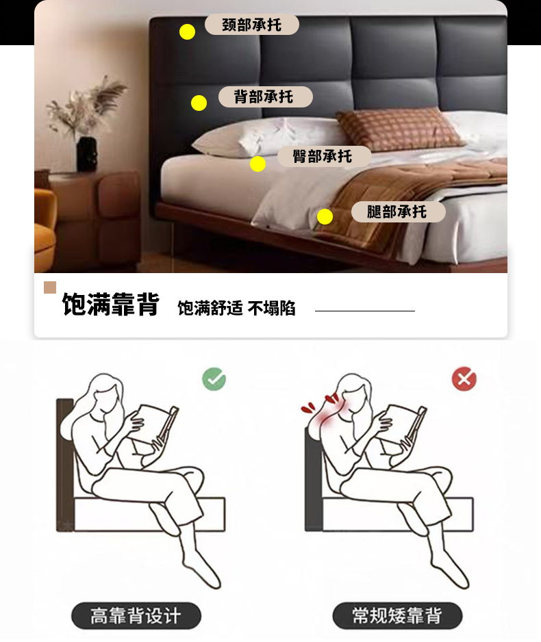 블랙 숙련 된 가죽 침대 블랙 레트로 골동품 작은 아파트 마스터 침실 소프트 백 가장자리 이탈리아 미니멀리스트 애쉬 웨딩 침대스토어 가기