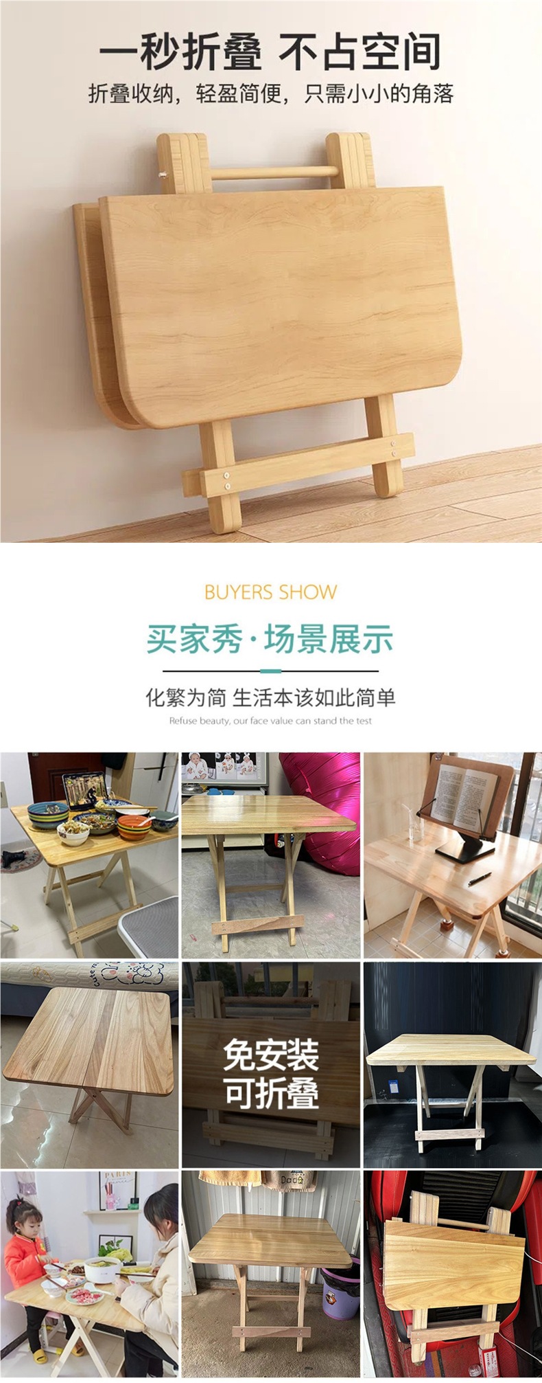 가정용 거실을위한 단단한 나무 접이식 테이블 작은 아파트 간단한 식탁 야외 휴대용 야시장 스톨 사각형 테이블