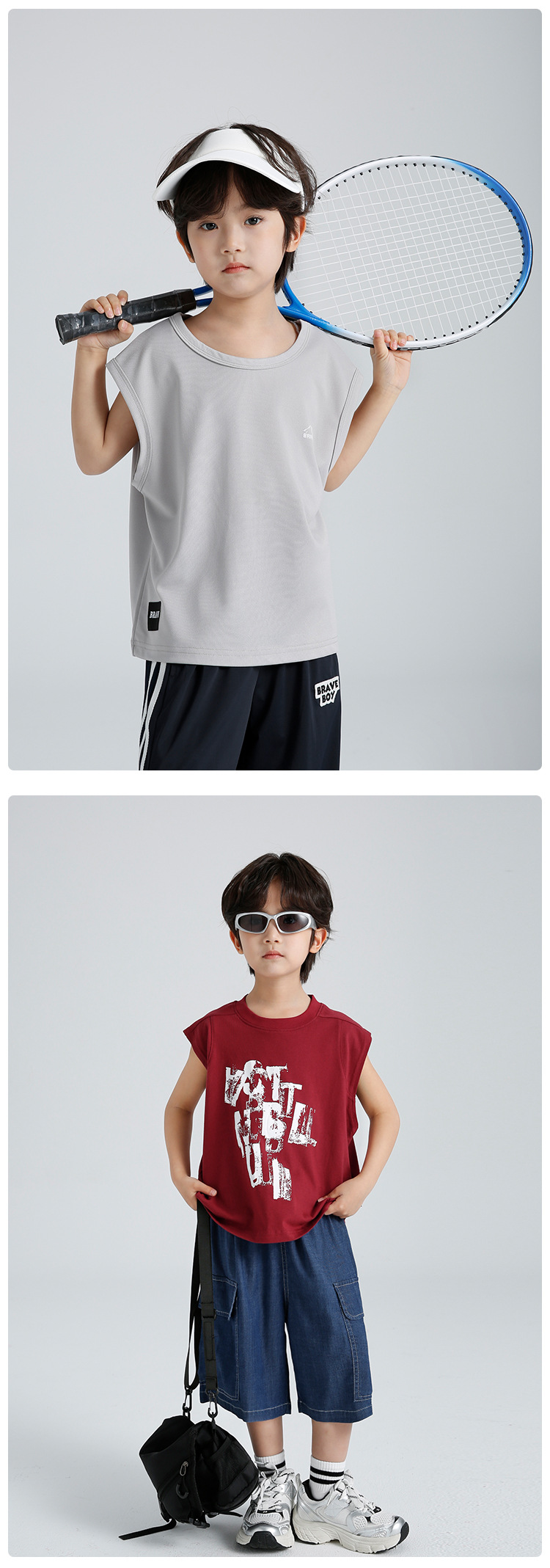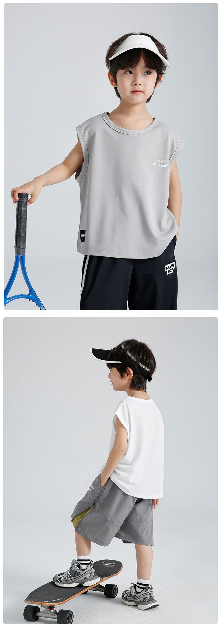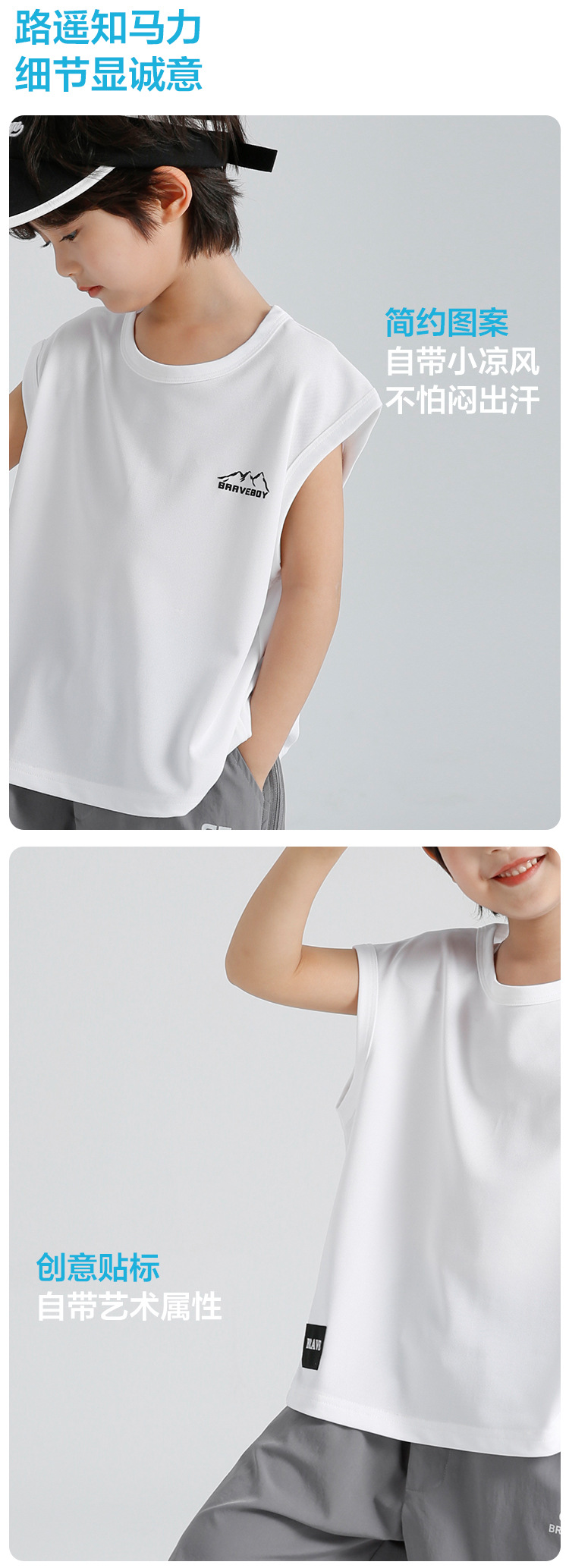 하이마의 2026년 여름 신상 남아용 산악 스타일 속건 민소매 조끼 여름 티셔츠 트렌디한 중대형 아동복