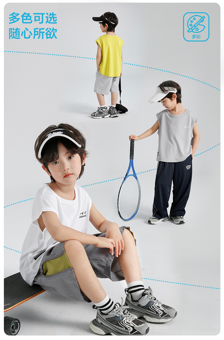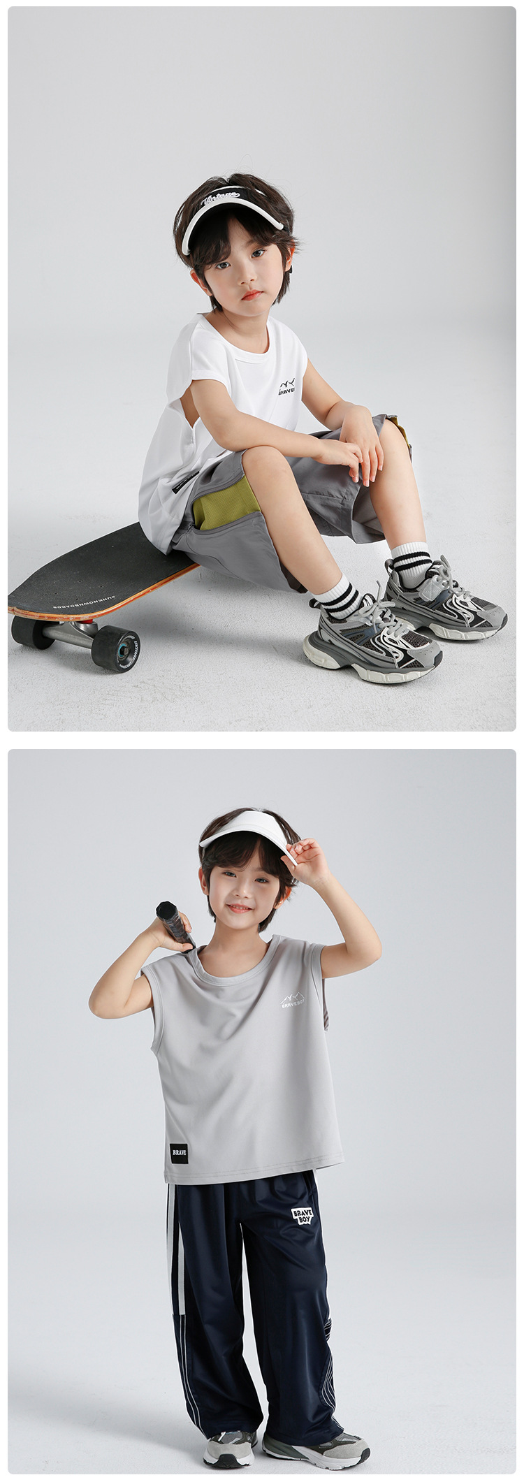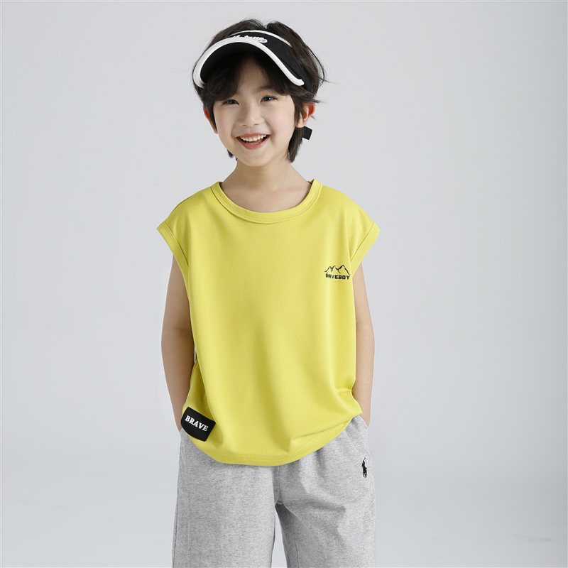 하이마의 2026년 여름 신상 남아용 산악 스타일 속건 민소매 조끼 여름 티셔츠 트렌디한 중대형 아동복